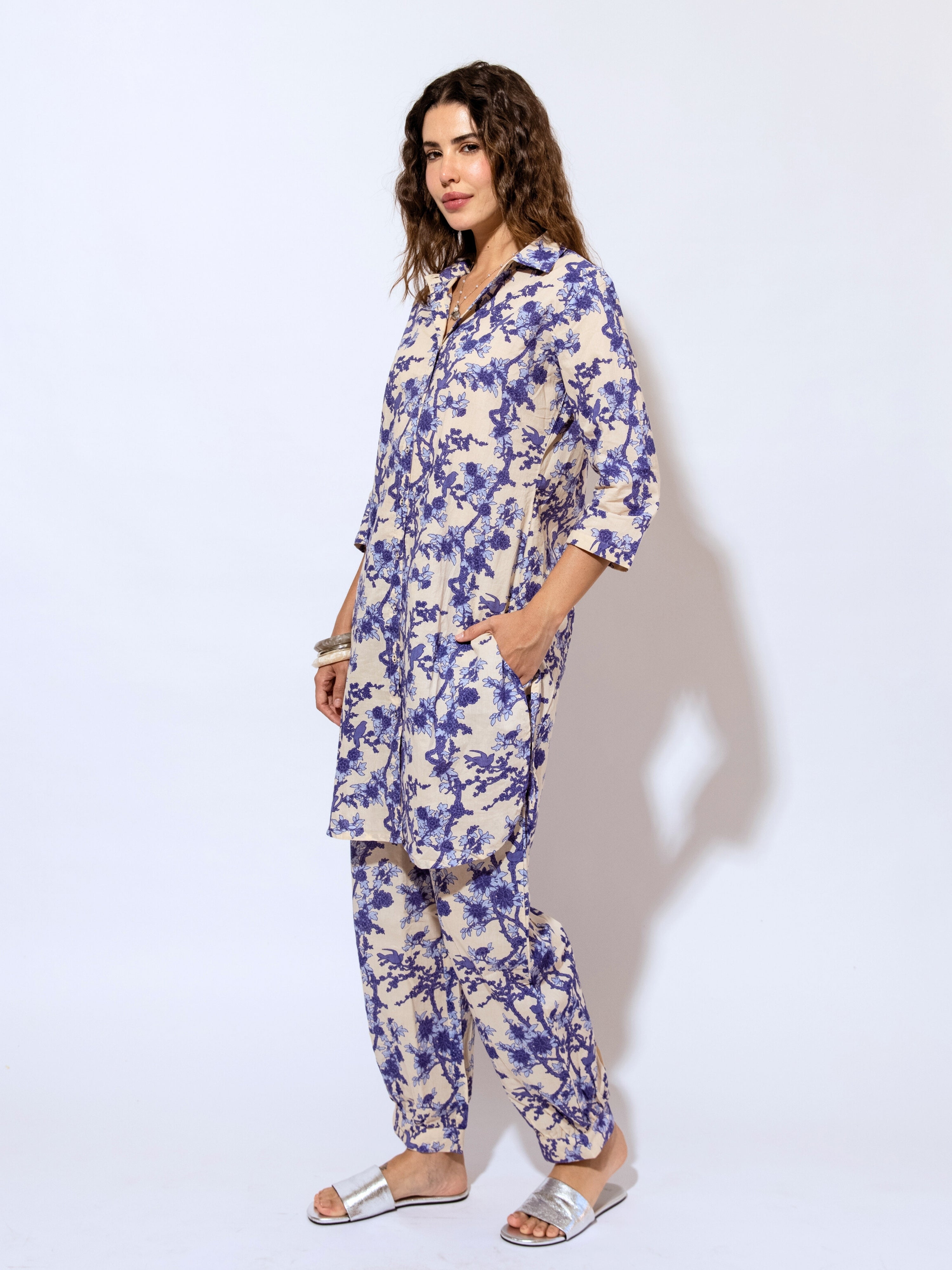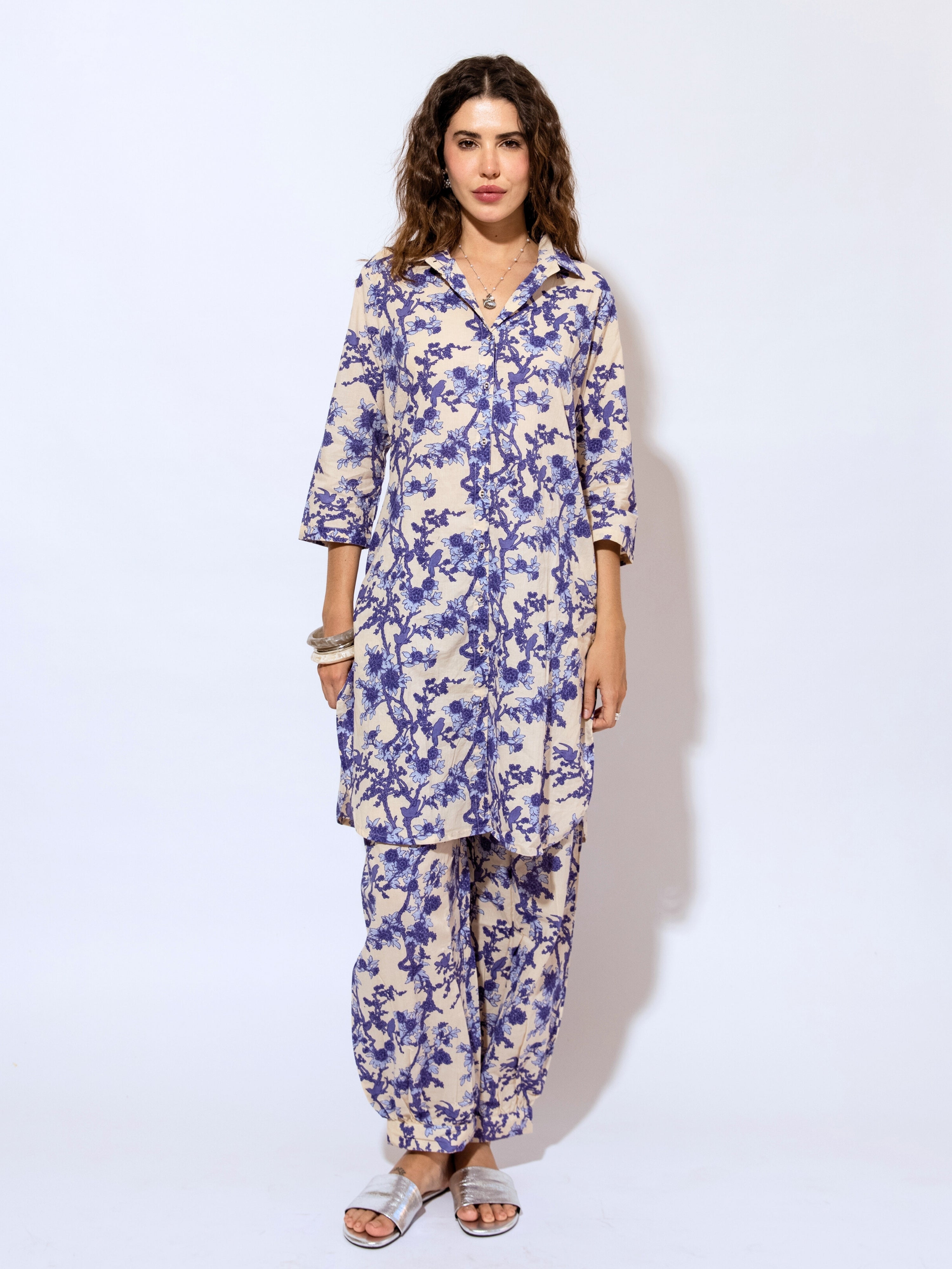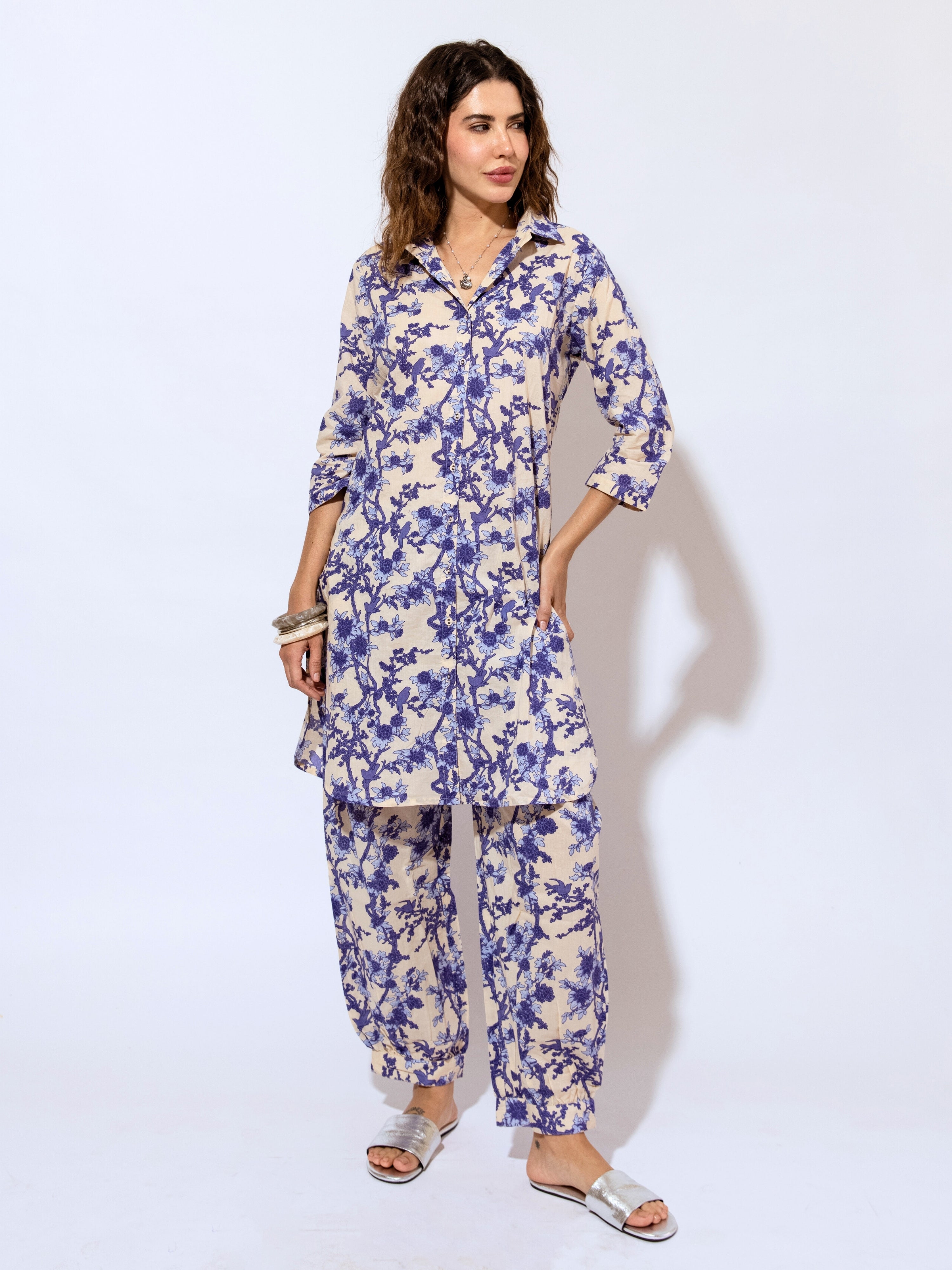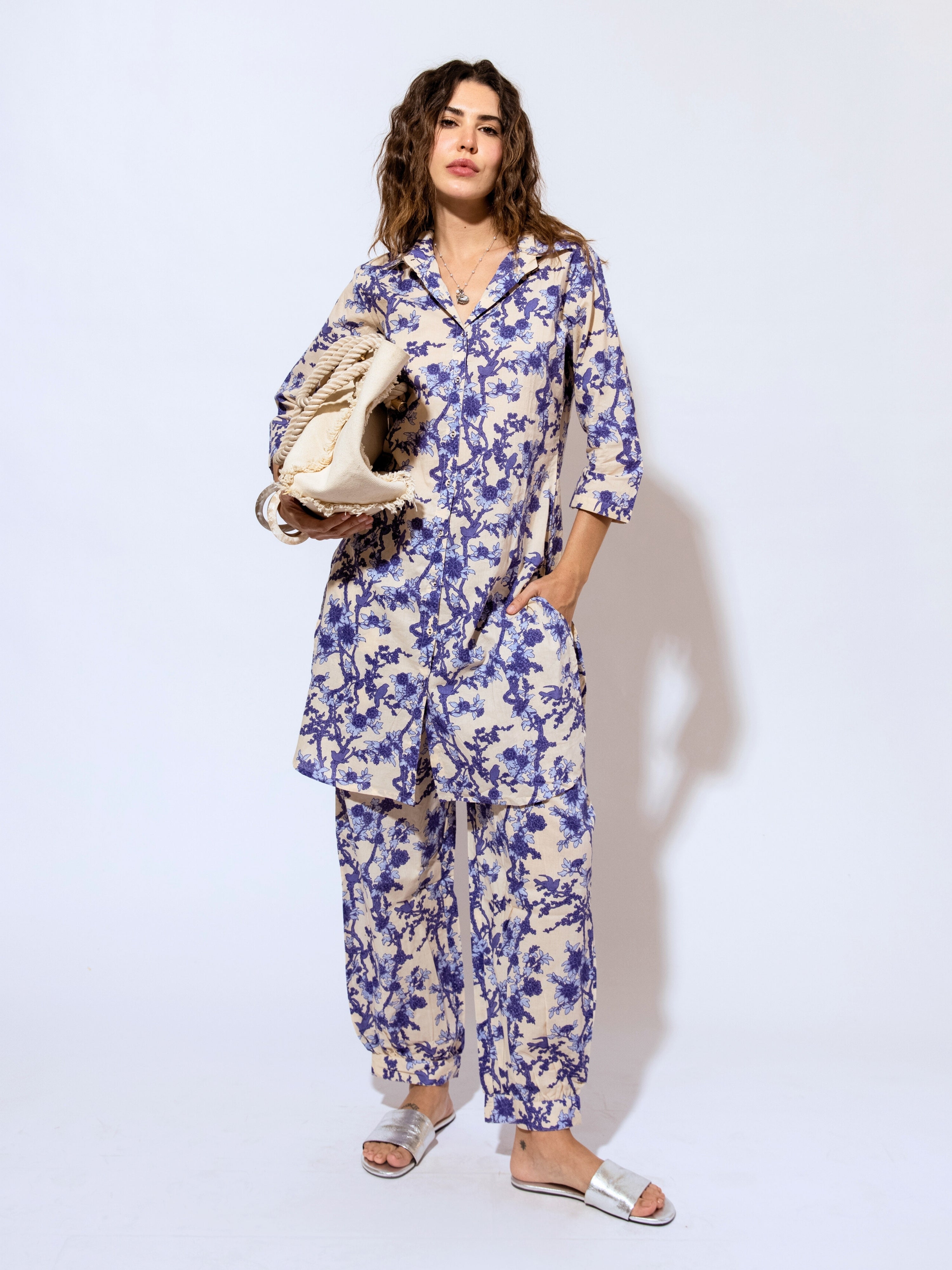 Tropical Sapphire Dream Long Shirt & Patiala Co-Ord Set