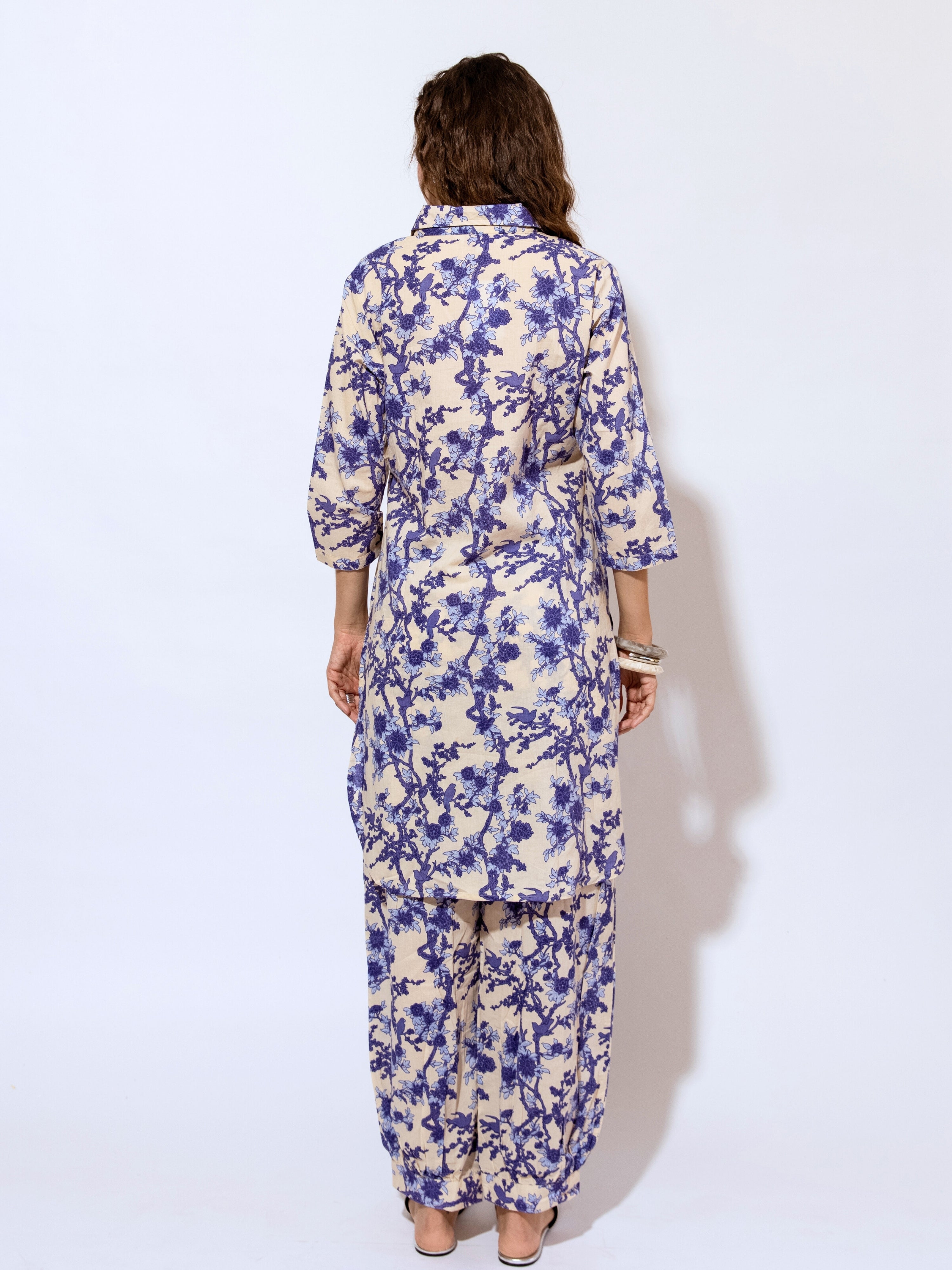 An ideal choice for your loungewear wardrobe, the Cotton Set comes in a soothing color palette. The hand block-printed pattern of the breezy Cotton top complements the matching Pants perfectly.