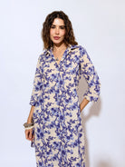 Blue Jaal Pure Cotton Tieup Square Neck Night Maxi
