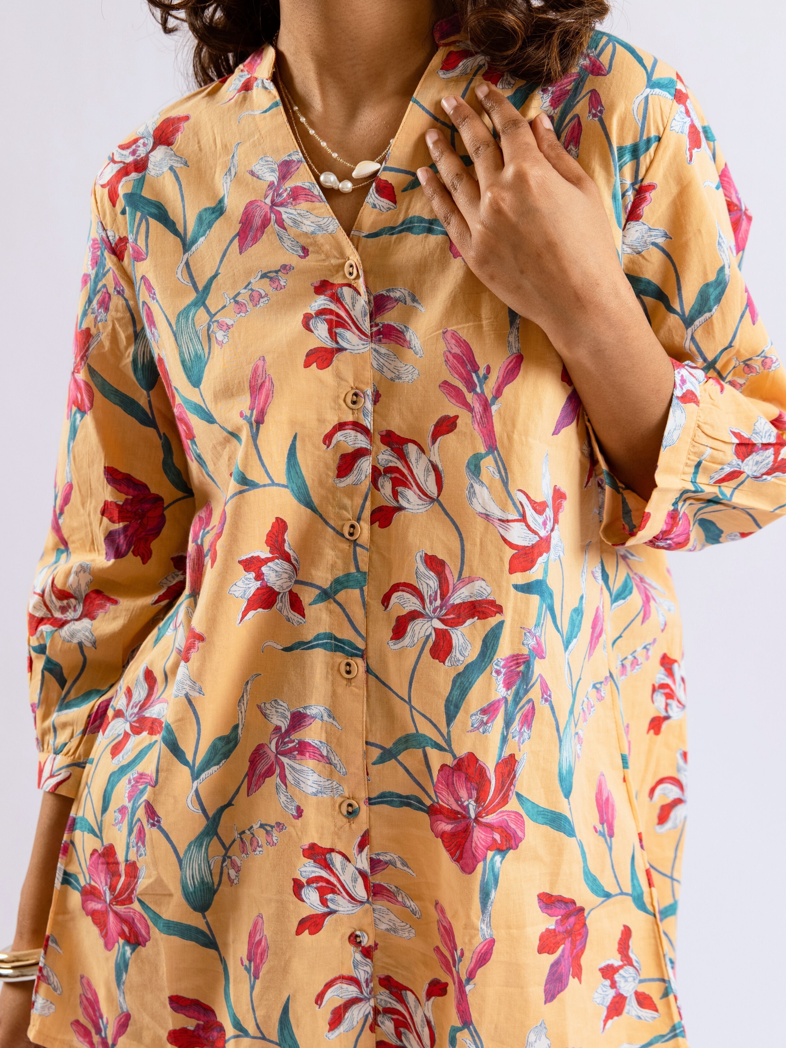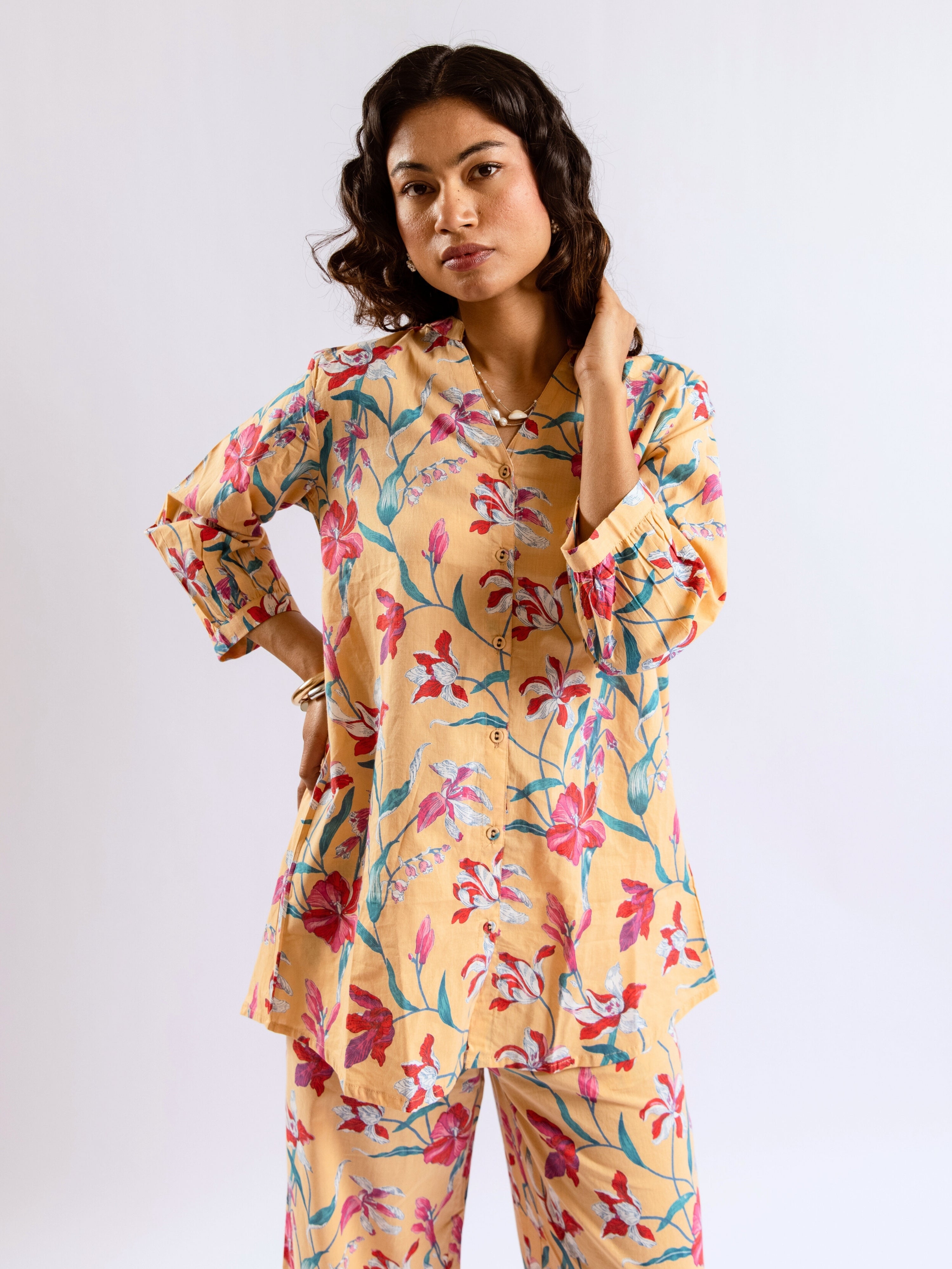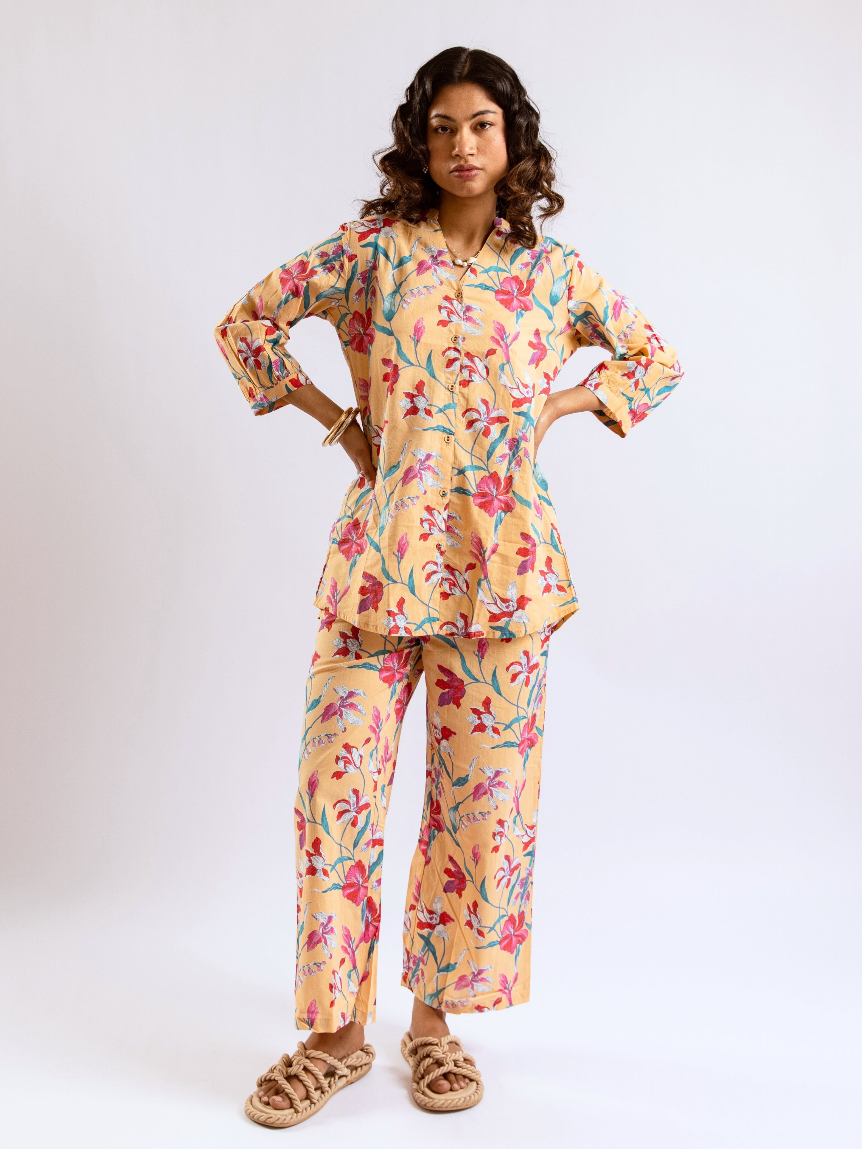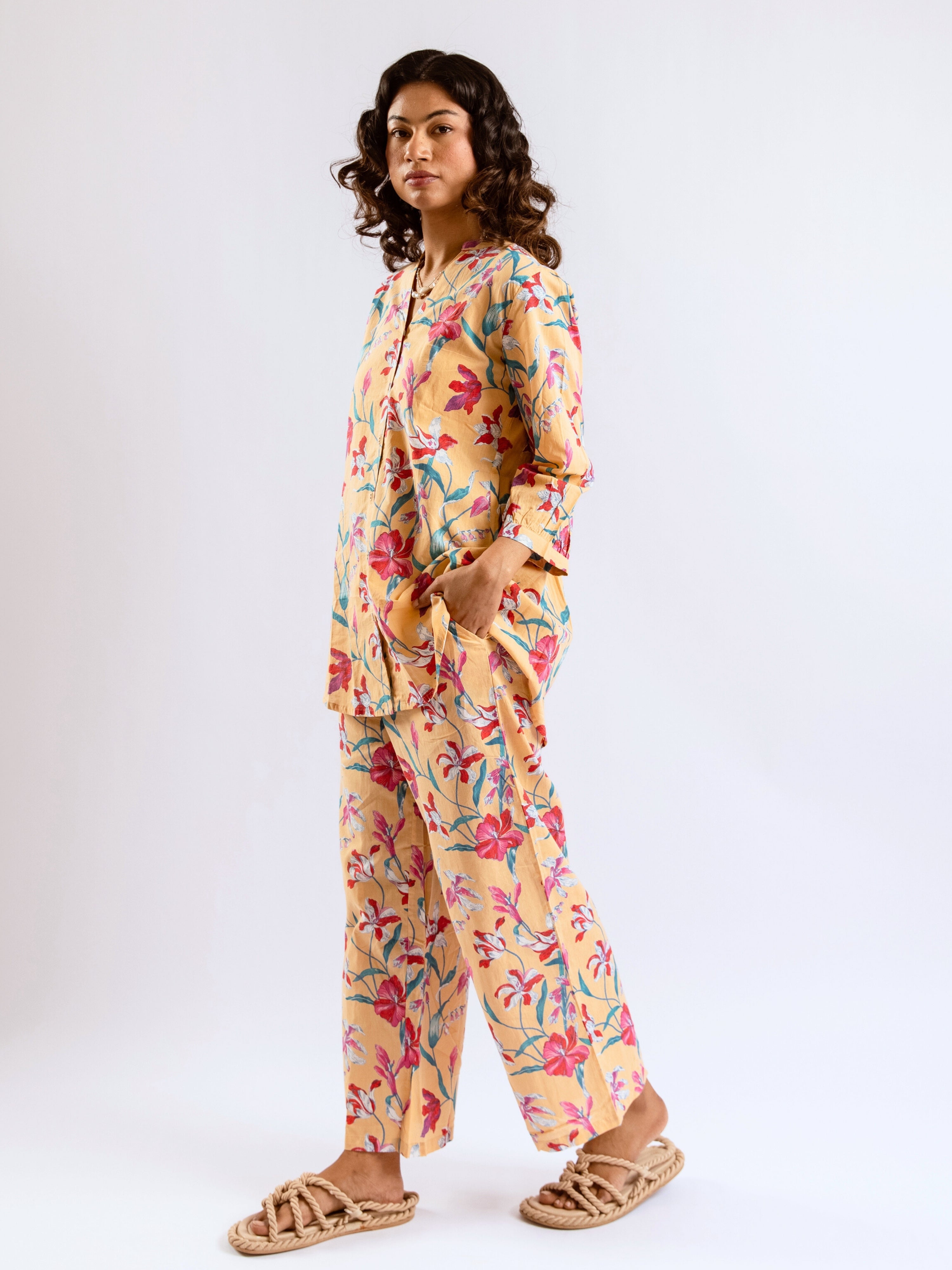 An ideal choice for your loungewear wardrobe, the Cotton Set comes in a soothing color palette. The hand block-printed pattern of the breezy Cotton top complements the matching Pants perfectly.