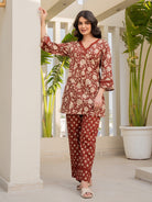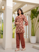 An ideal choice for your loungewear wardrobe, the Cotton Set comes in a soothing color palette. The hand block-printed pattern of the breezy Cotton top complements the matching Pants perfectly.