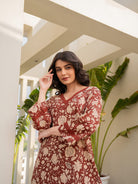 V - Neck Lace Cinnamon Brown Cotton Lounge Wear