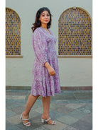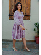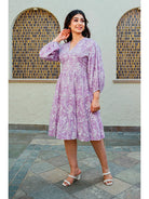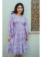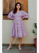Bishop Sleeve Purple Bale Pure Cotton Dress