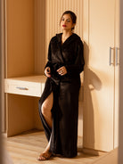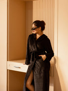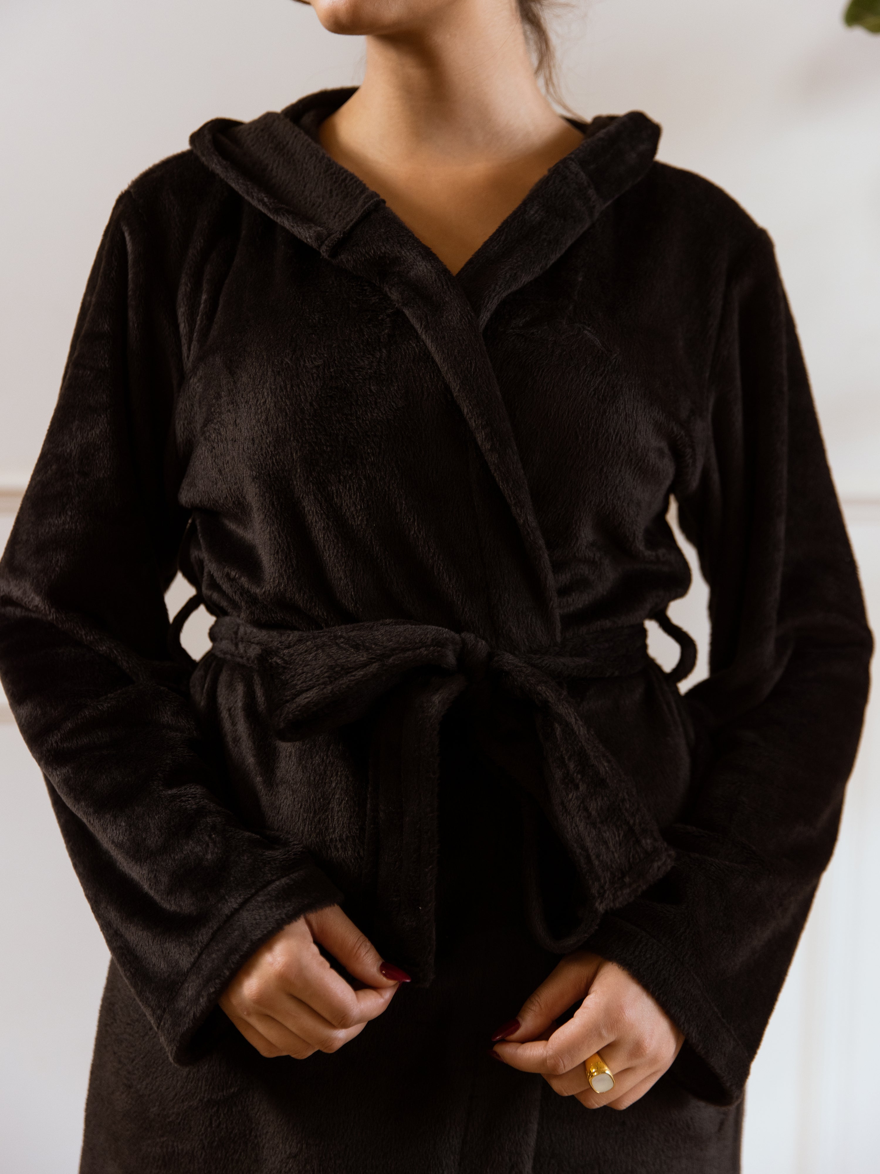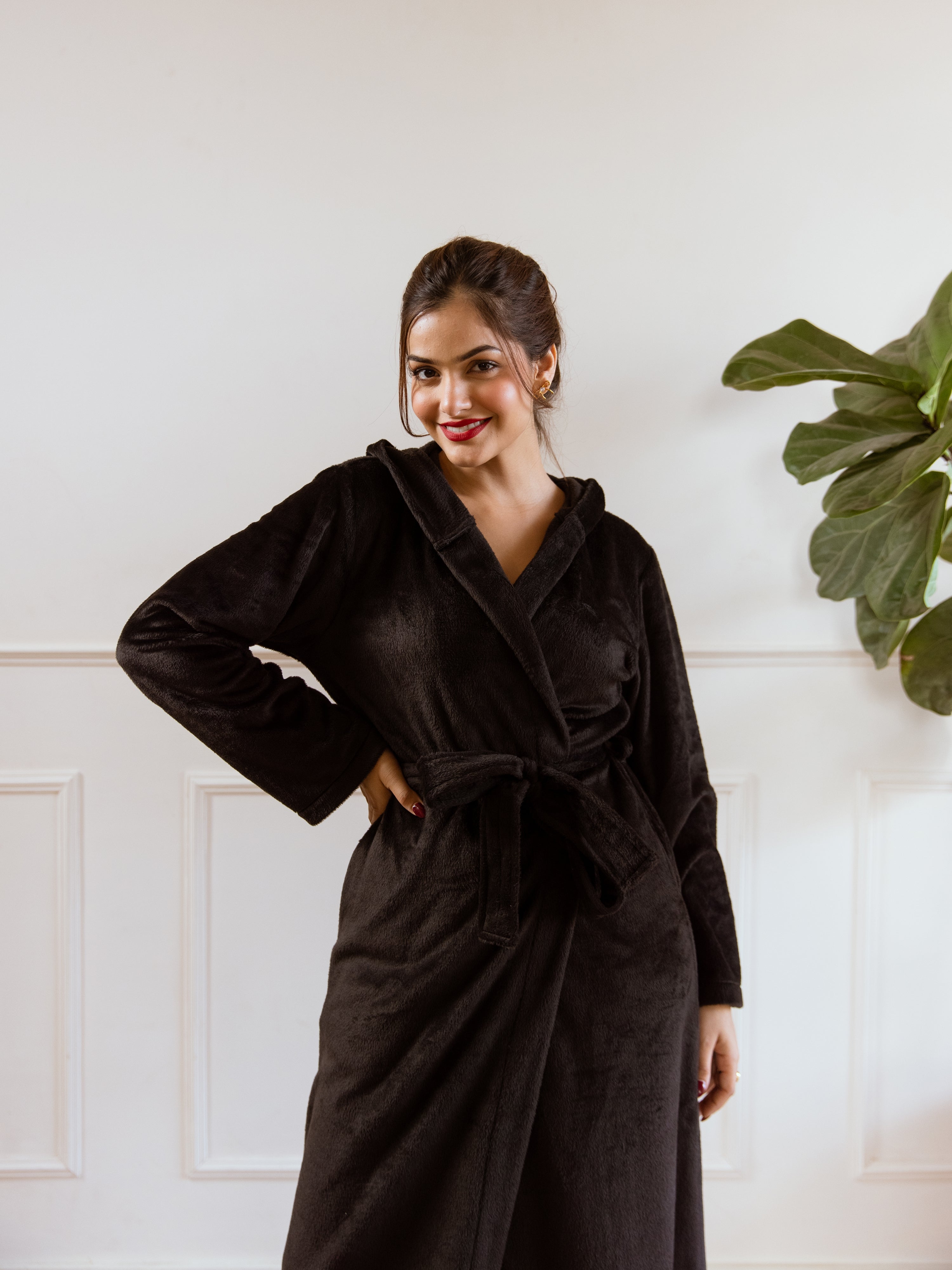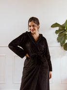 Black Super Soft Woollen Hoodie Robe