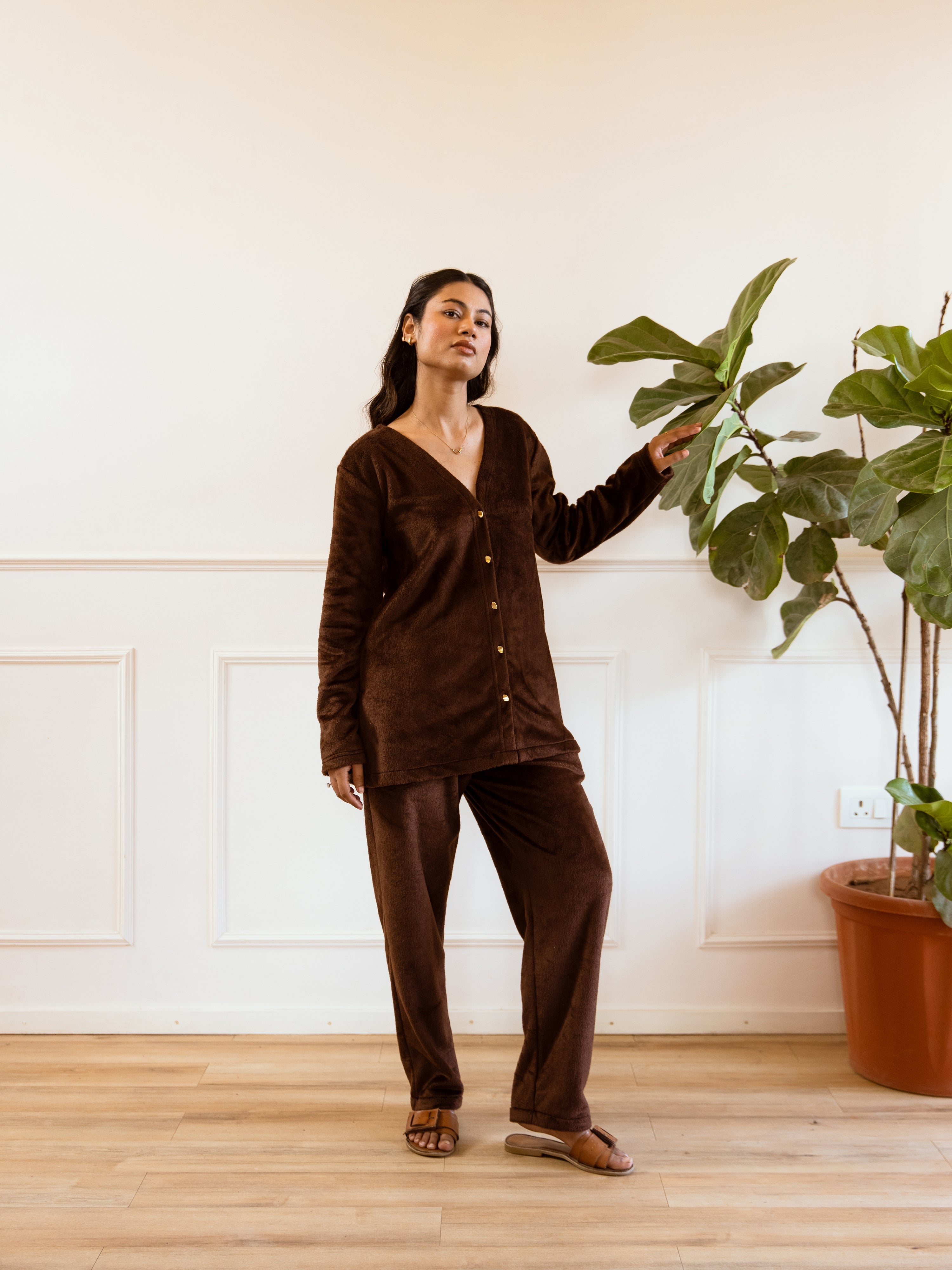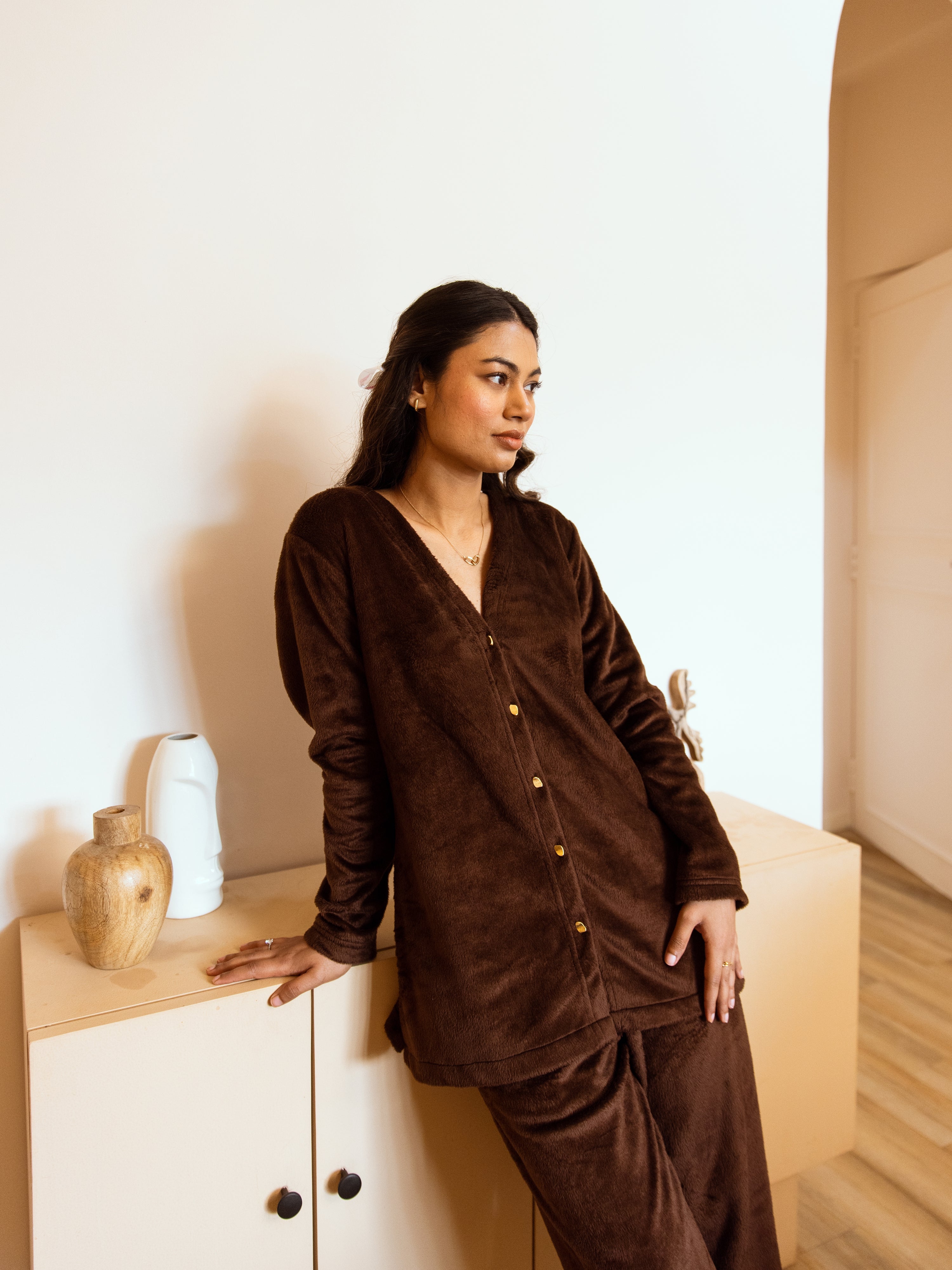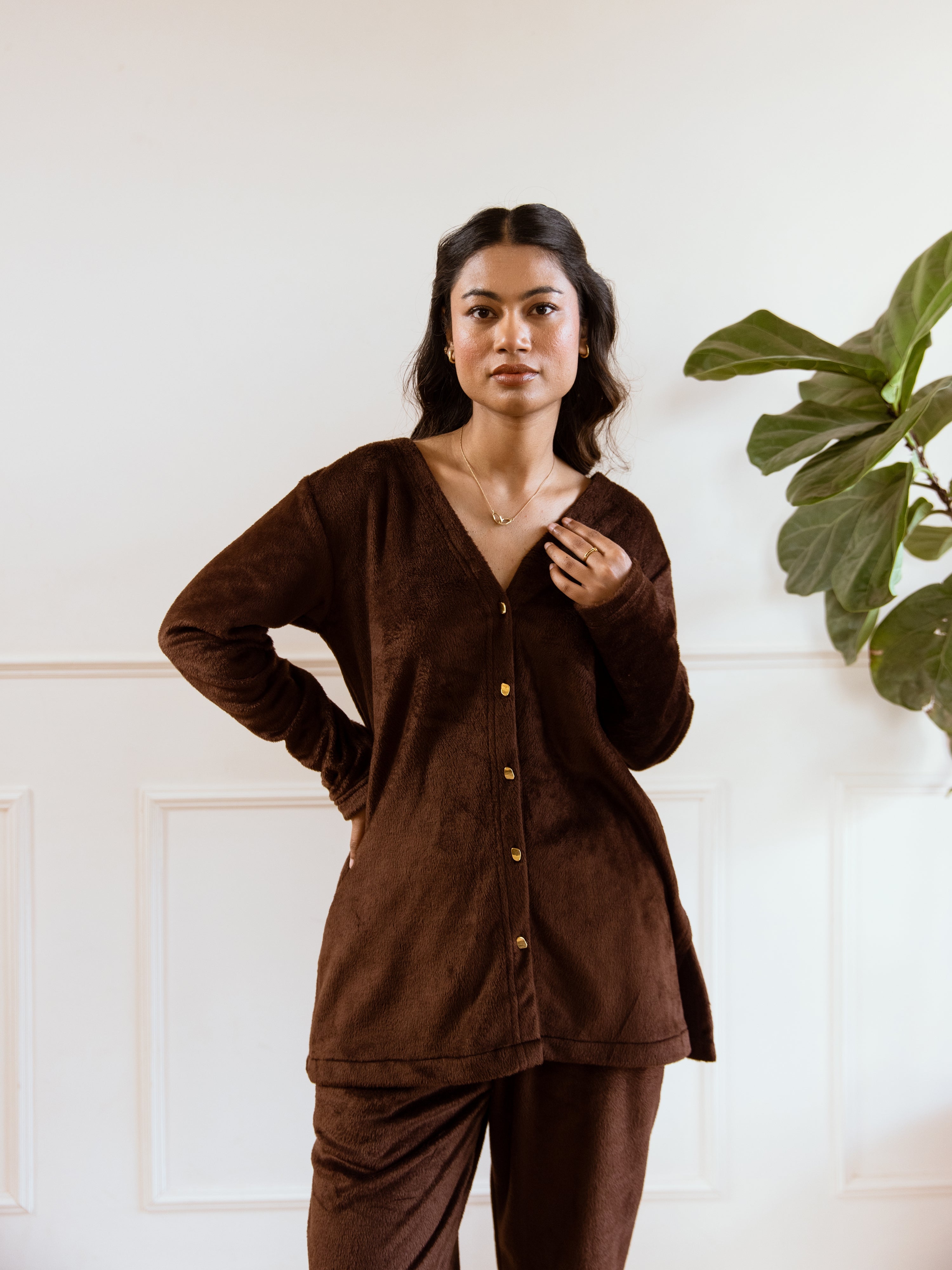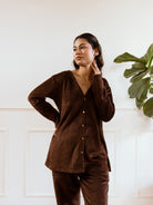 Wrap yourself in ultimate comfort and style with our Brown Super Soft Woollen Cardigan Set. Made from luxurious, high-quality wool, this set includes a cardigan and matching pants for a complete cozy look. Perfect for adding a touch of warmth and luxury to your wardrobe.