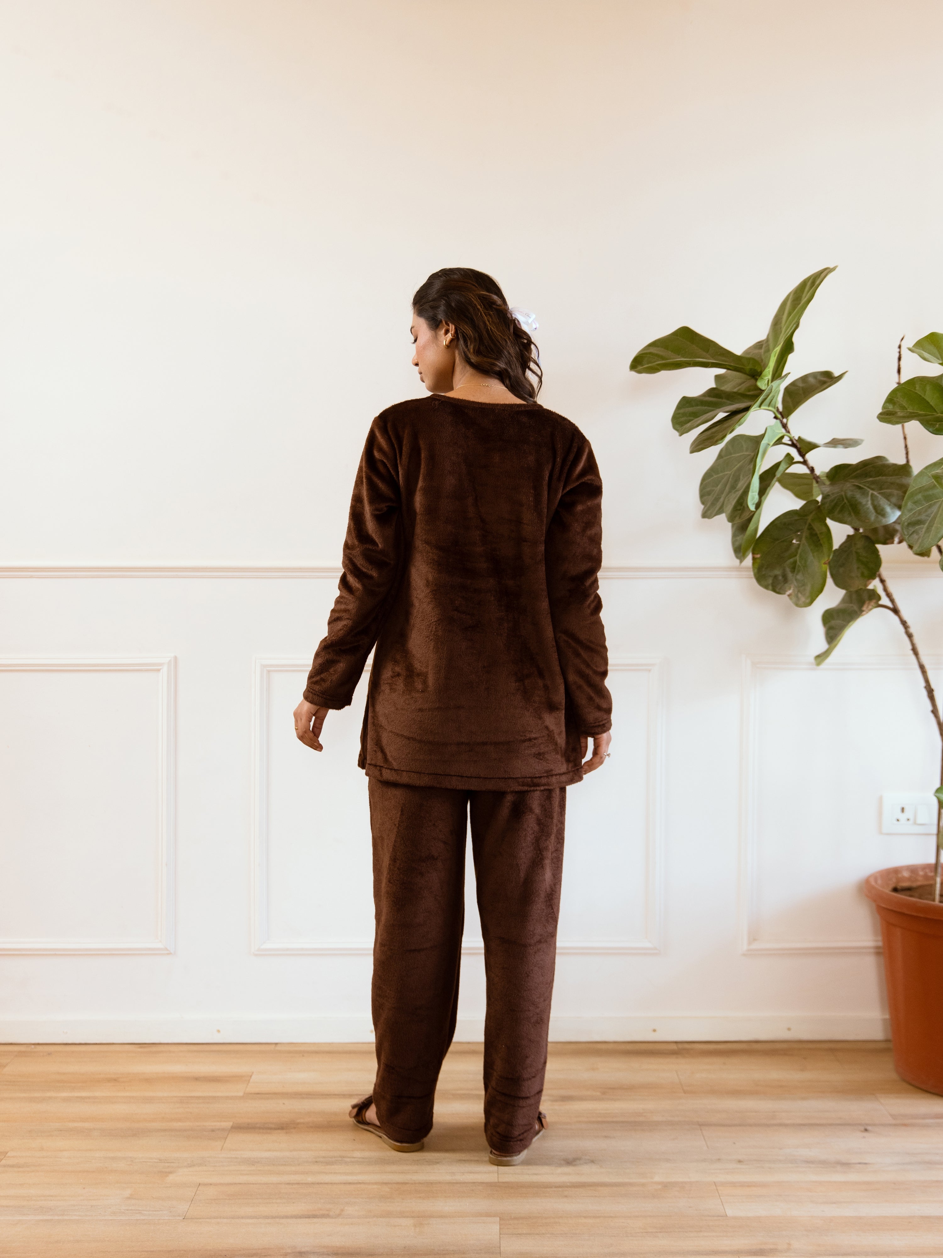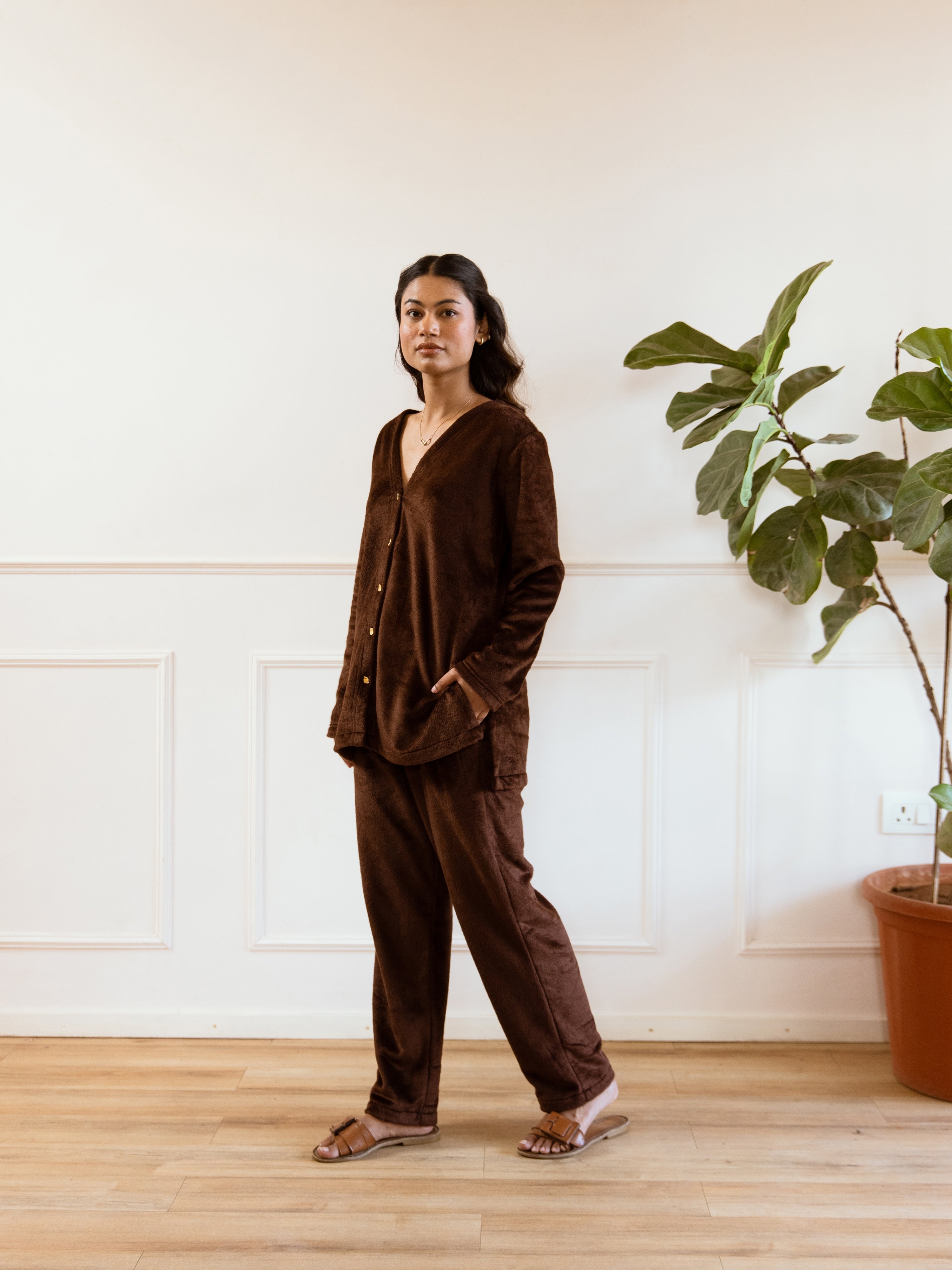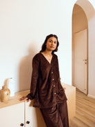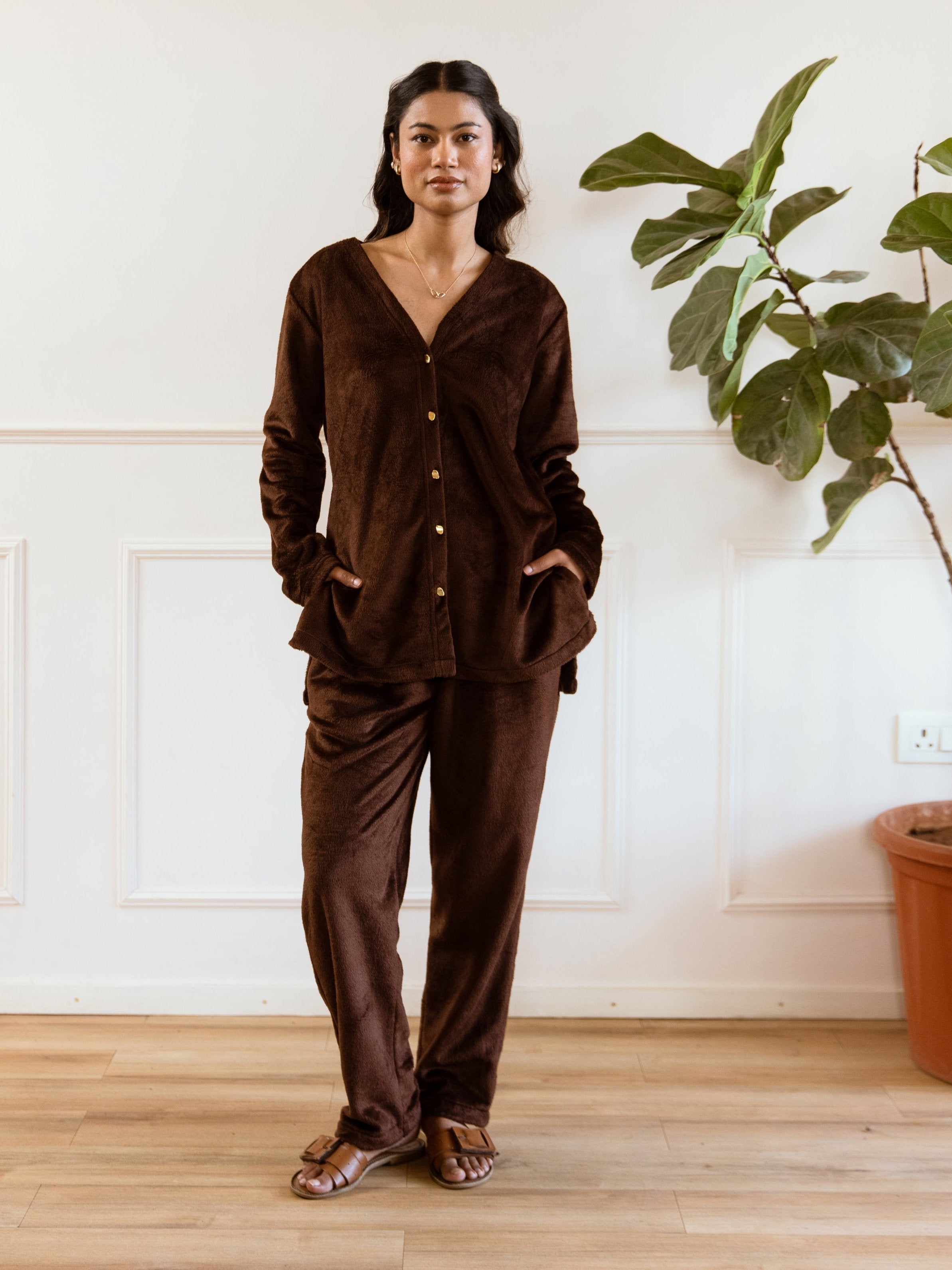 Wrap yourself in ultimate comfort and style with our Brown Super Soft Woollen Cardigan Set. Made from luxurious, high-quality wool, this set includes a cardigan and matching pants for a complete cozy look. Perfect for adding a touch of warmth and luxury to your wardrobe.
