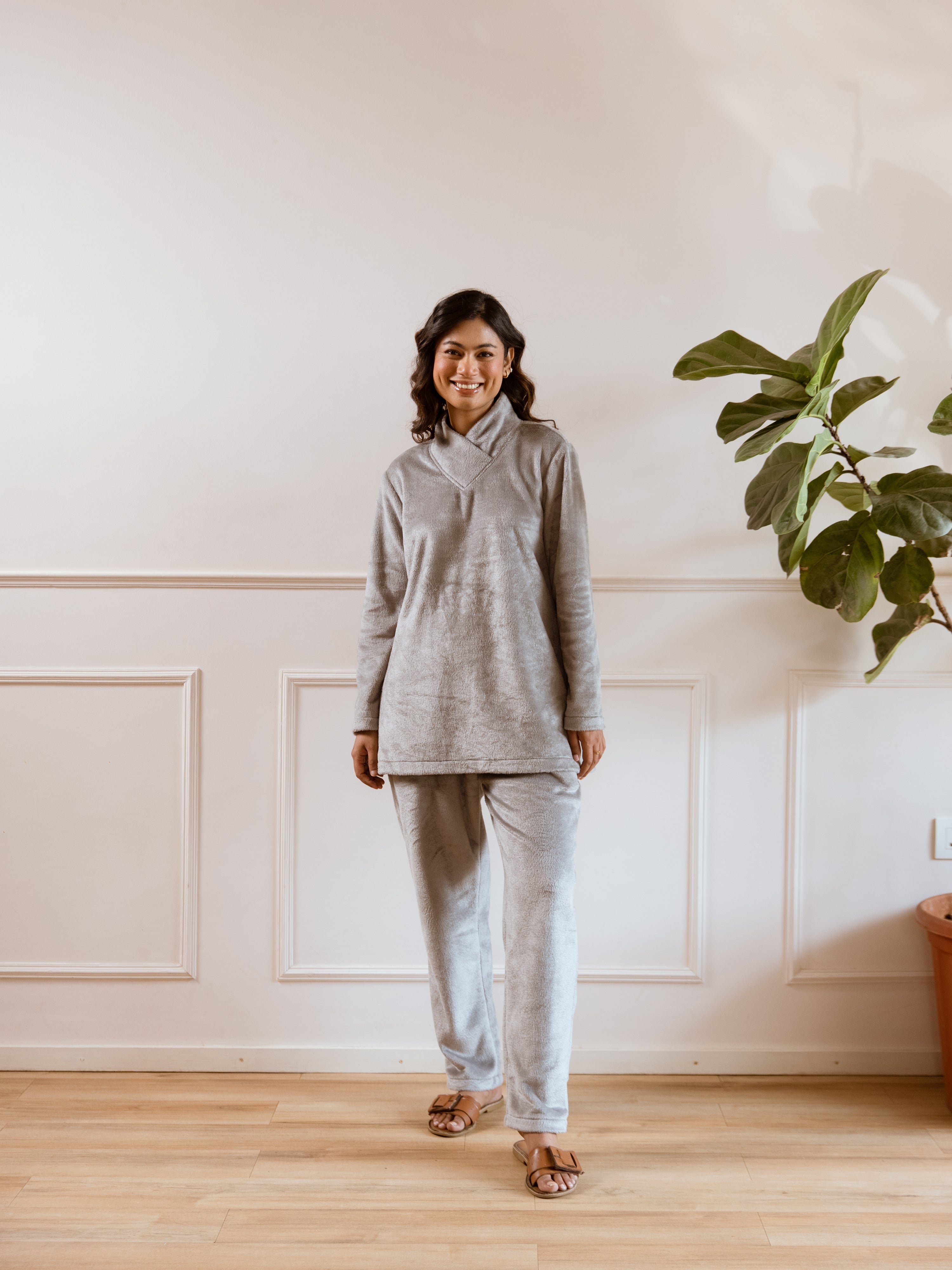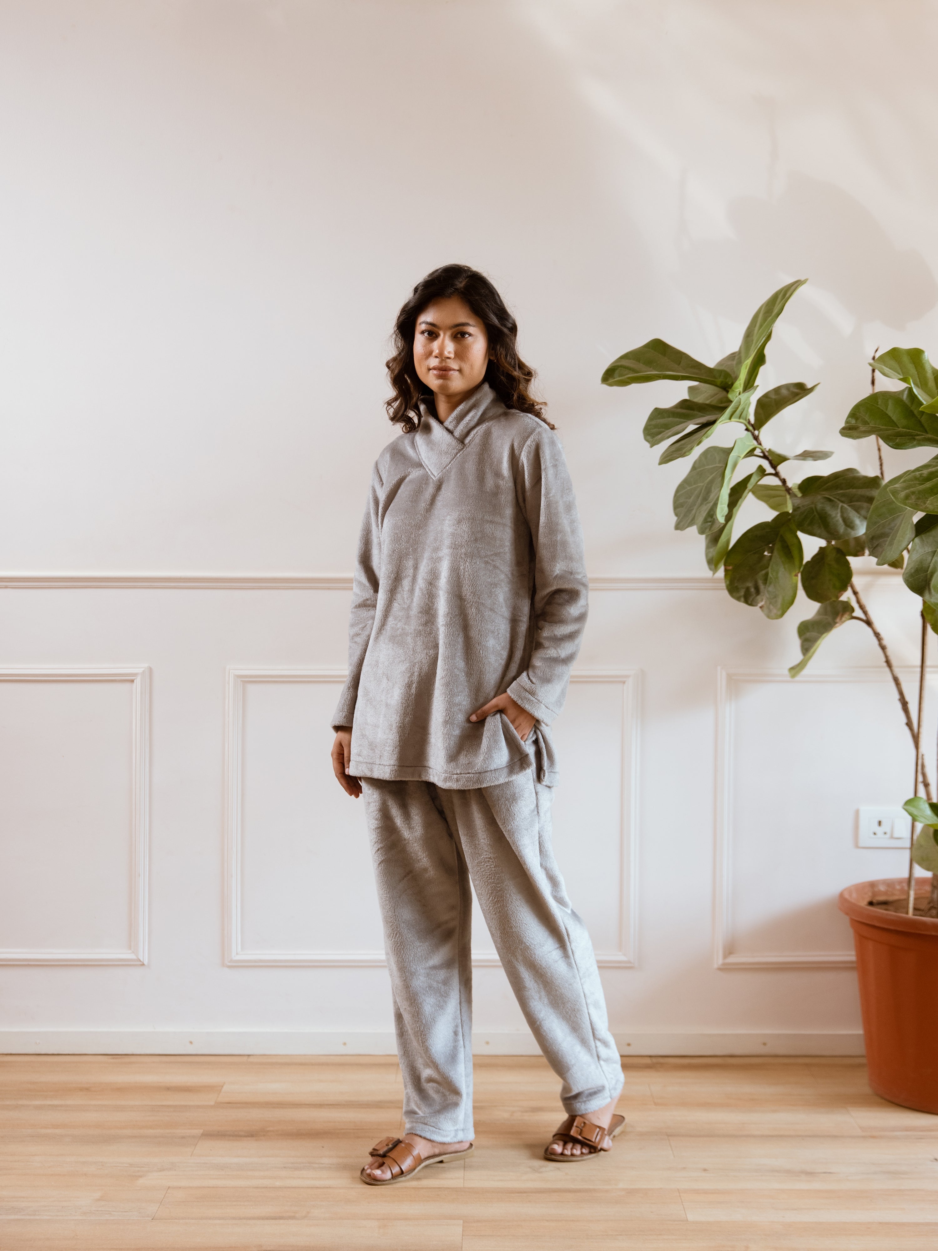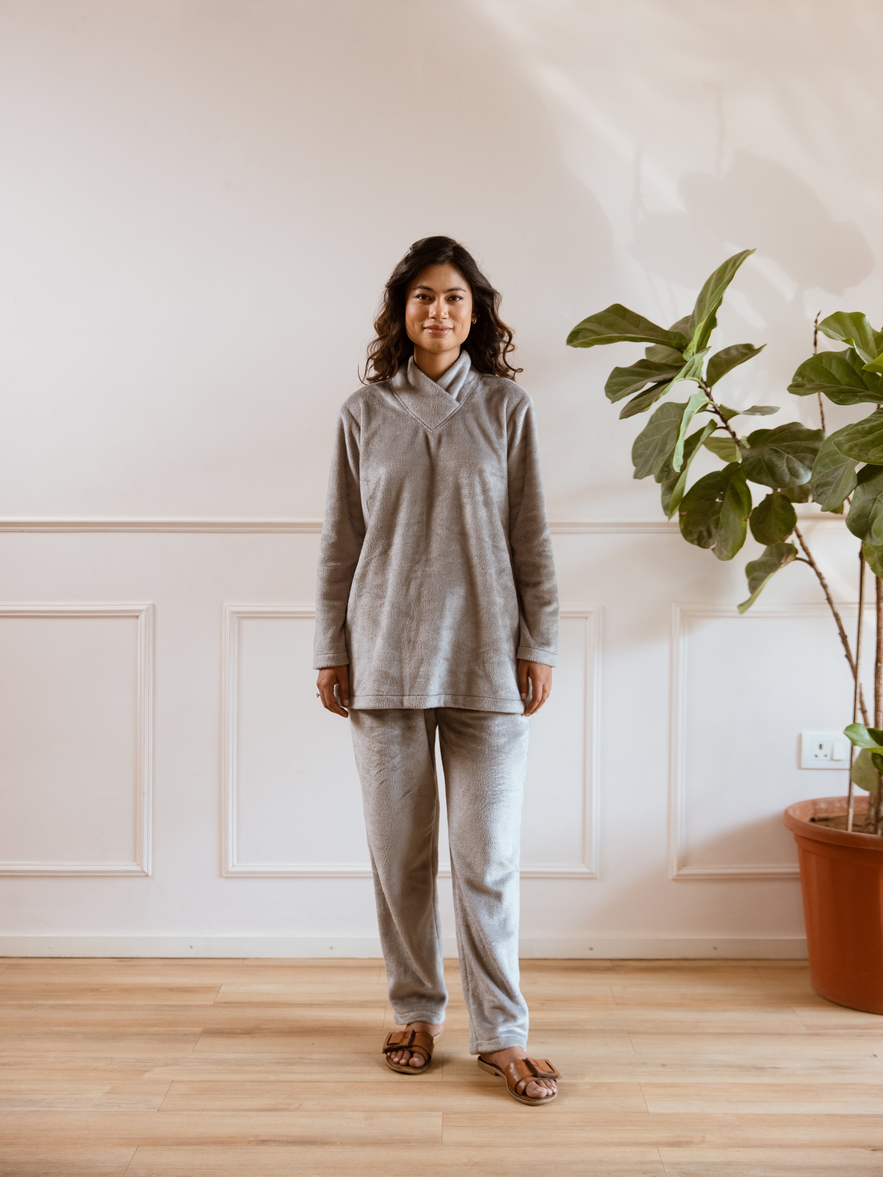 Cross Neck Super Soft Grey Woollen Set