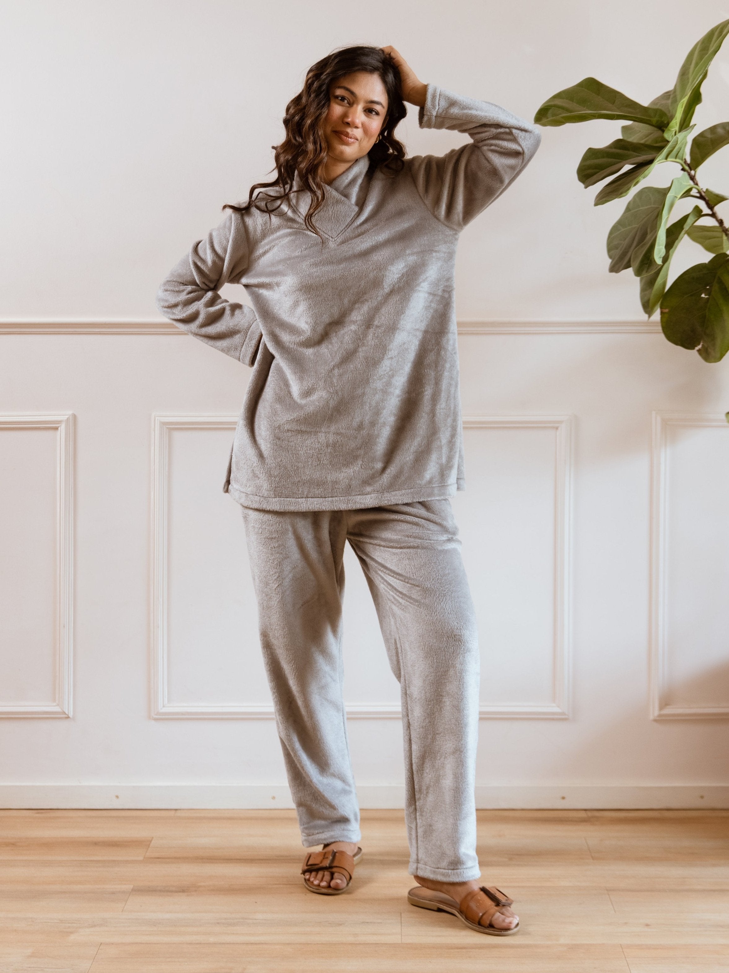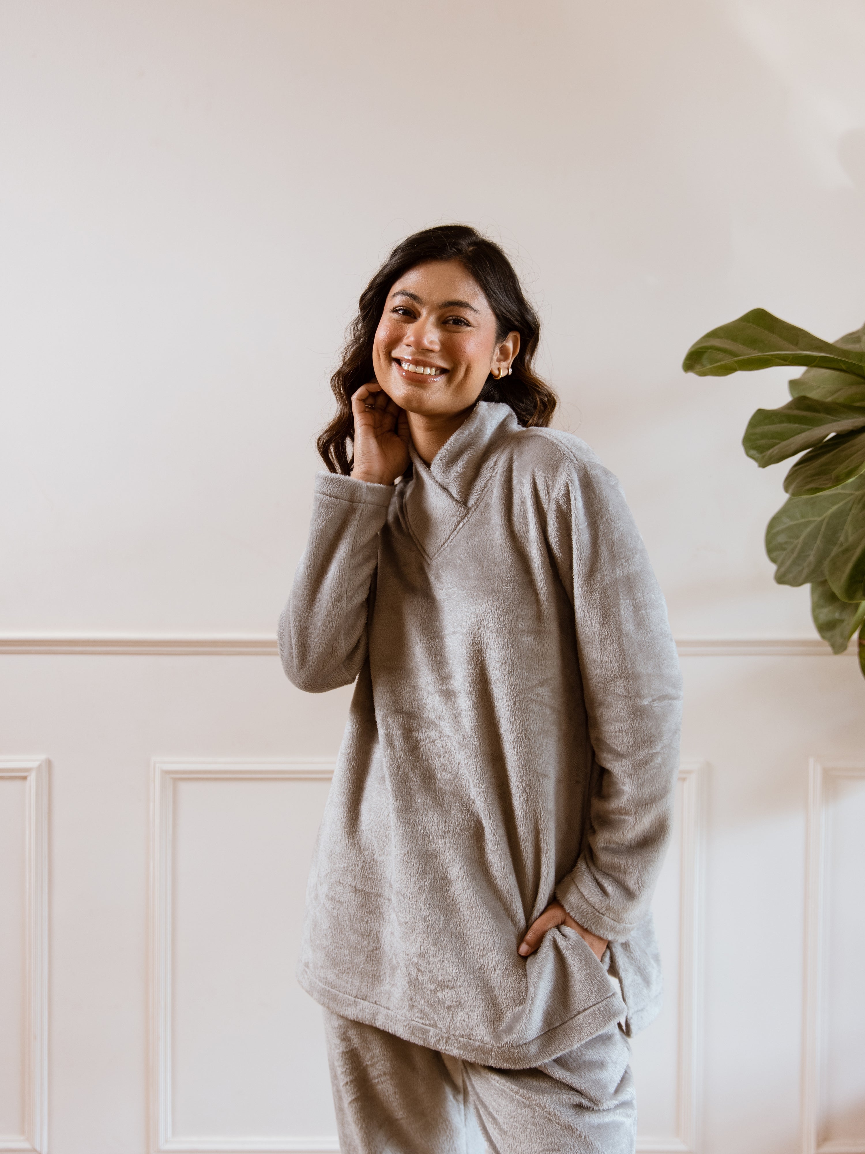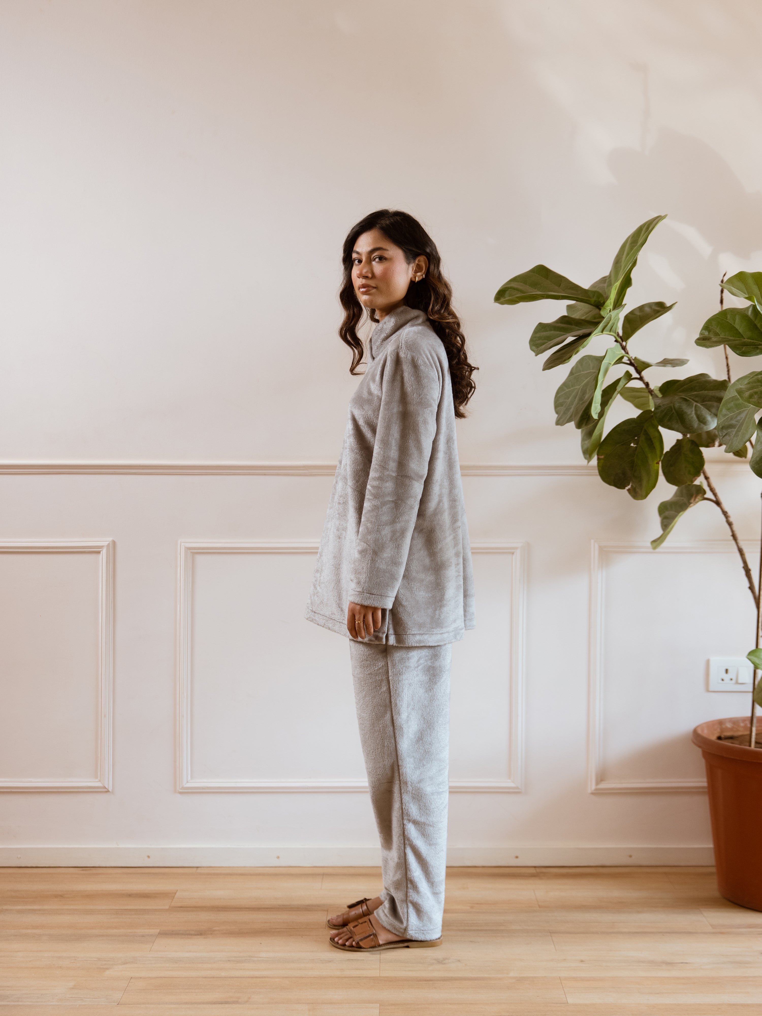 Cross Neck Super Soft Grey Woollen Set