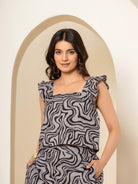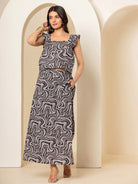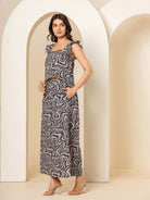 Blue Jaal Pure Cotton Tieup Square Neck Night Maxi