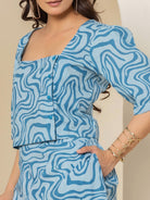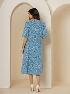 Blue Jaal Pure Cotton Tieup Square Neck Night Maxi