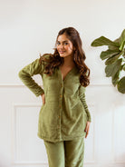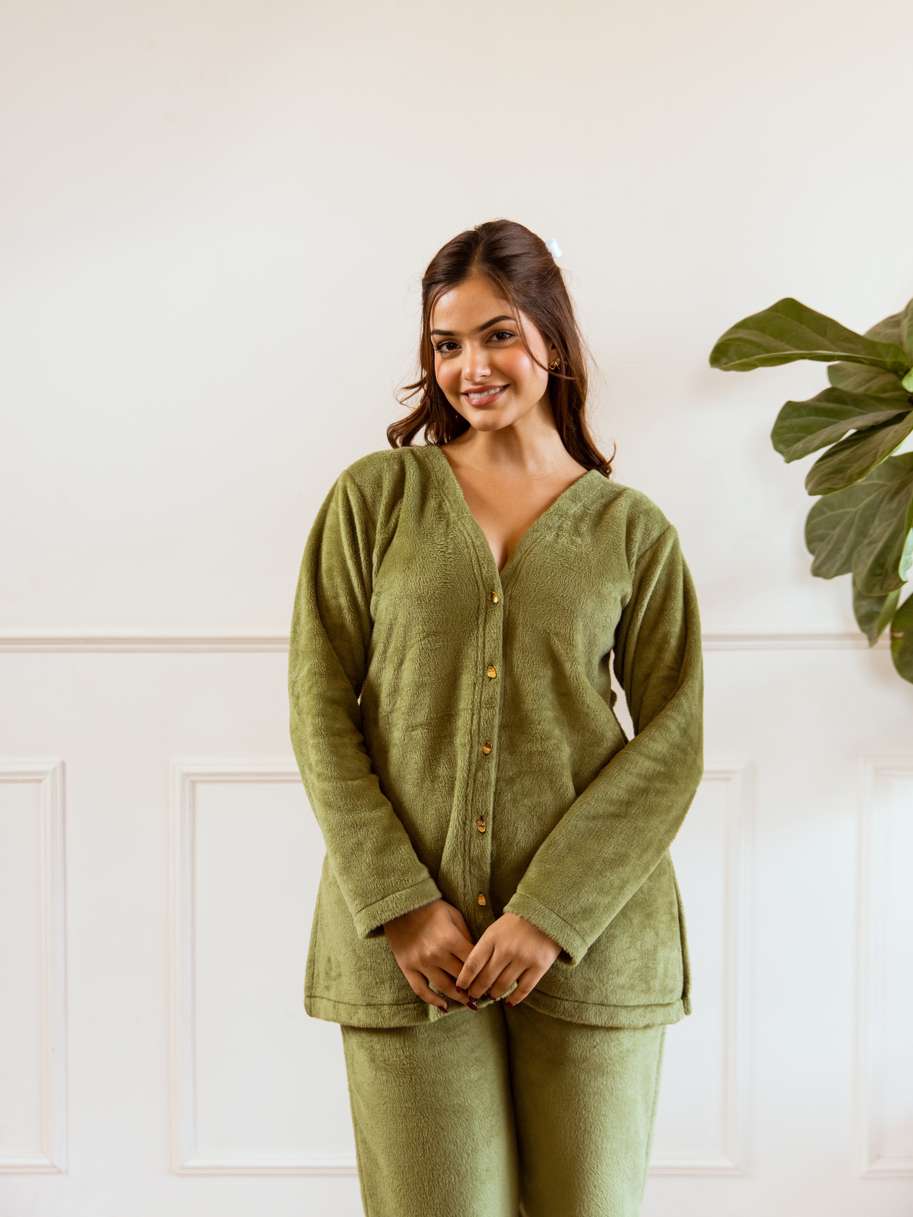 Get snug in style with this Green Super Soft Woollen Cardigan Set! Made from premium quality wool, this set promises to keep you warm and comfortable. Choose from a range of colors to match your style. Perfect for a cozy night in or a chilly day out.