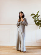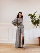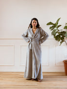Treat yourself to ultimate comfort with our Grey Super Soft Woollen Hoodie Robe! This ultra-soft robe combines the coziness of wool with the convenience of a hoodie for a quirky and luxurious lounging experience. Perfect for lazy days at home or a stylish alternative to a traditional bathrobe.