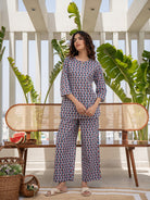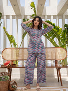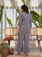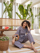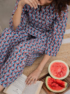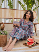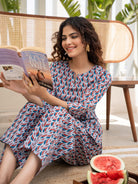 Blue Jaal Pure Cotton Tieup Square Neck Night Maxi