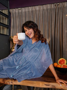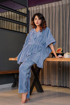 Blue Jaal Pure Cotton Tieup Square Neck Night Maxi