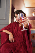 Blue Jaal Pure Cotton Tieup Square Neck Night Maxi