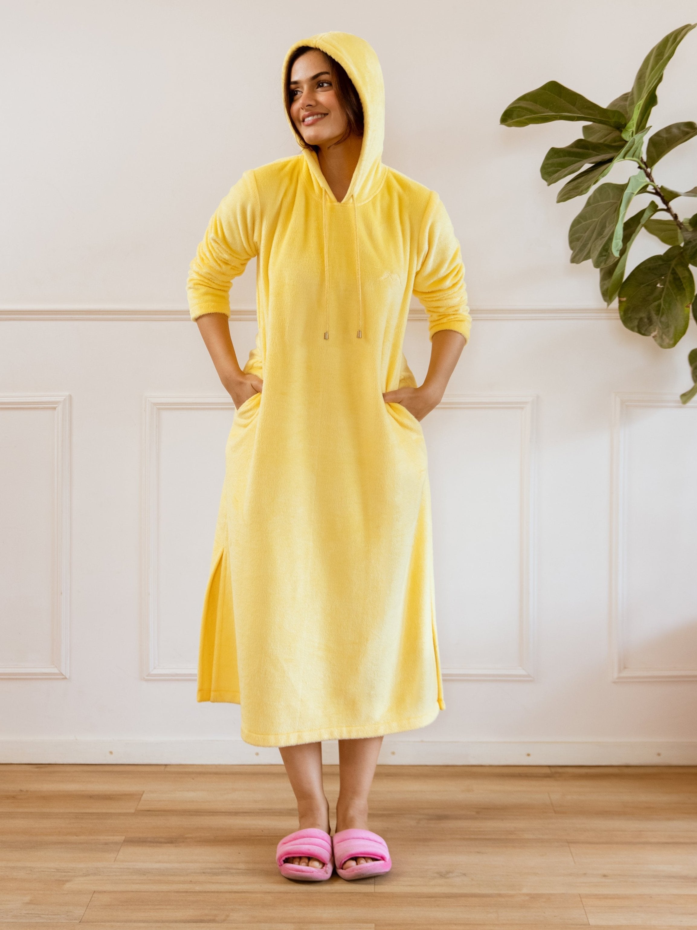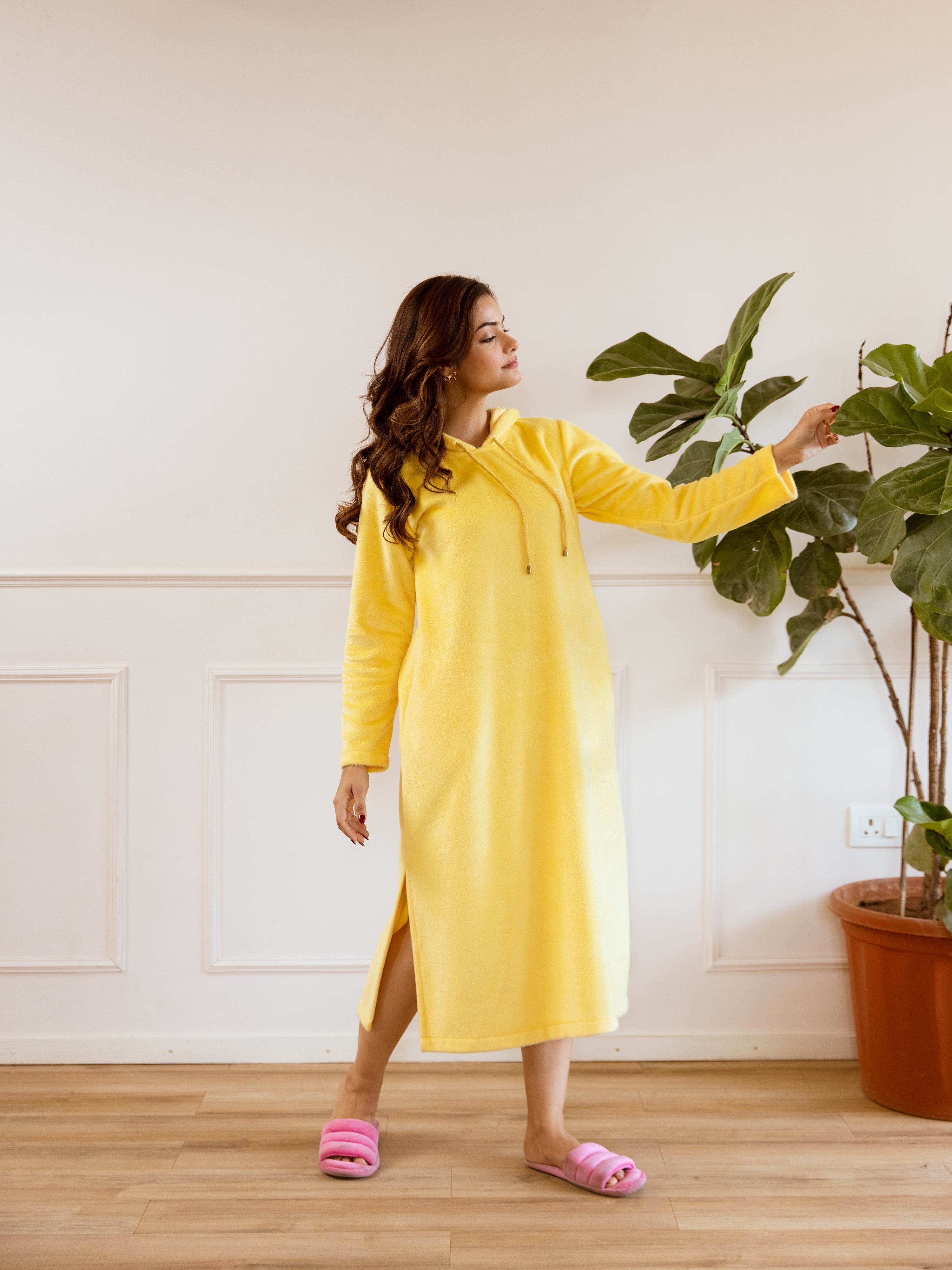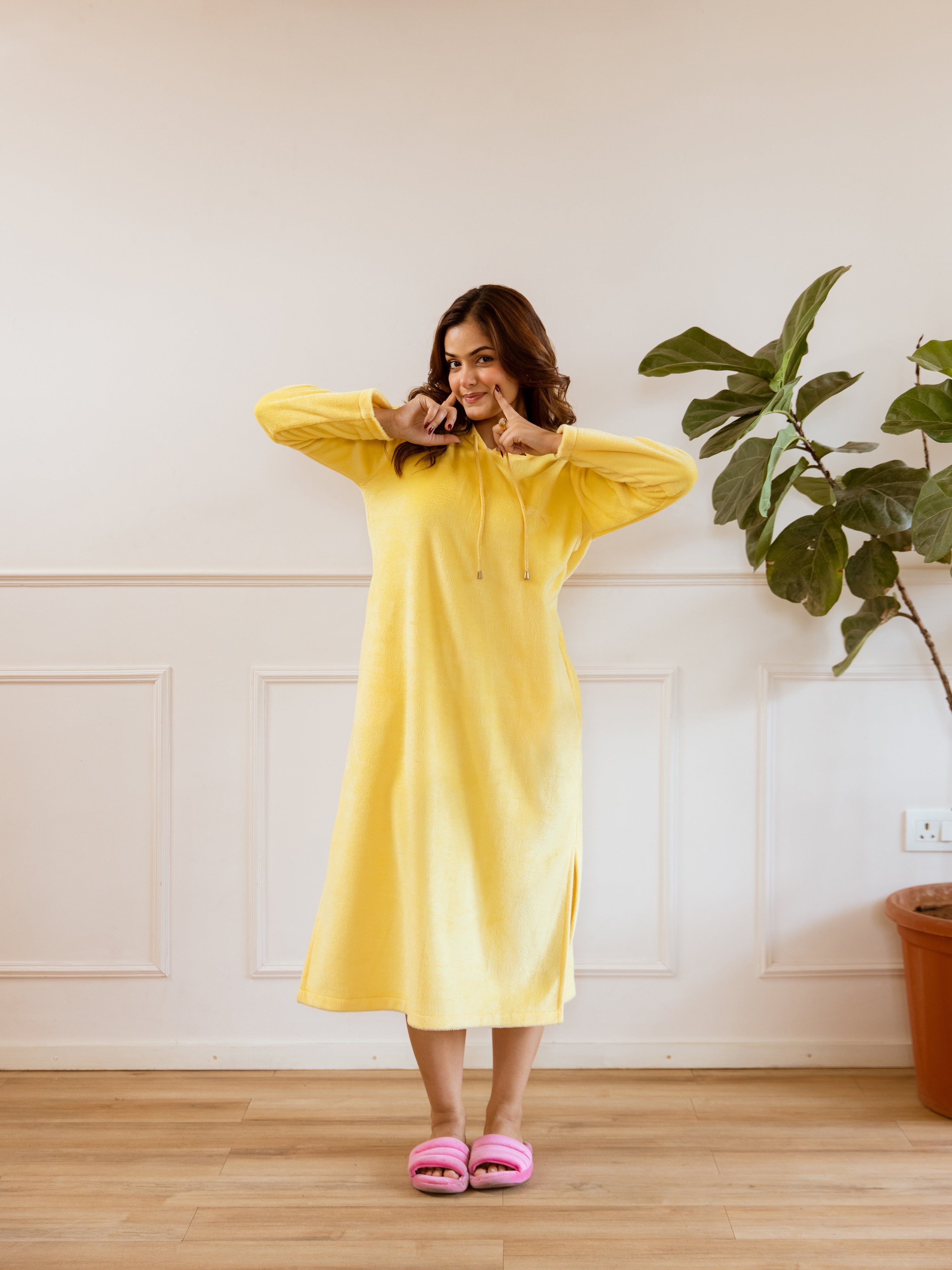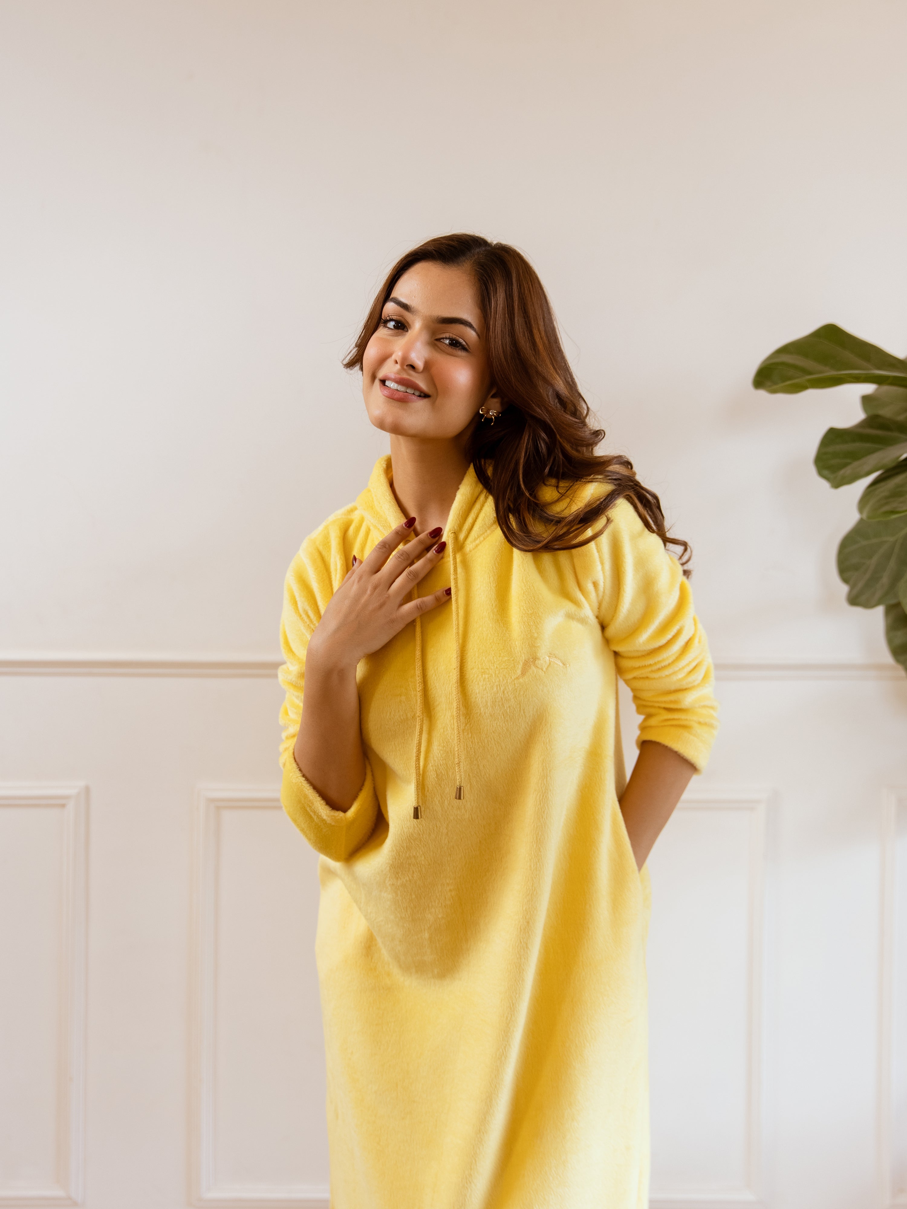 Pastel Yellow Super Soft Woollen Hoodie Dress