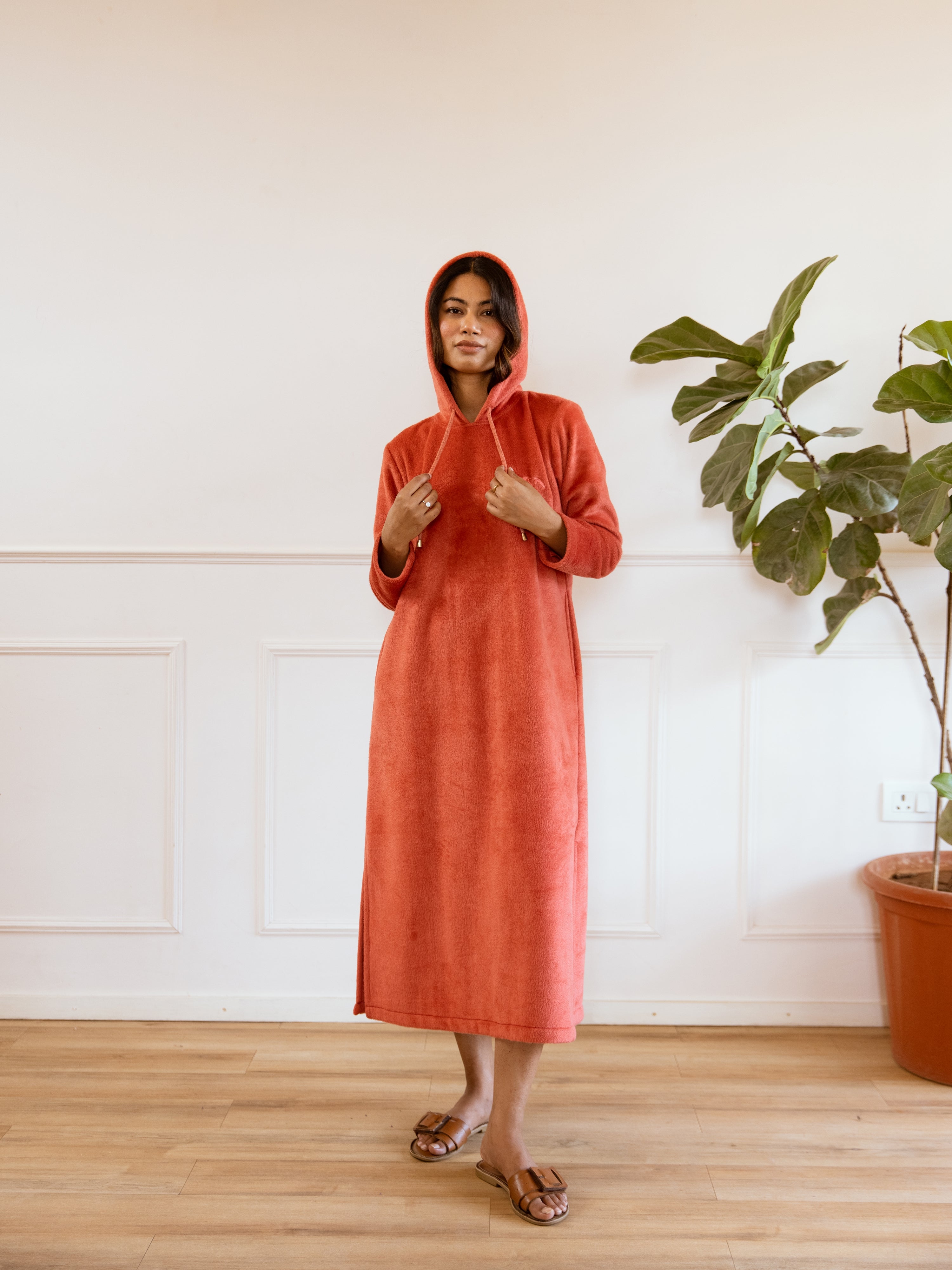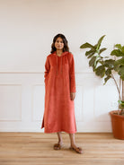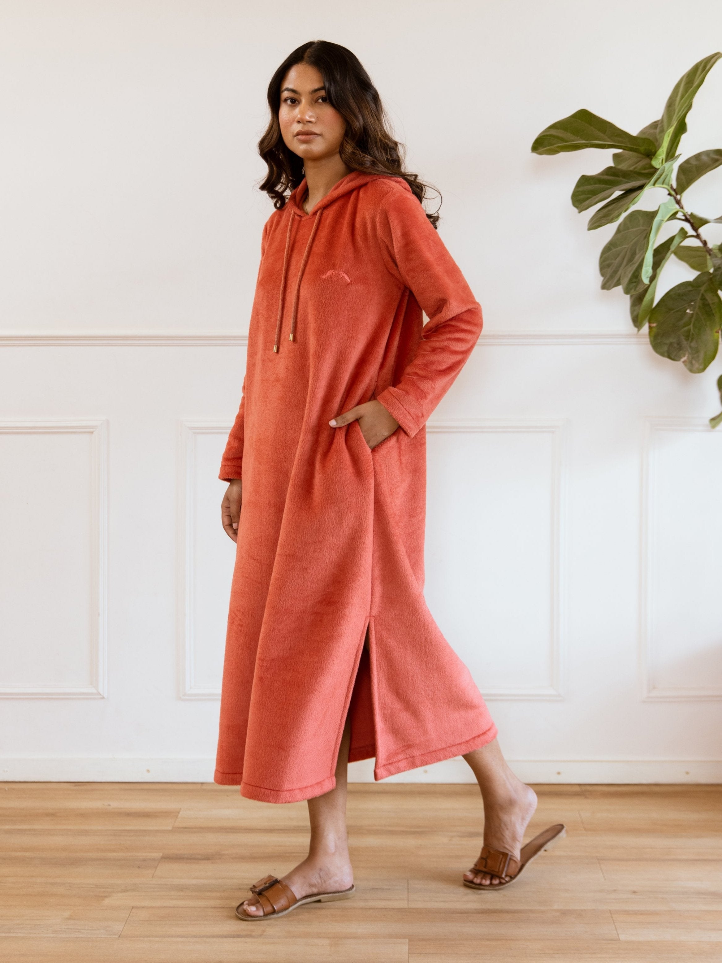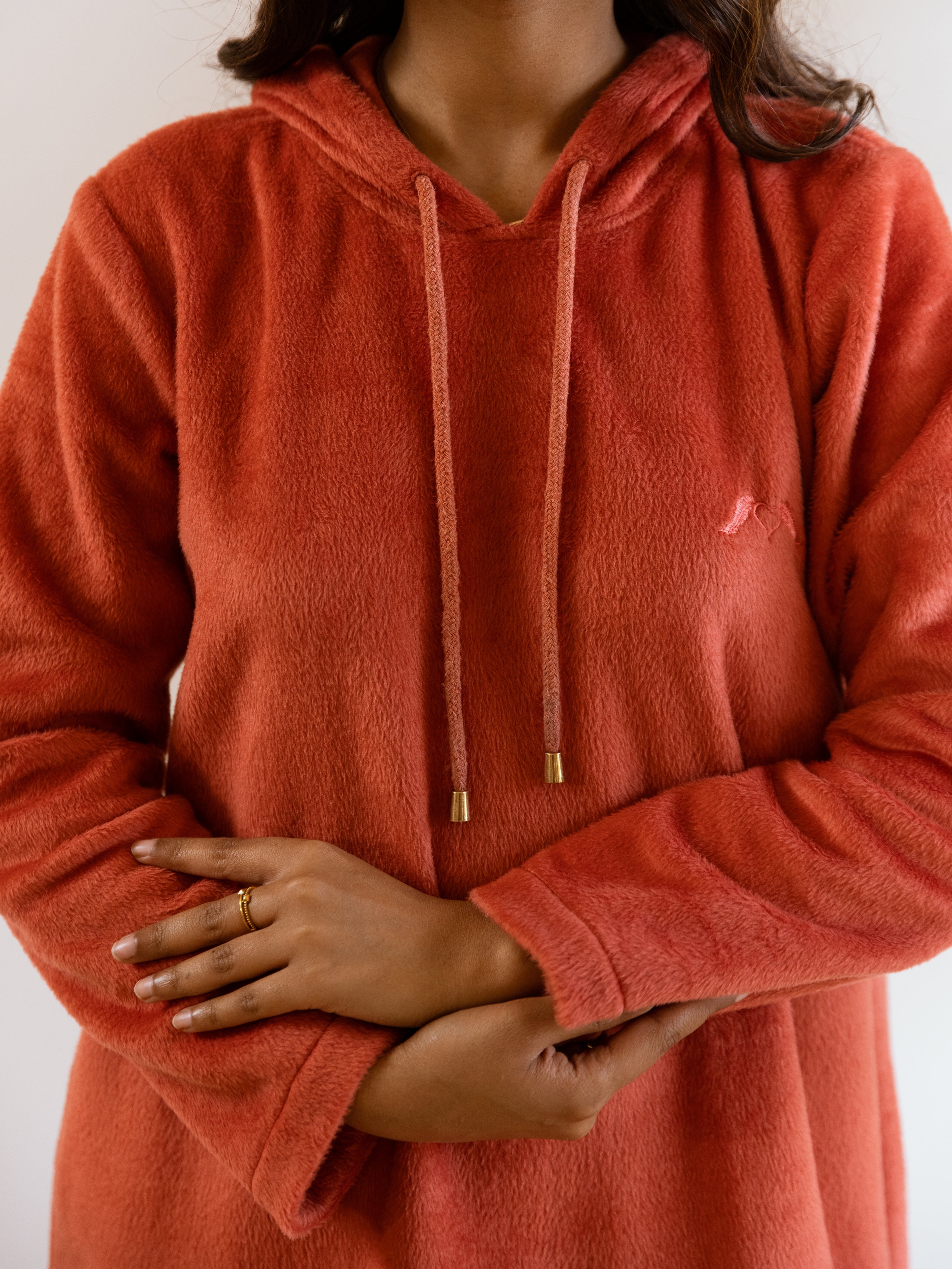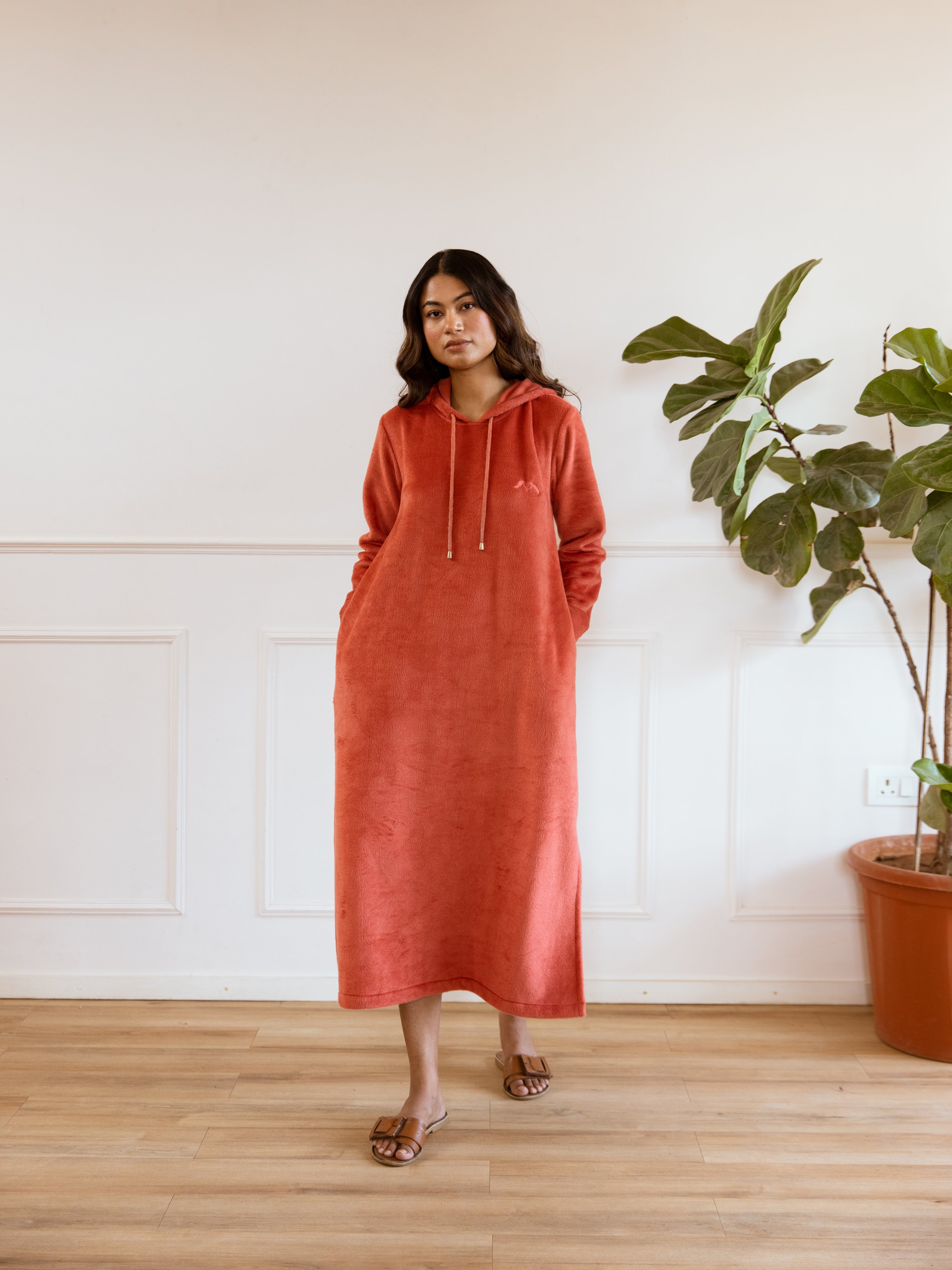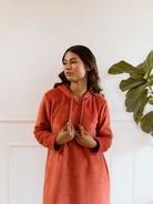 Rust Super Soft Woollen Hoodie Dress
