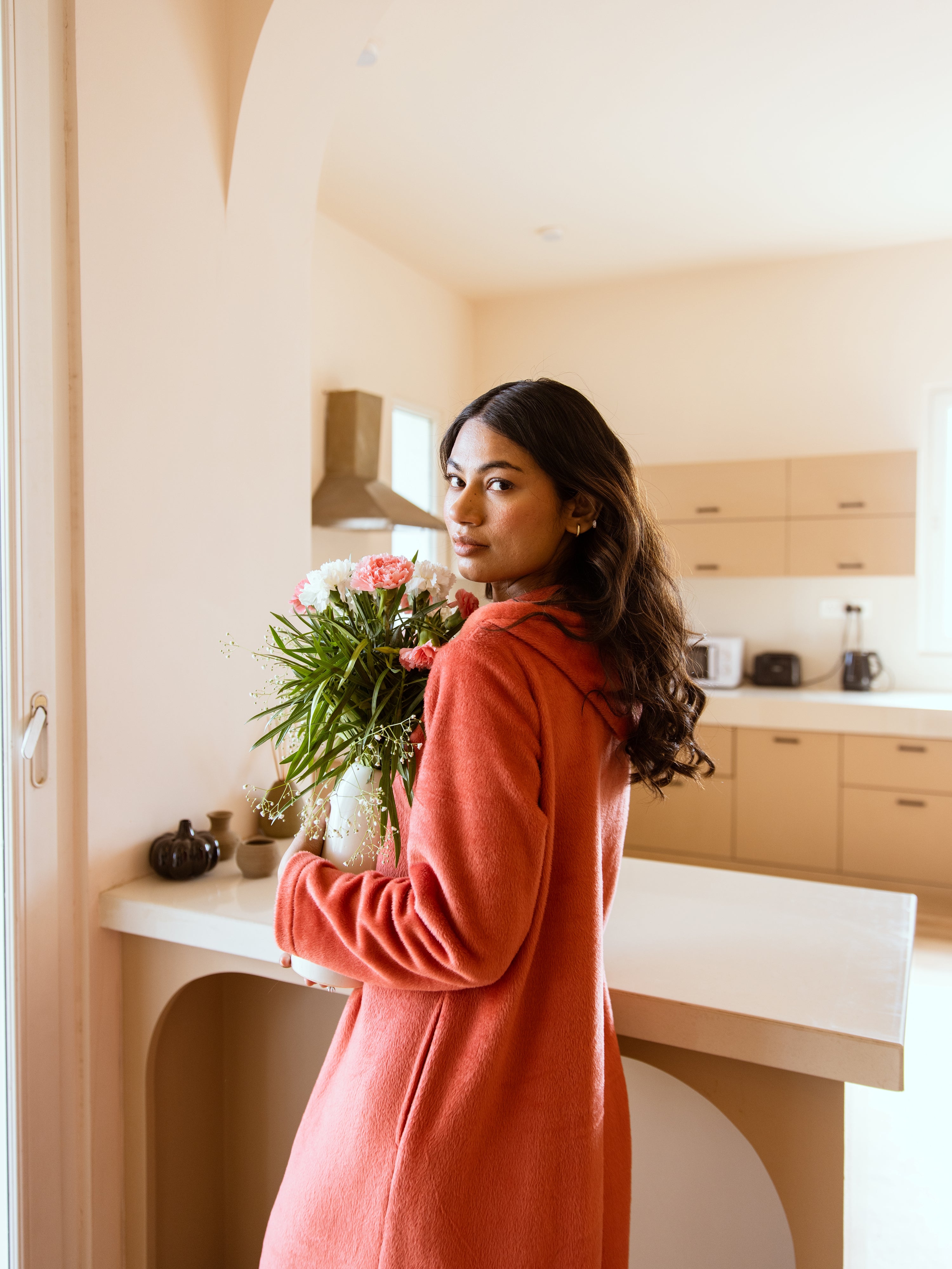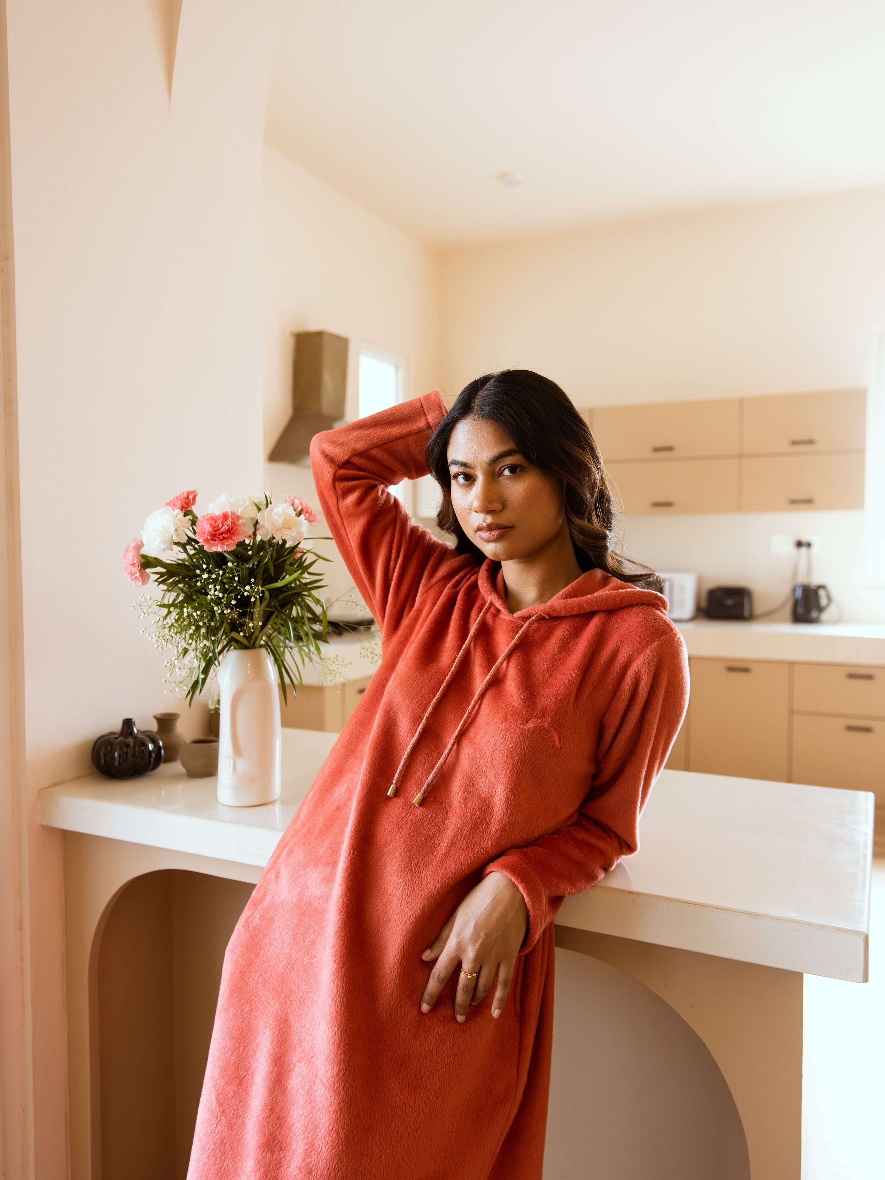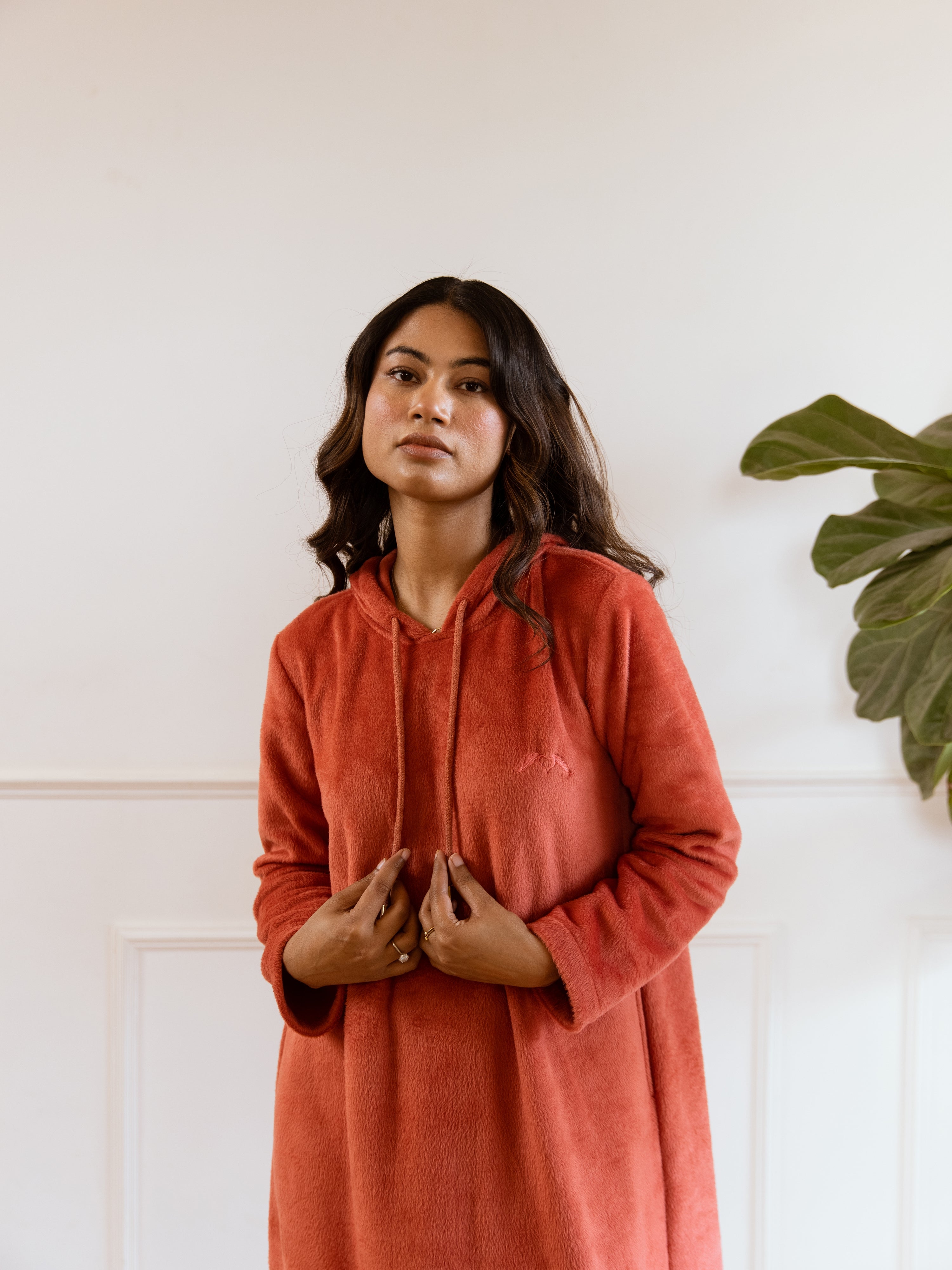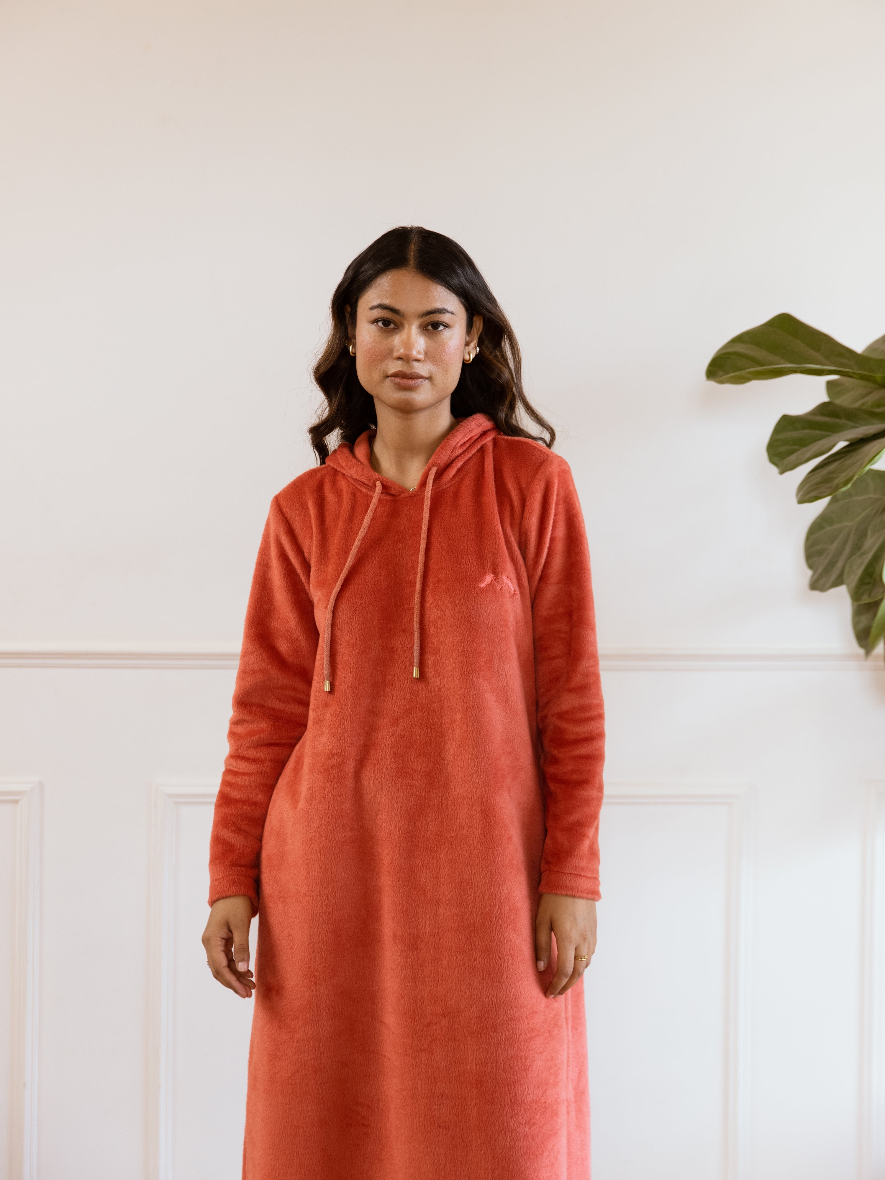 Rust Super Soft Woollen Hoodie Dress