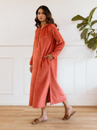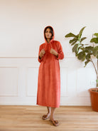 Rust Orange Crepe Square Neck Midi Night Dress