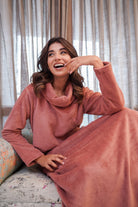 Super Soft Dusty Pink High Neck Woollen Maxi