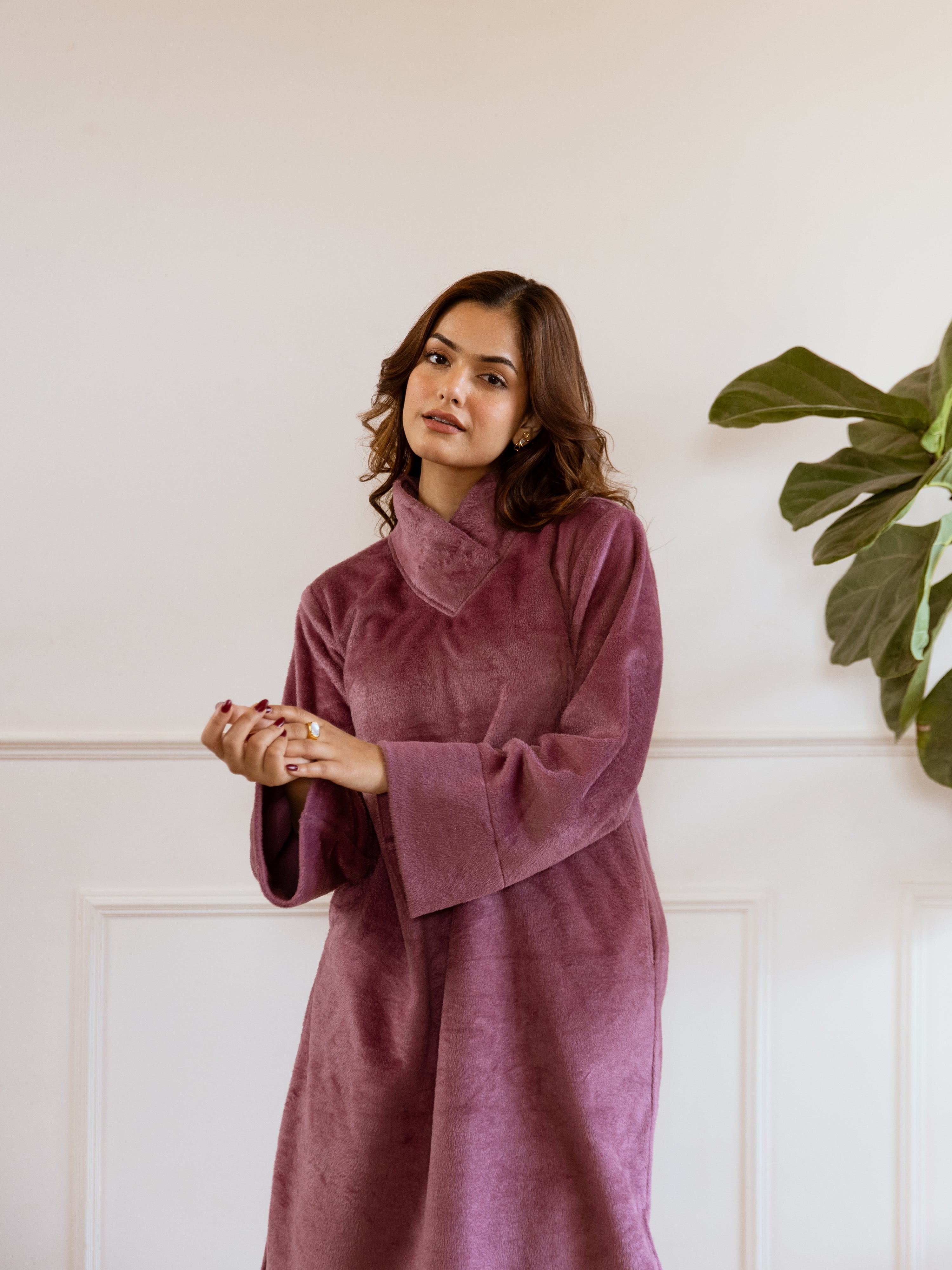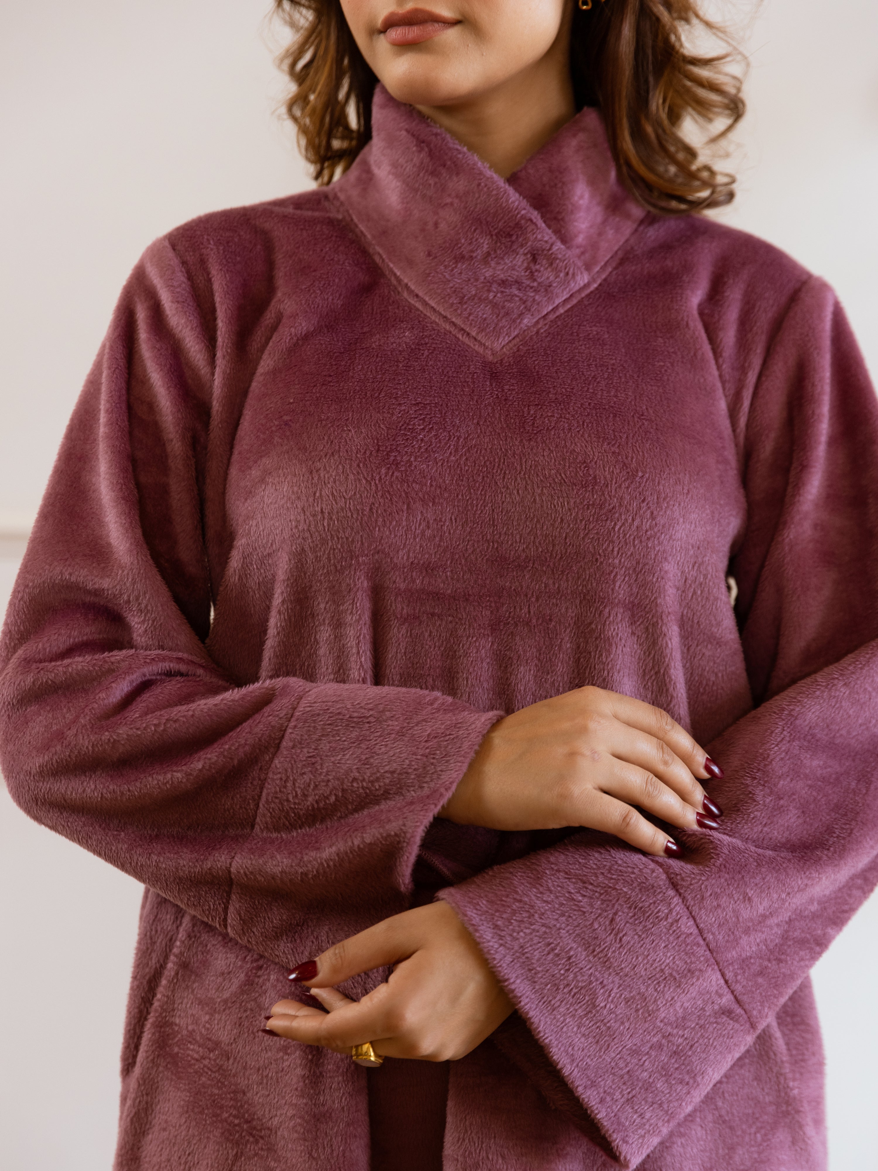 Wine Super Soft Woollen Maxi & Shrug Set