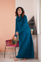 Blue Jaal Pure Cotton Tieup Square Neck Night Maxi