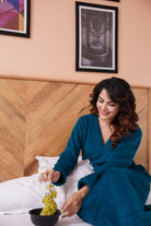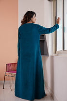 Blue Jaal Pure Cotton Tieup Square Neck Night Maxi