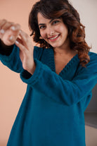 Midnight Blue Soft Crepe Shirt and Shorts Night Dress