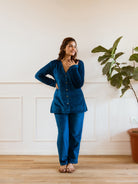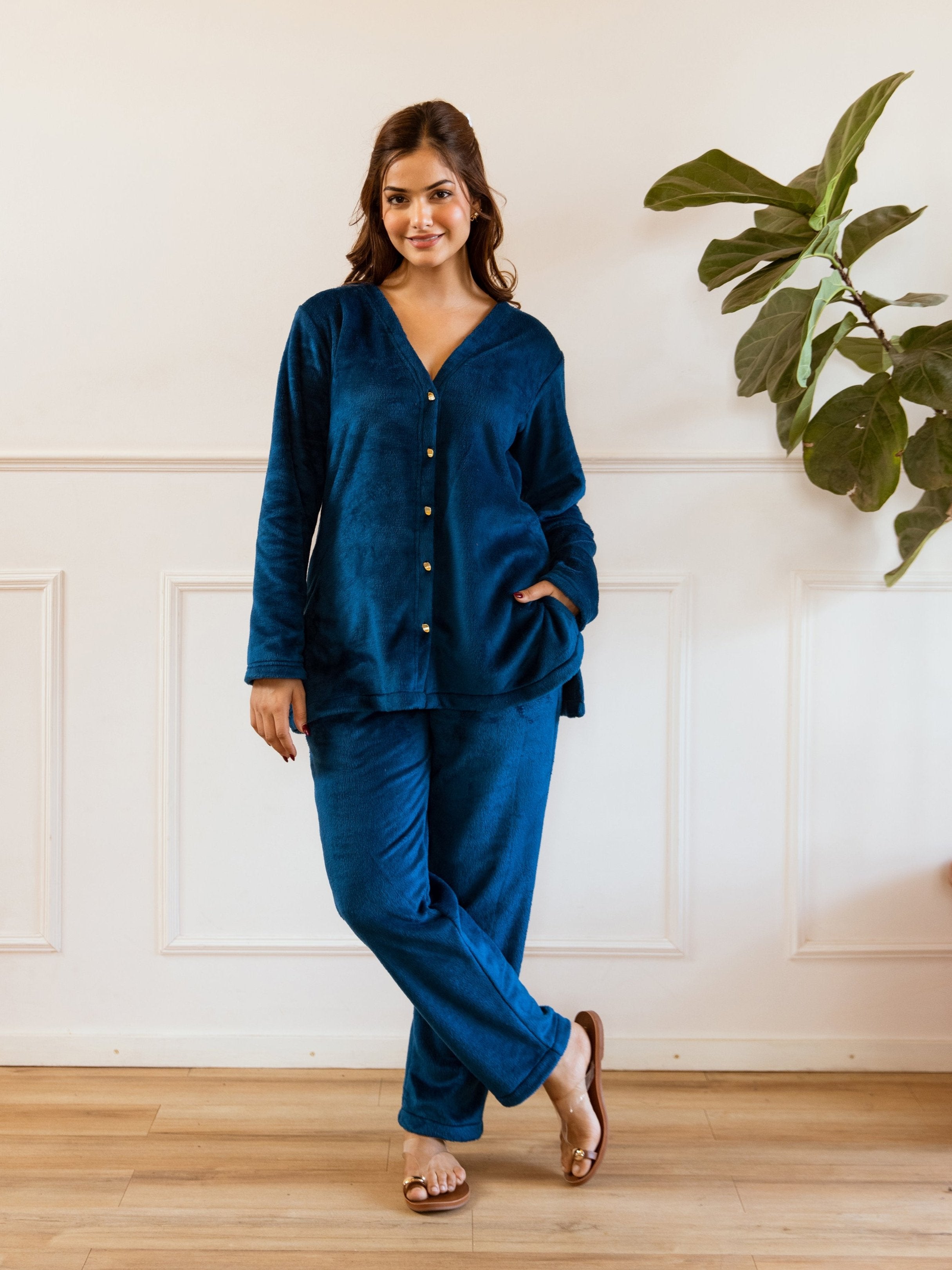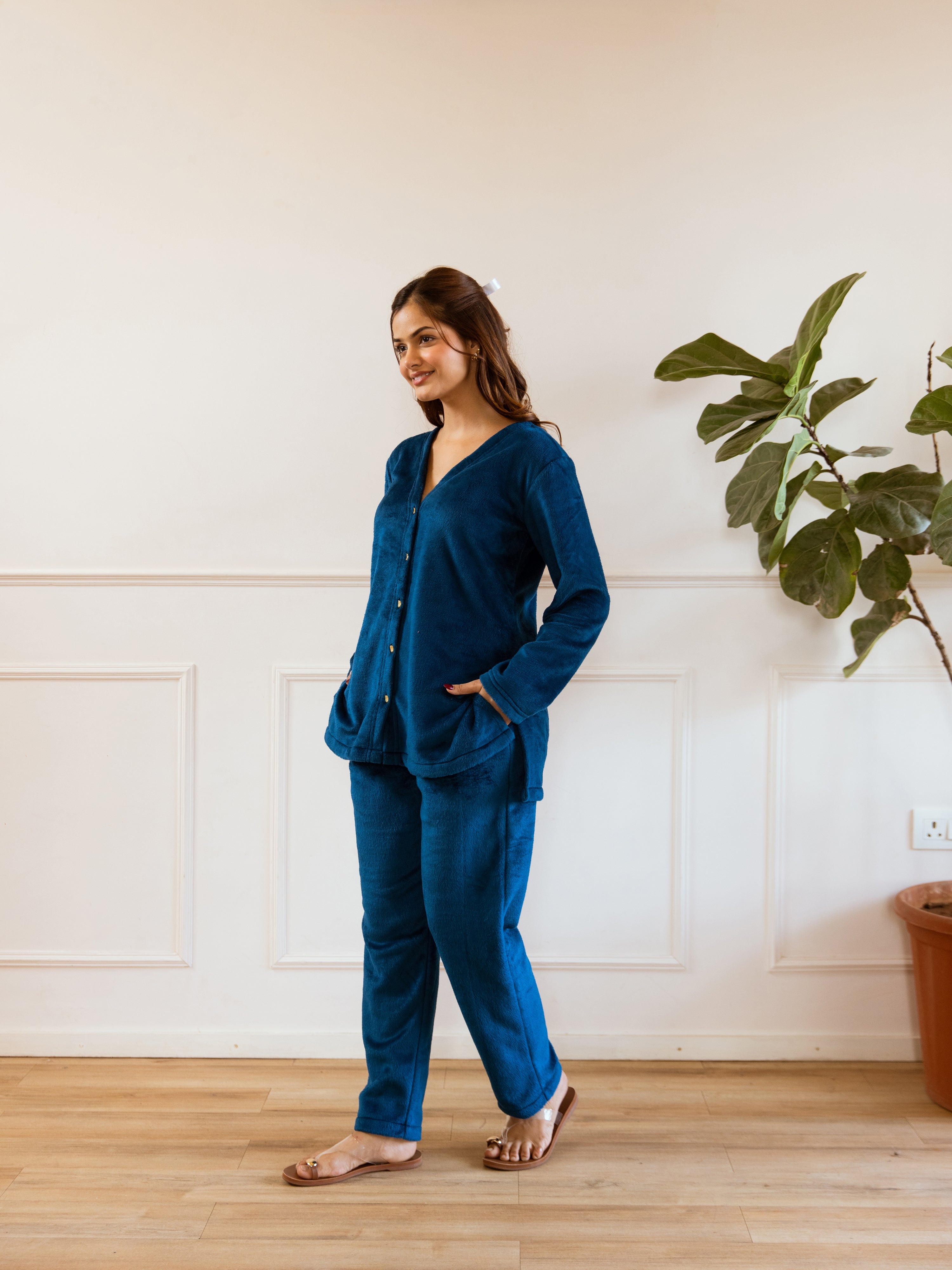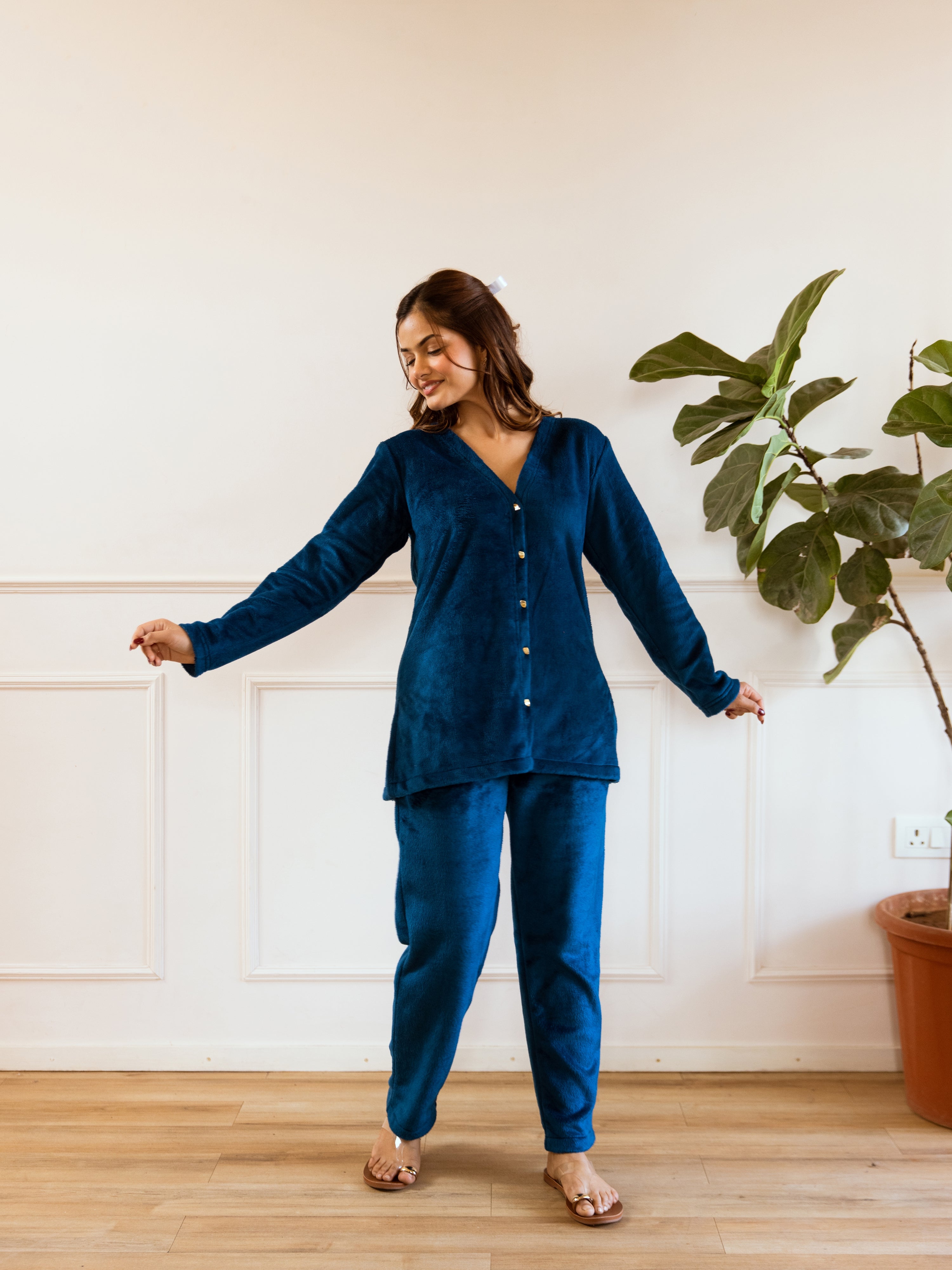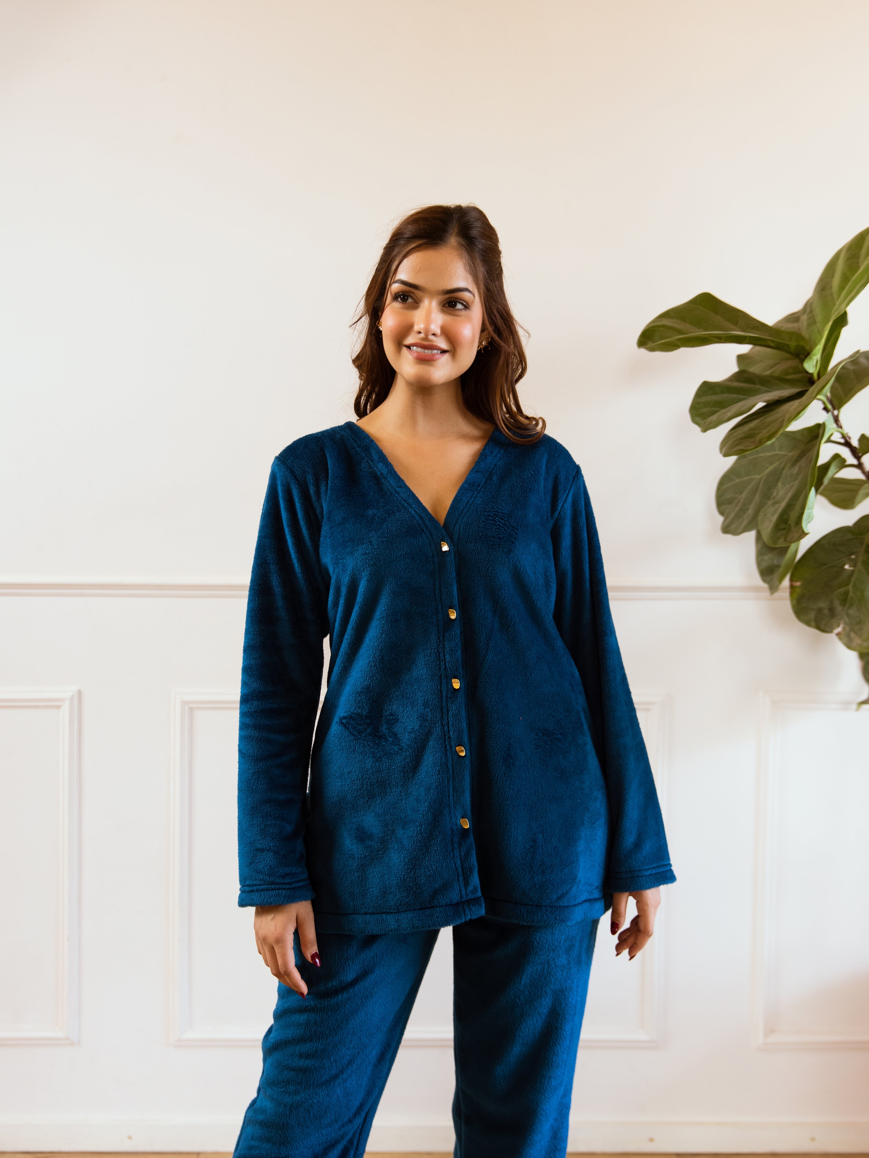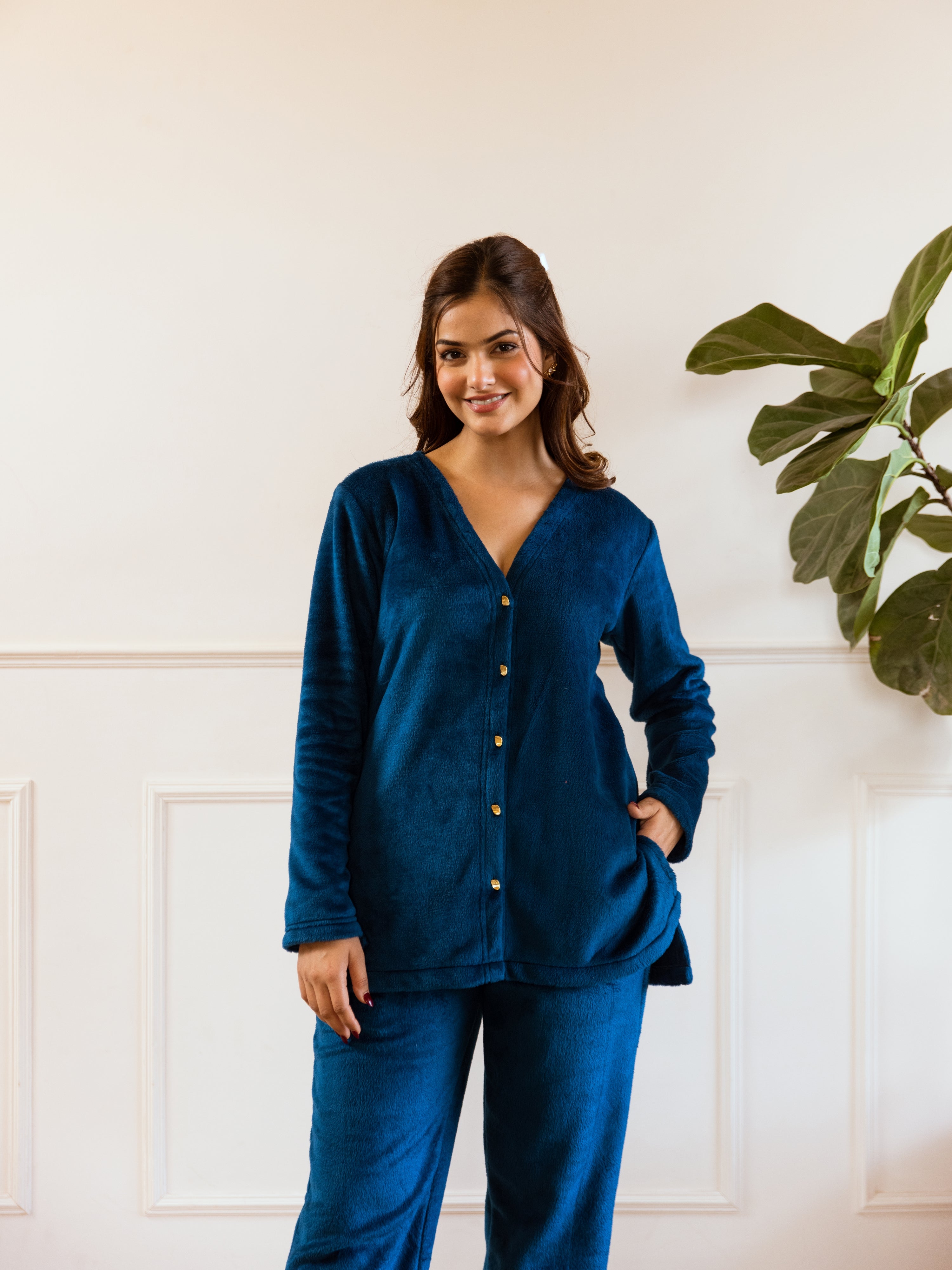 Stay cozy and stylish with our Teal Blue Super Soft Woollen Cardigan Set. Made with ultra soft wool, this set will keep you warm and stylish all season long. Perfect for layering or as a statement piece, this set is a must-have for any wardrobe. (Wool never looked so cool!)