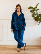 Midnight Blue Soft Crepe Shirt and Shorts Night Dress