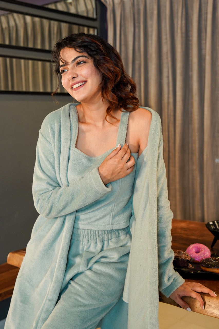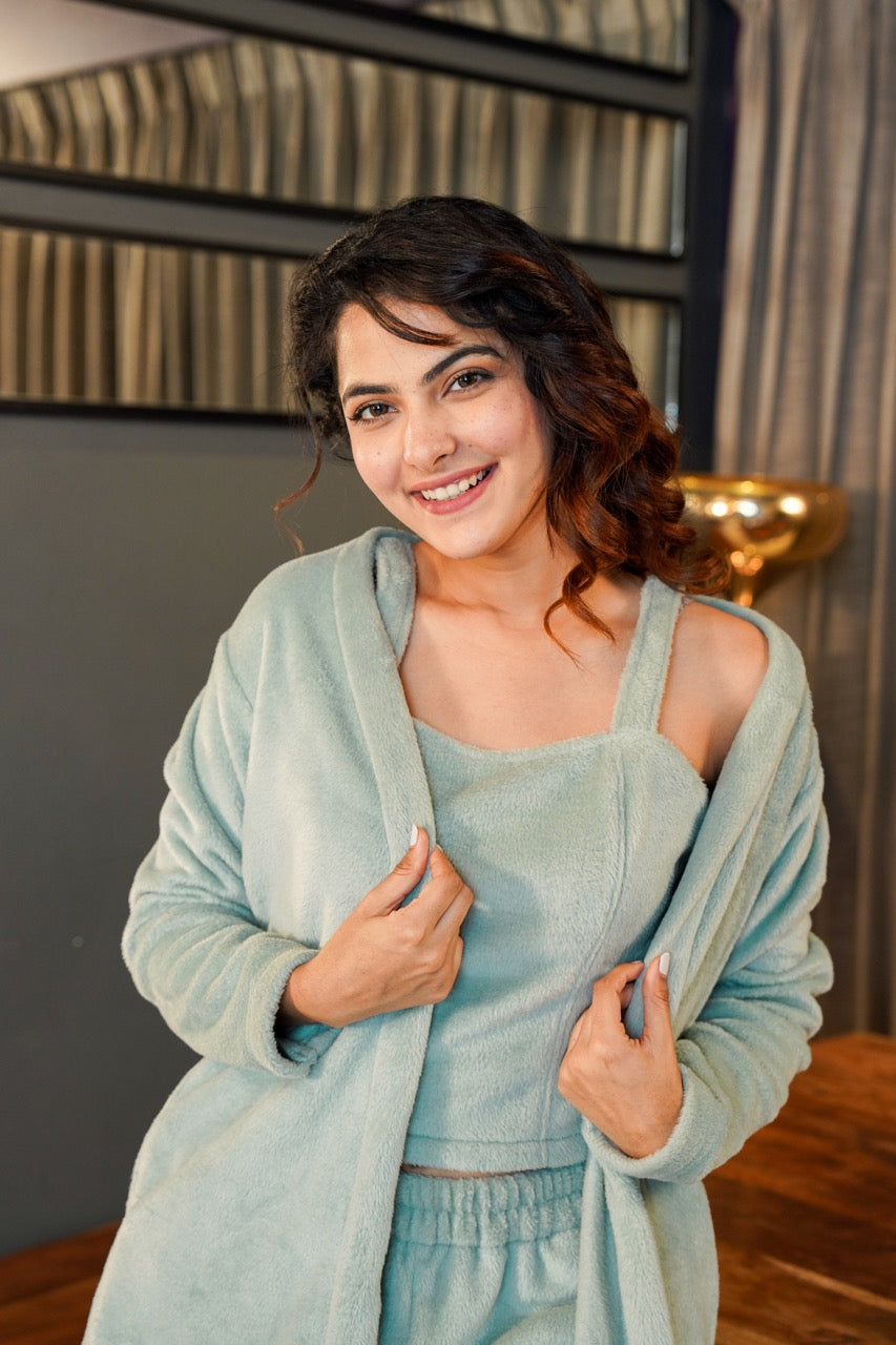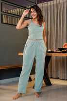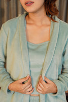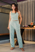 Light Blue Soft Crepe Sleeveless Top and Ruffle Shorts Co-Ord Set
