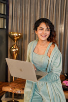Blue Jaal Pure Cotton Tieup Square Neck Night Maxi