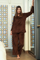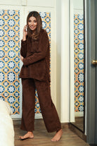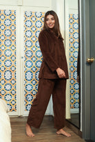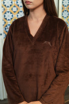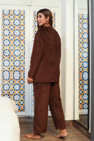 V neck Super Soft Brown woollen Lounge Wear Set