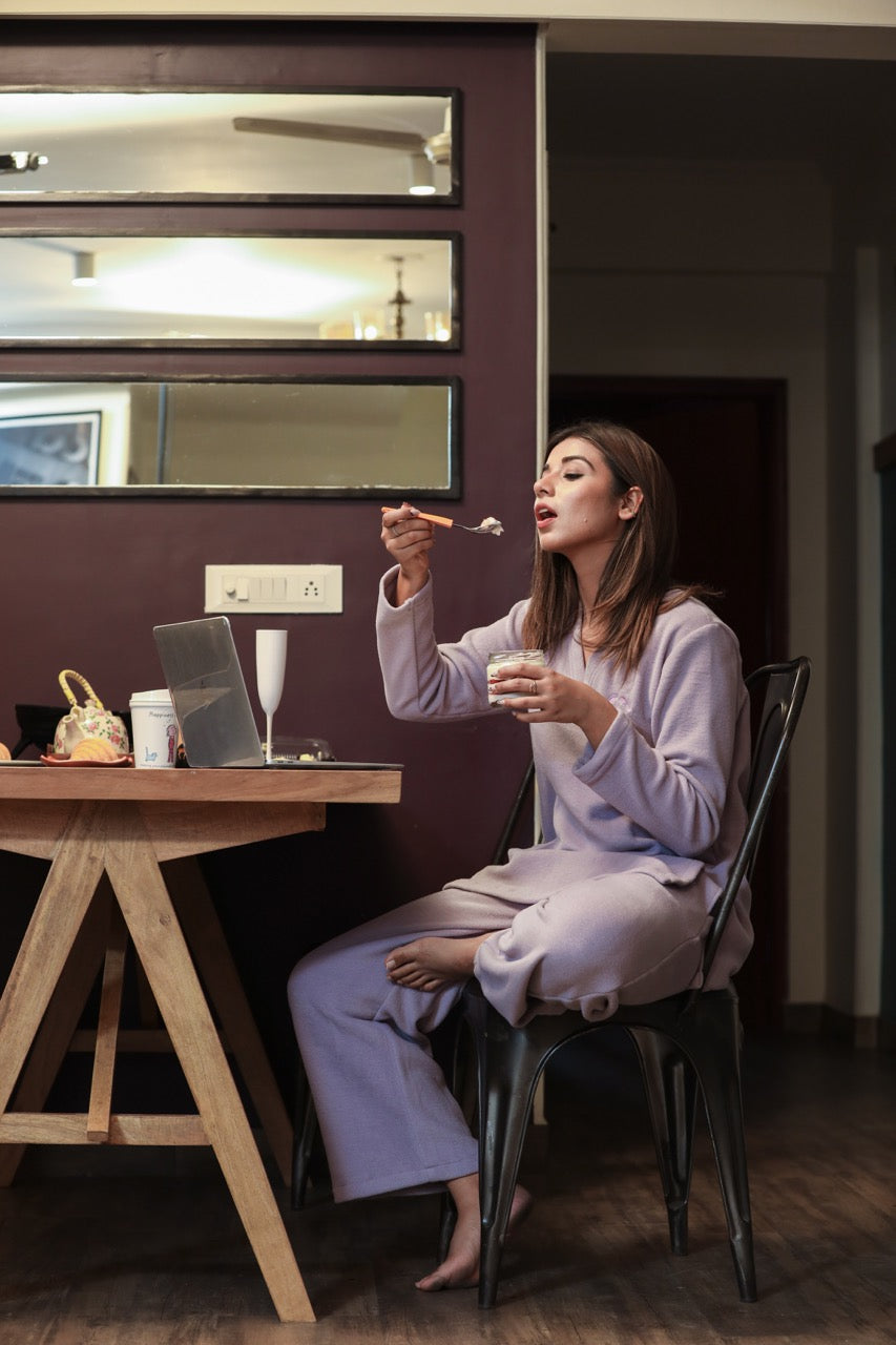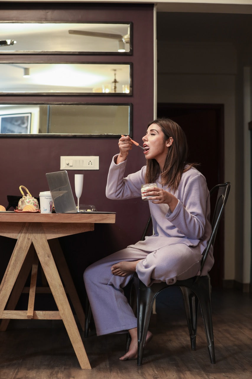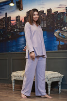 V neck Super Soft Lavender woollen Lounge Wear Set
