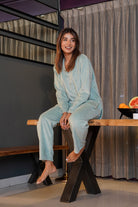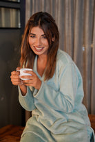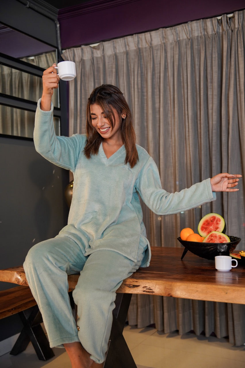 V neck Super Soft Turquoise woollen Lounge Wear Set