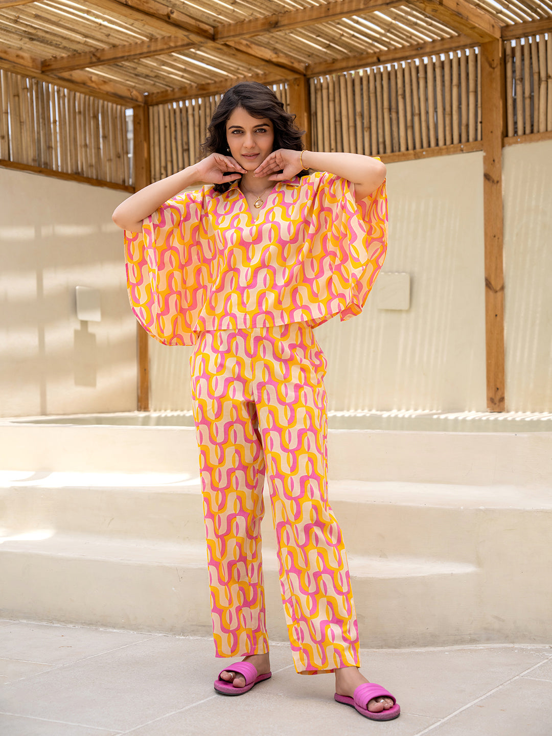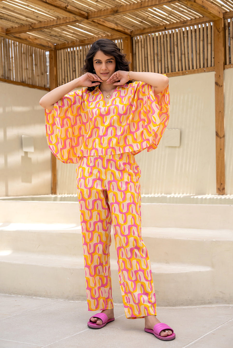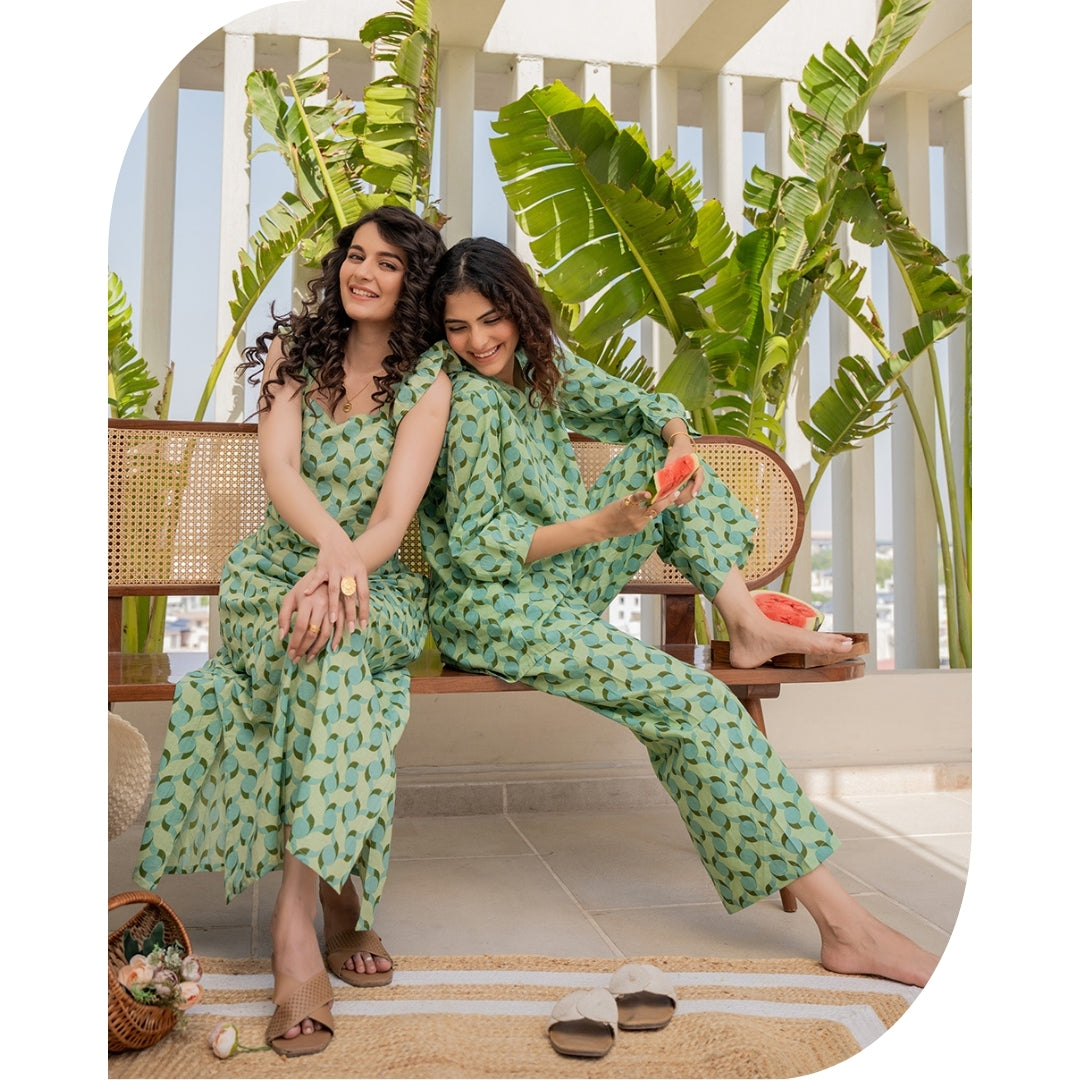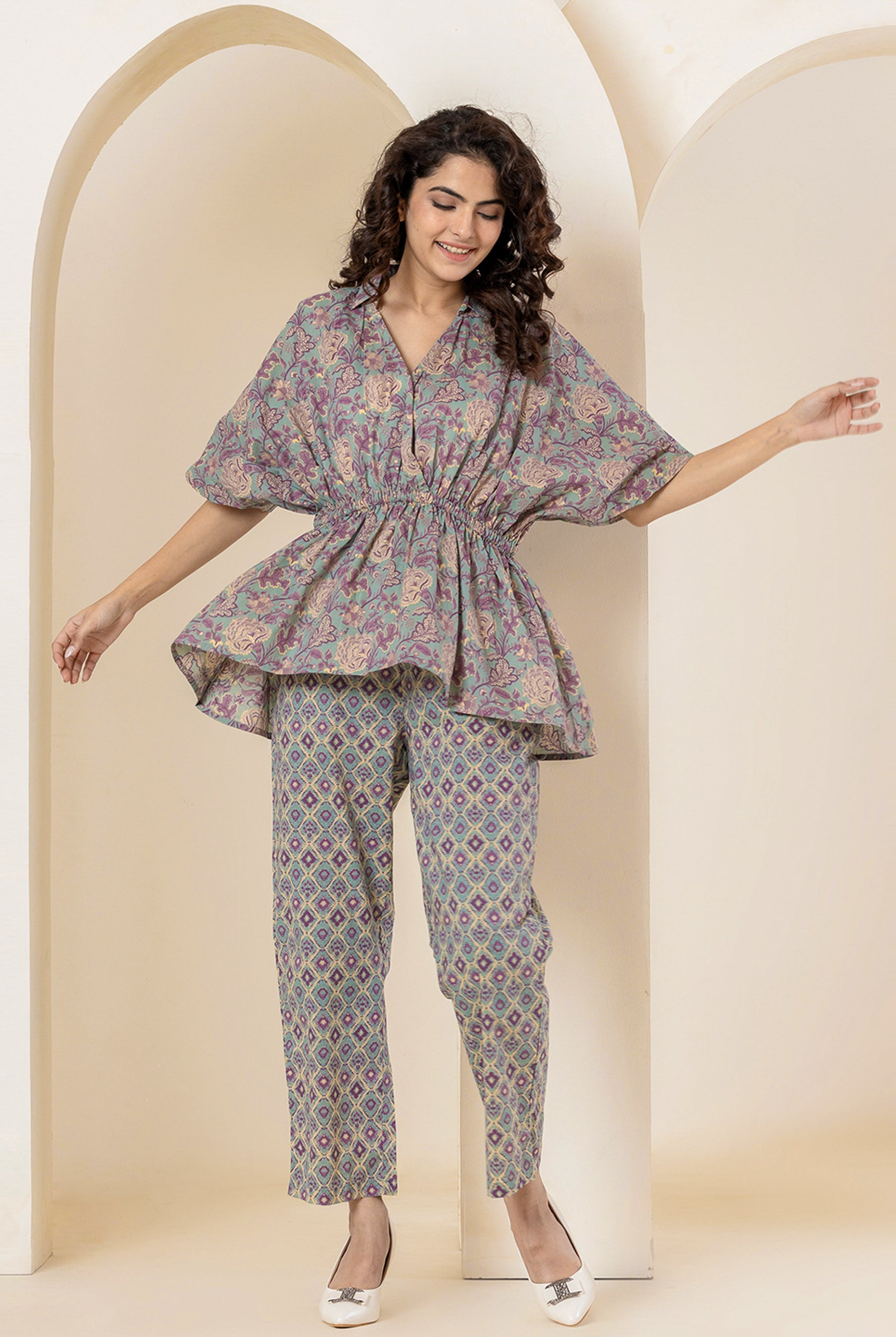 Our cotton co-ord sets are designed with India’s climate and your comfort in mind. Soft, breathable, and naturally lightweight, cotton is the fabric of choice for all-day wear—especially when paired with a flowy kaftan silhouette.