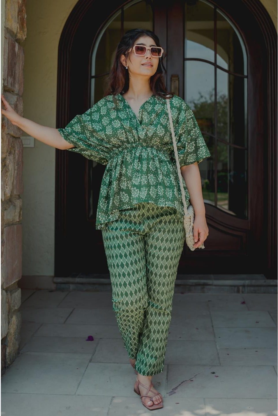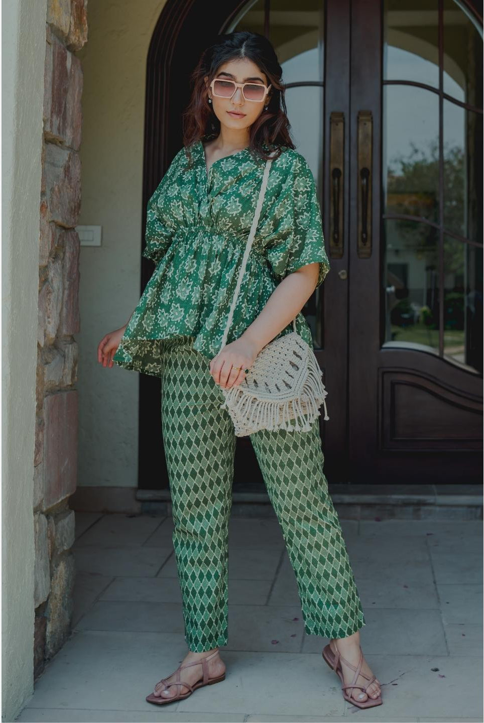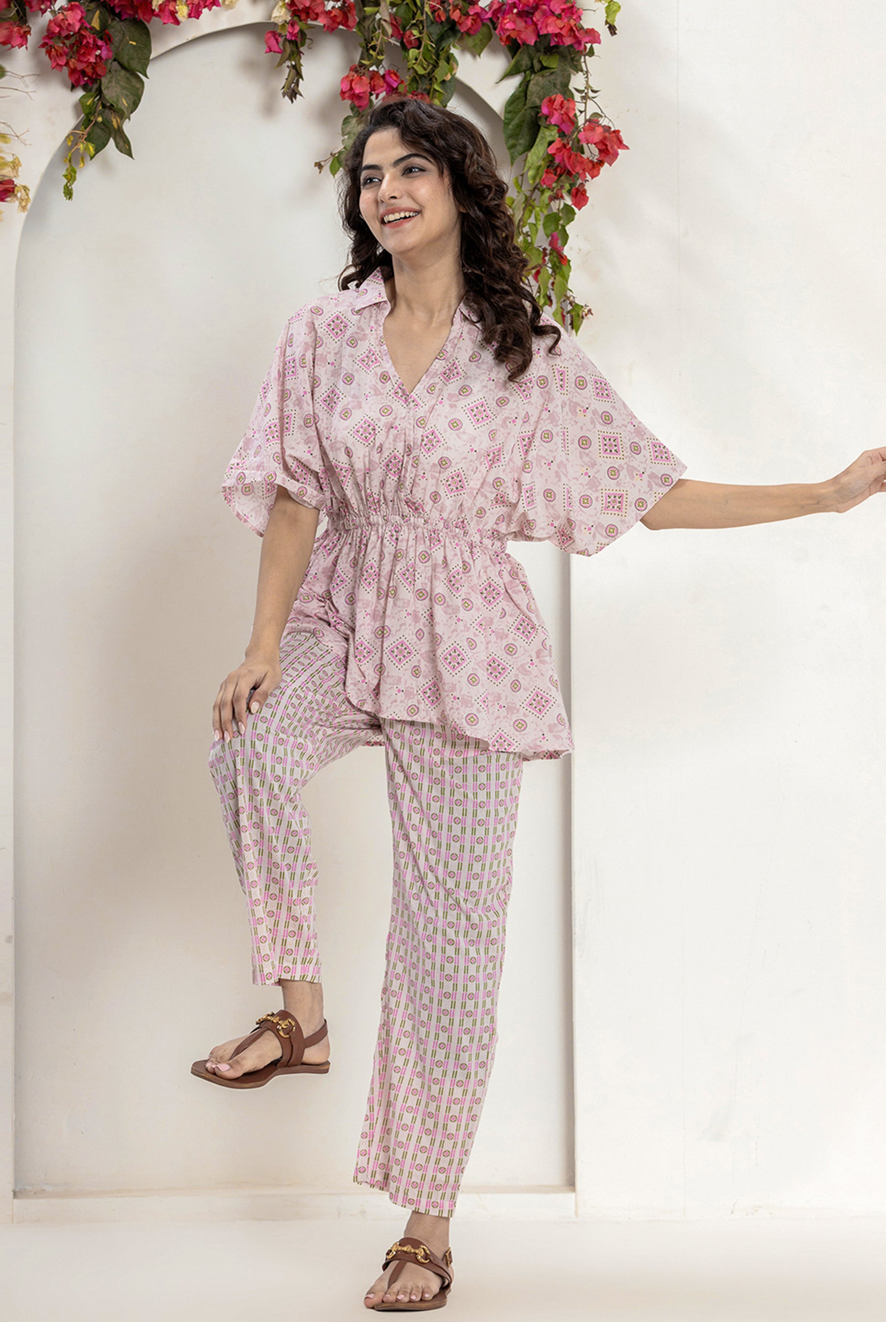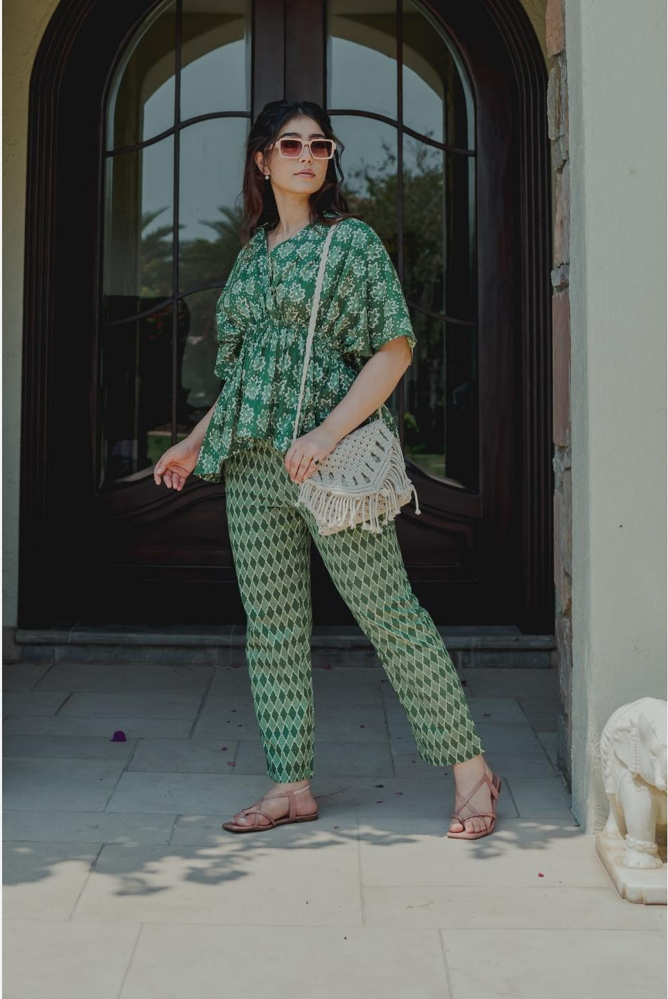 - Pair your kaftan co-ord with statement earrings and kolhapuri sandals for a boho-chic vibe