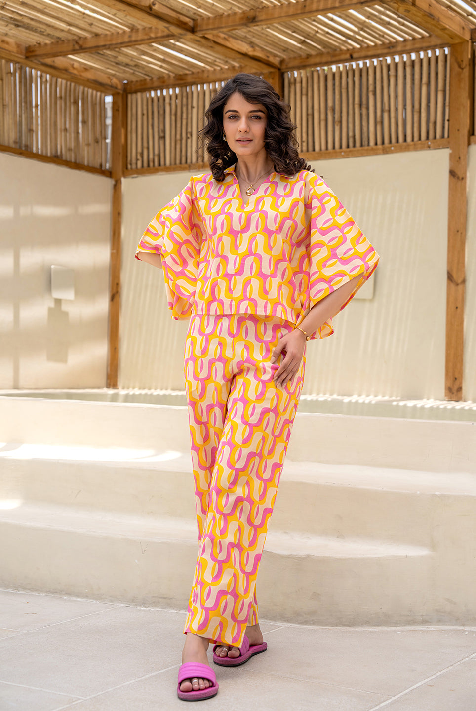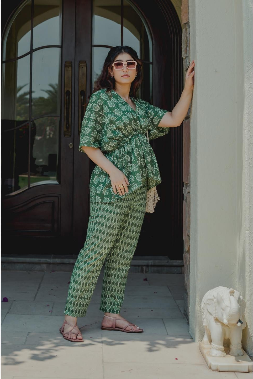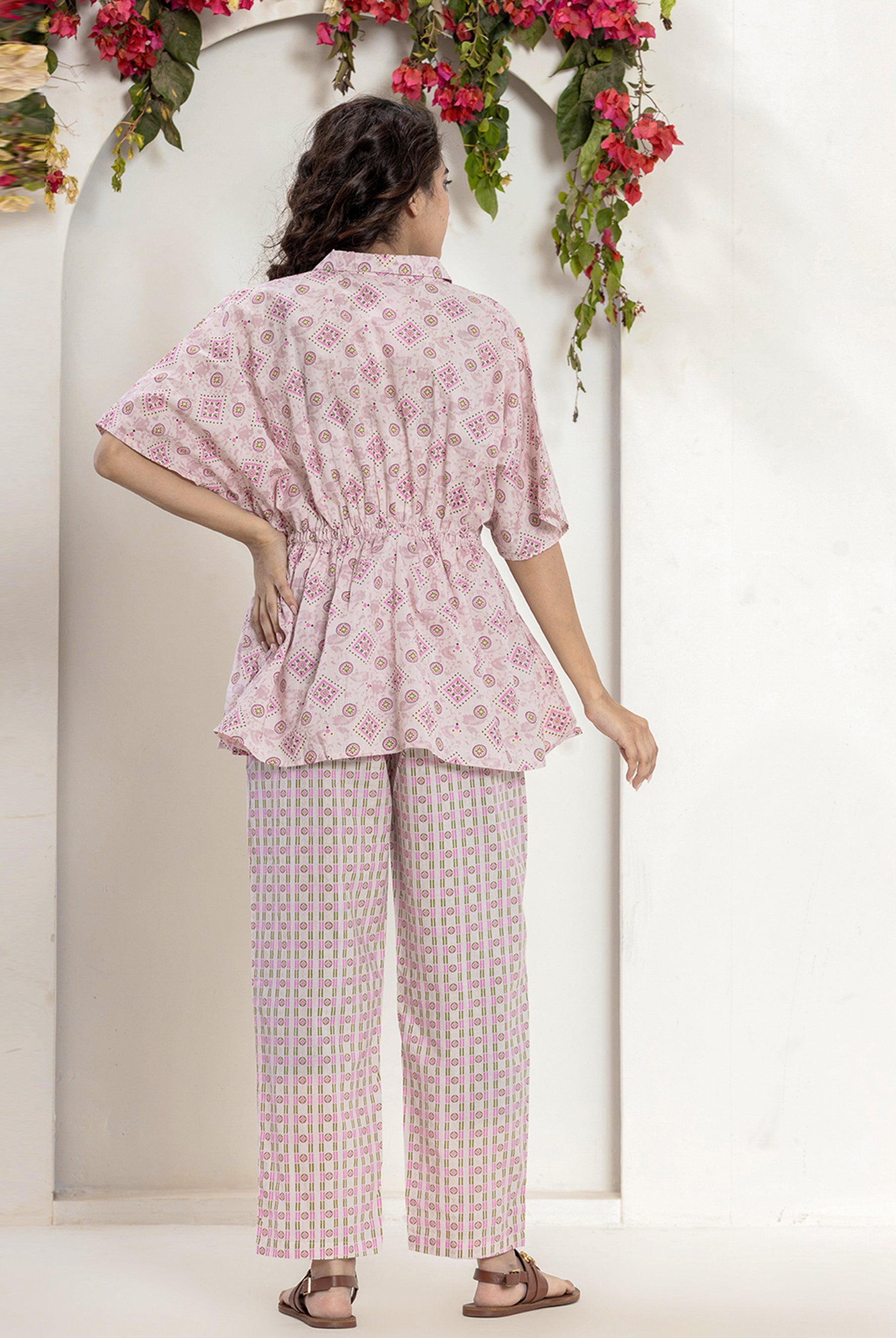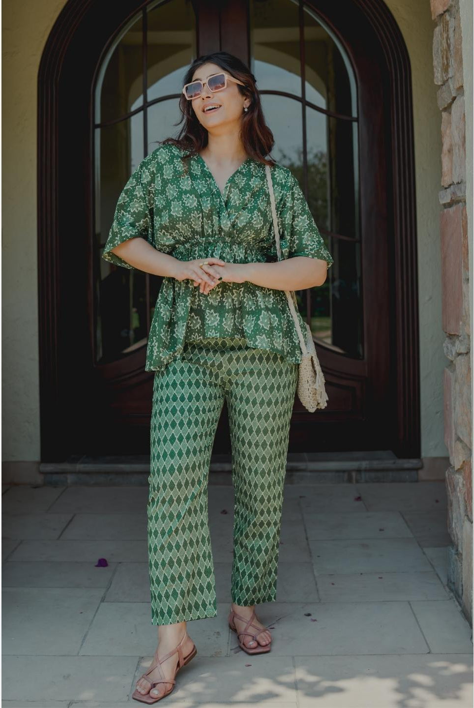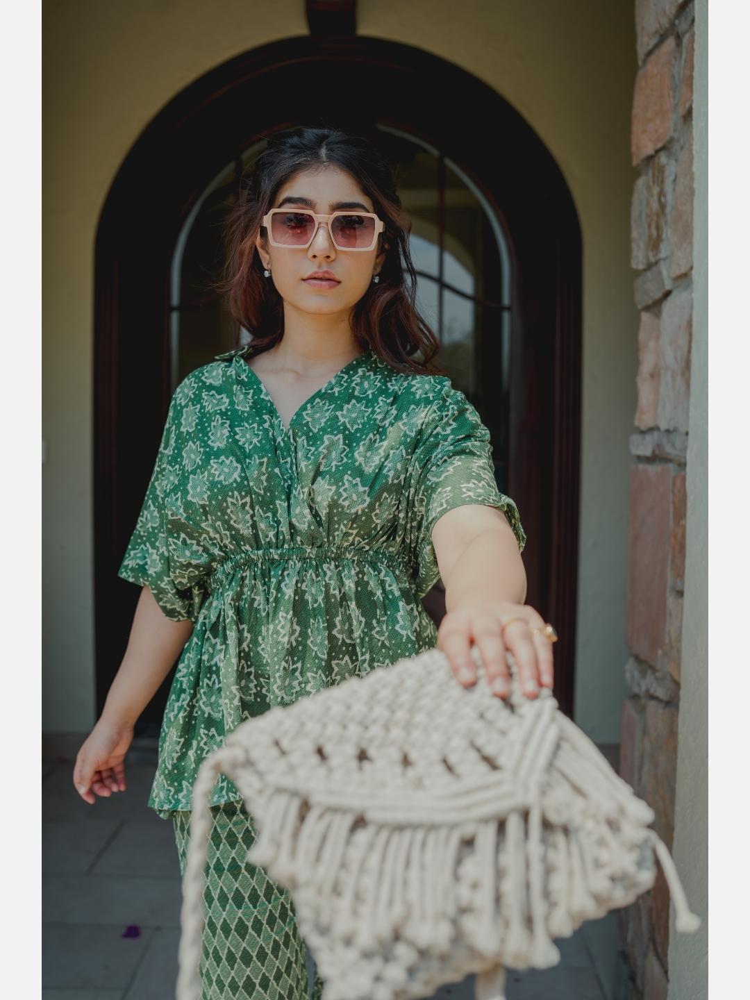 - Pair your kaftan co-ord with statement earrings and kolhapuri sandals for a boho-chic vibe