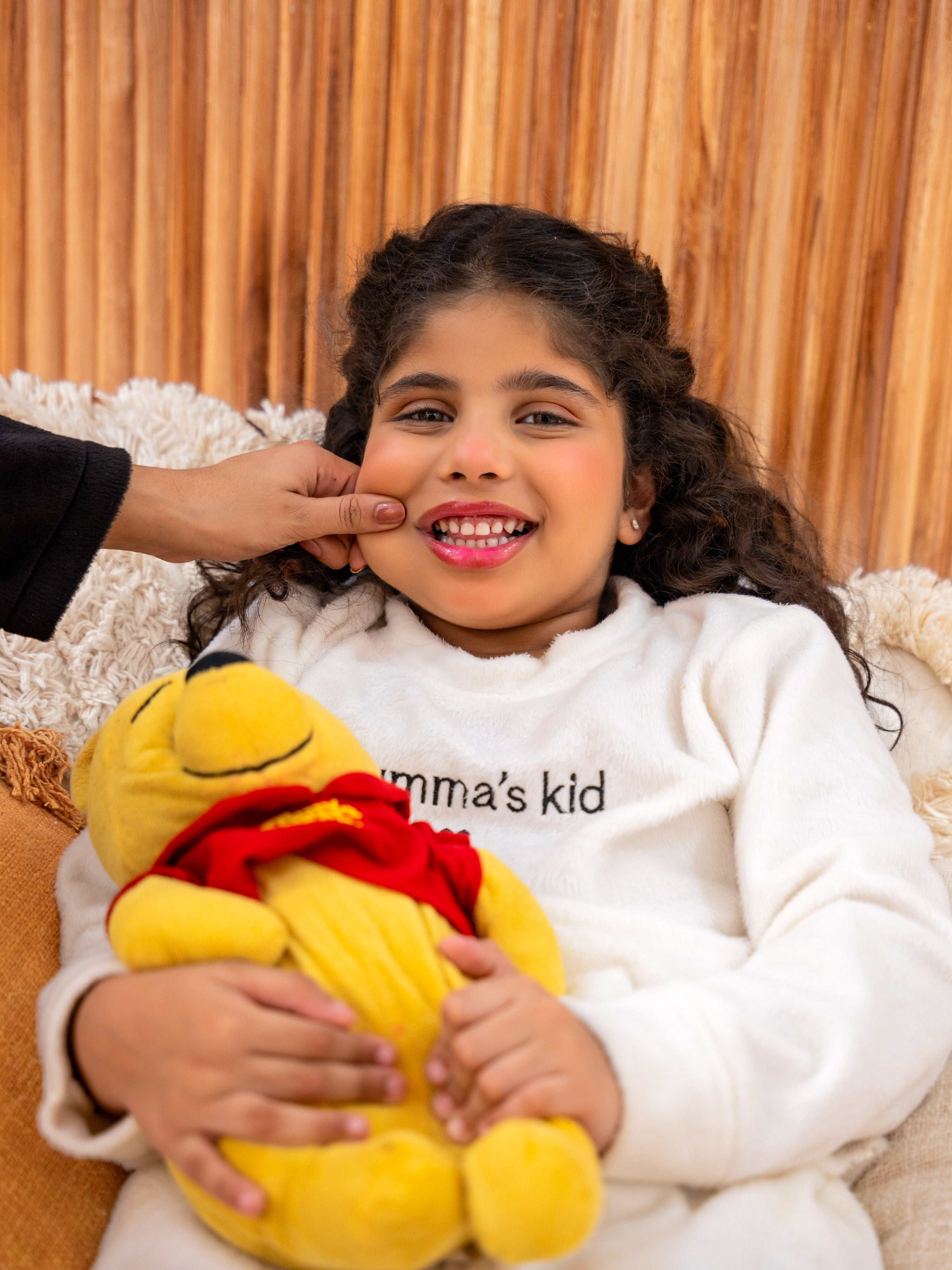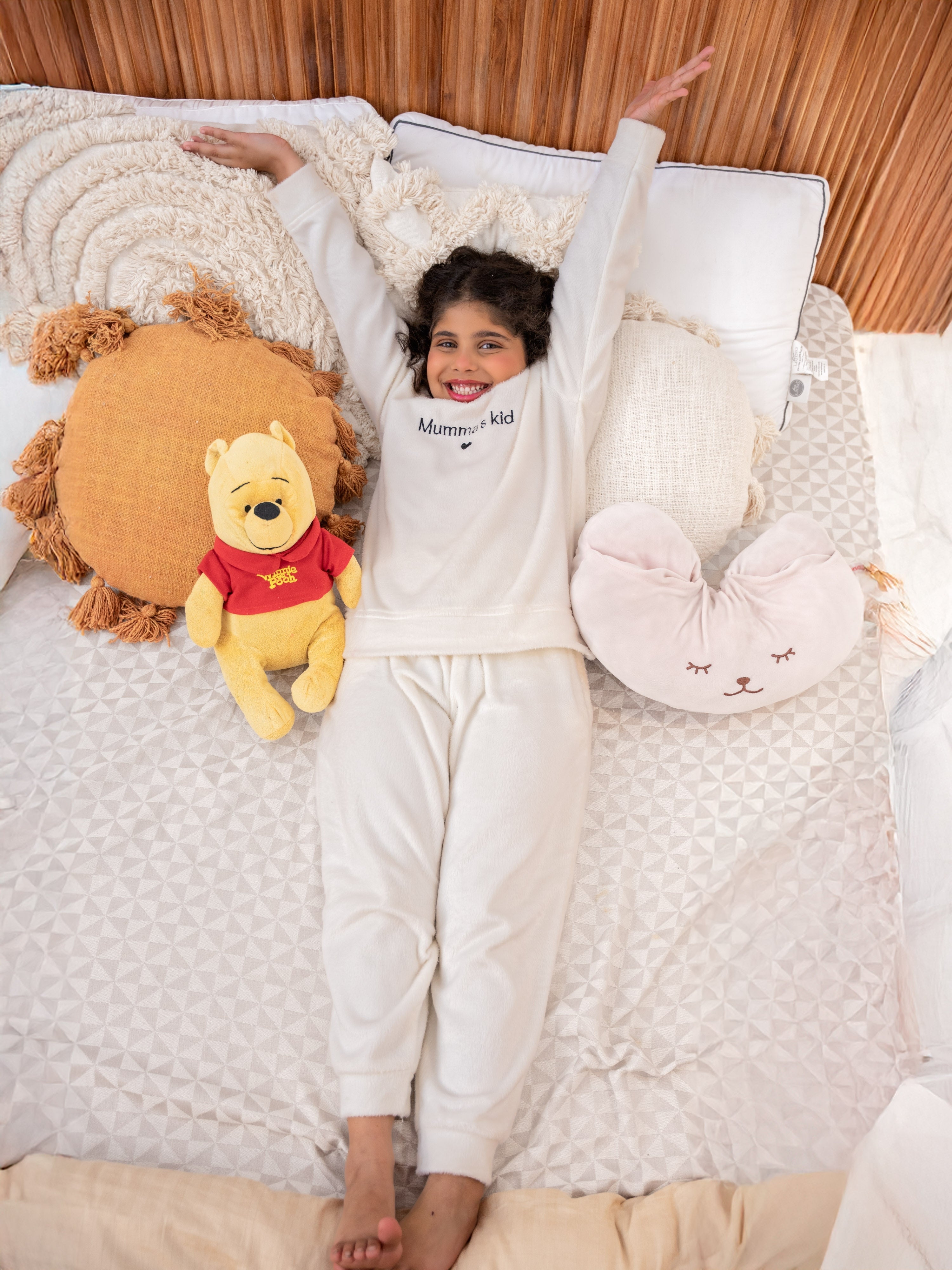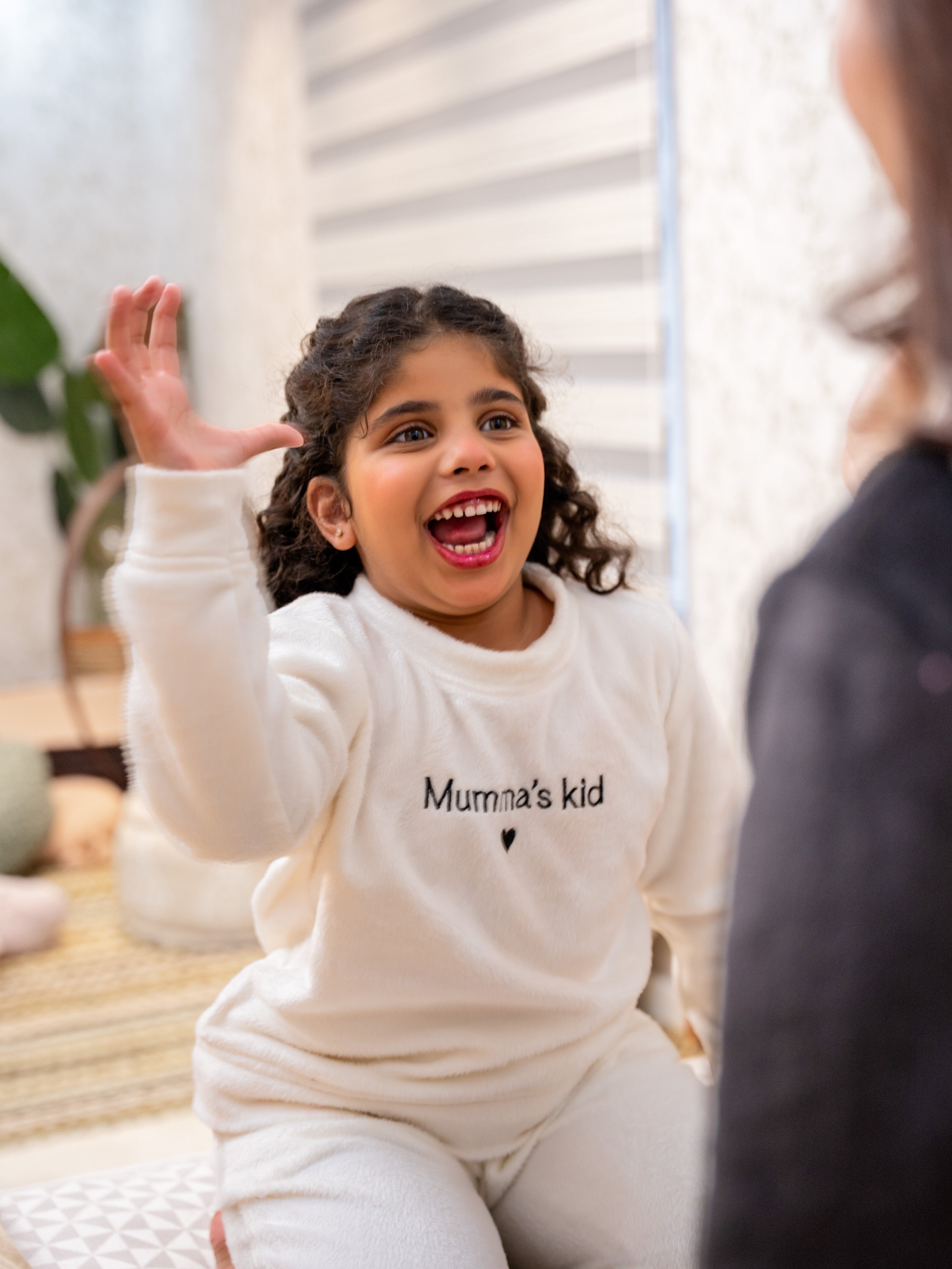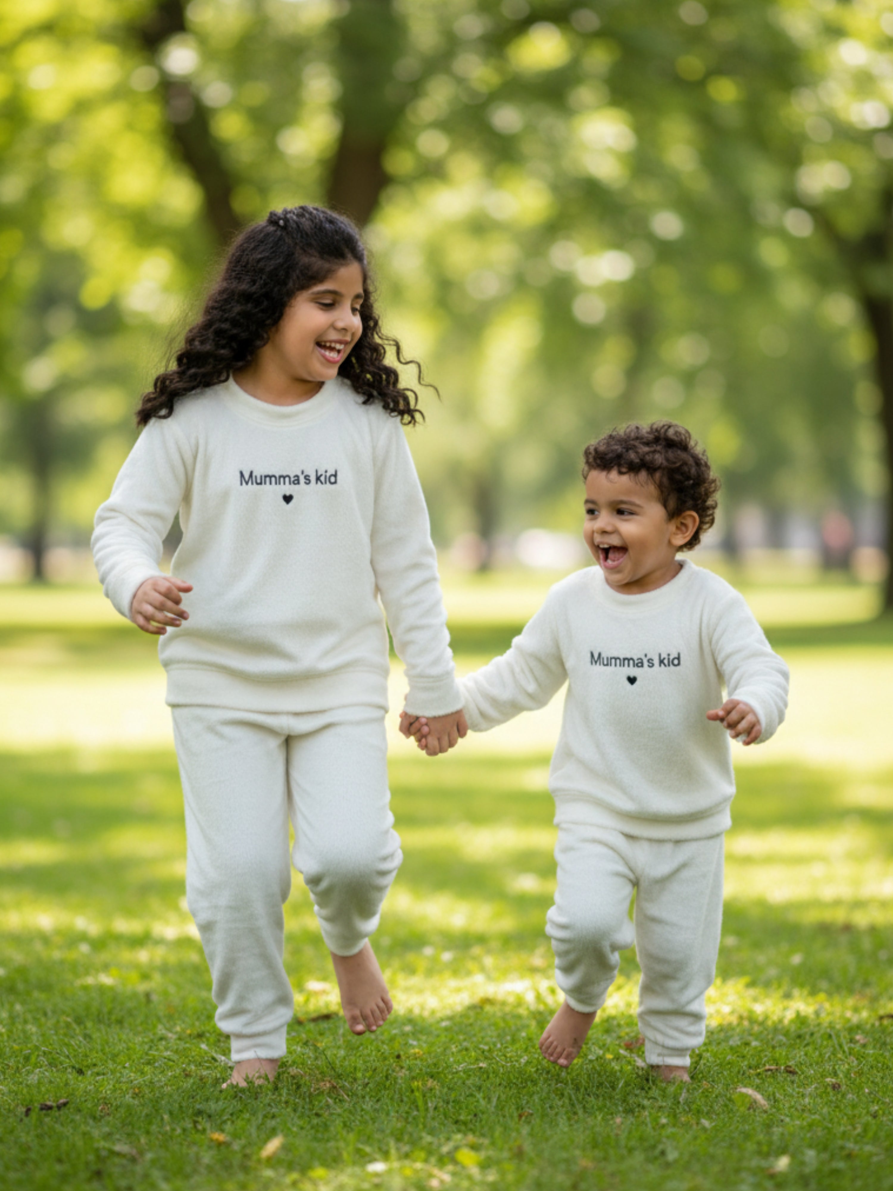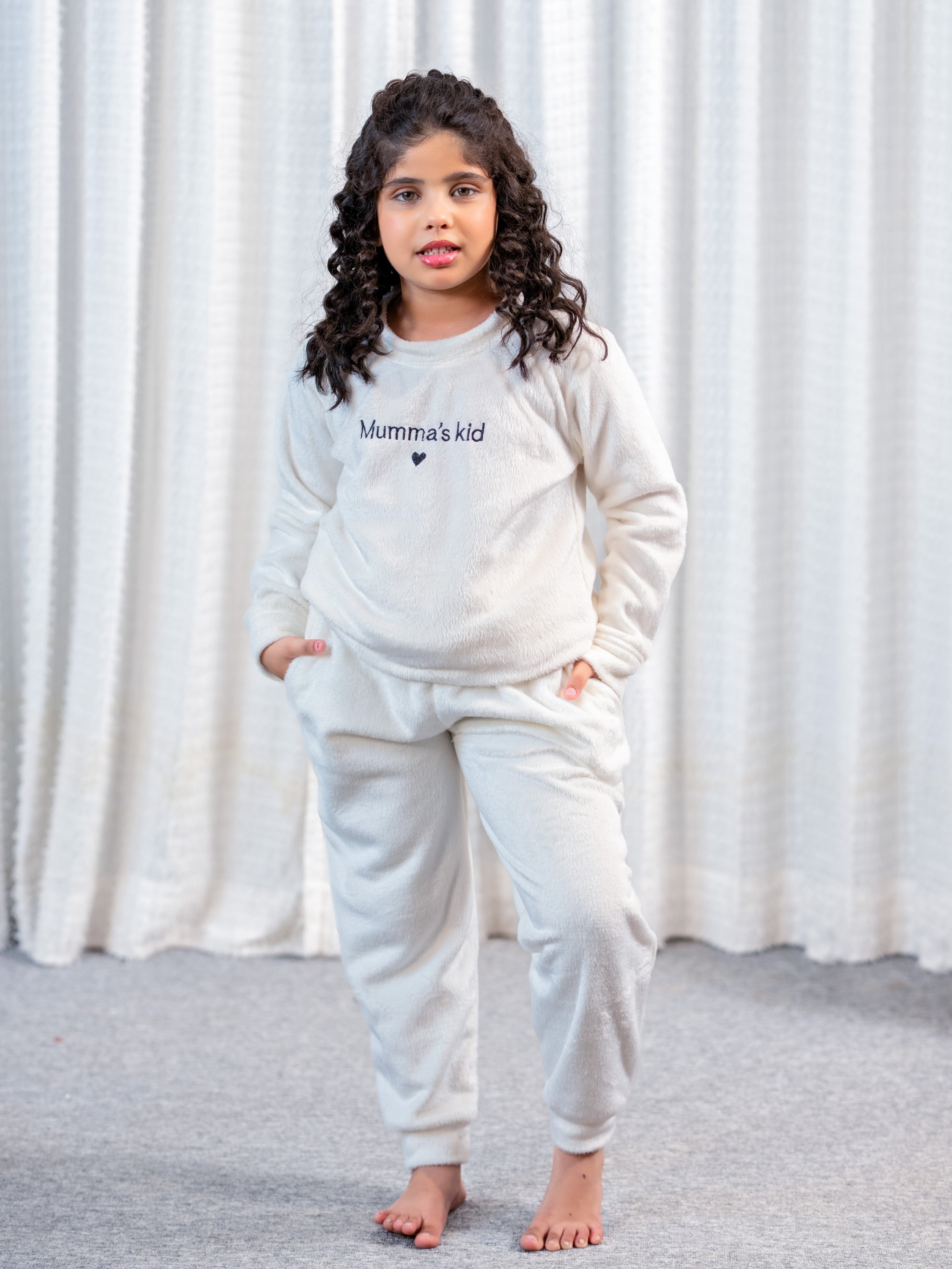 Show your love with this adorable white woollen sweatshirt featuring "mumma kids" embroidery! Plush-soft and perfect for snuggles, it's a sweet way to celebrate your special bond. Unisex comfort that every child will adore wearing.