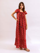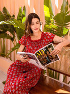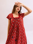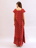 Blue Jaal Pure Cotton Tieup Square Neck Night Maxi