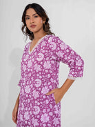 The Taffy Pink Printed Pure Cotton V-Neck Night Maxi is a playful and comfy choice for bedtime. Made from soft cotton with a flattering V-neck, it keeps you cozy and stylish all night long.