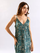 Blue Jaal Pure Cotton Tieup Square Neck Night Maxi