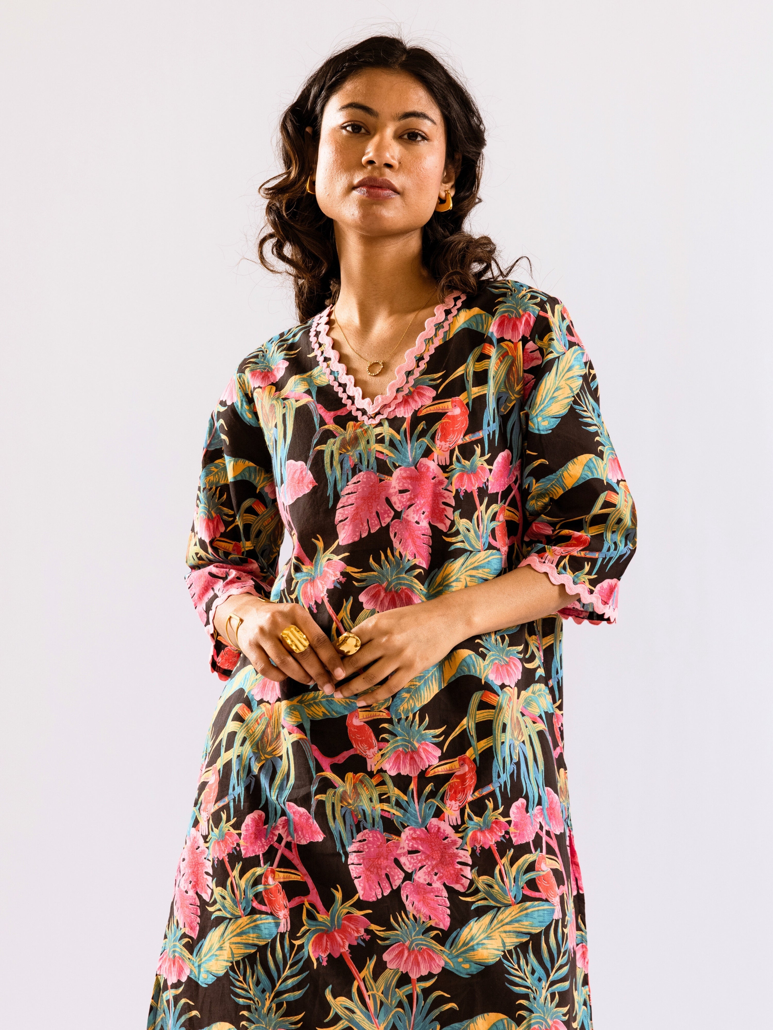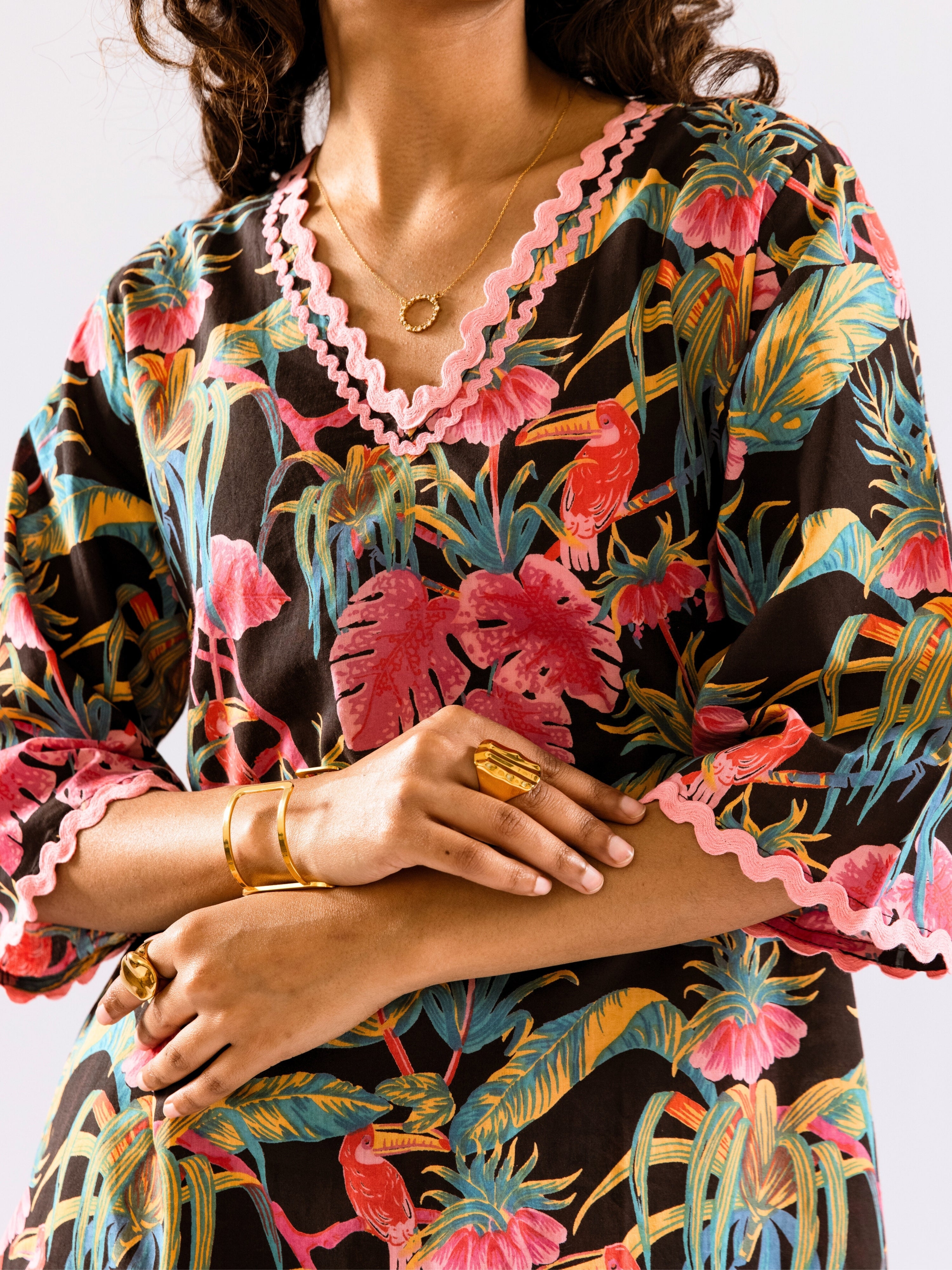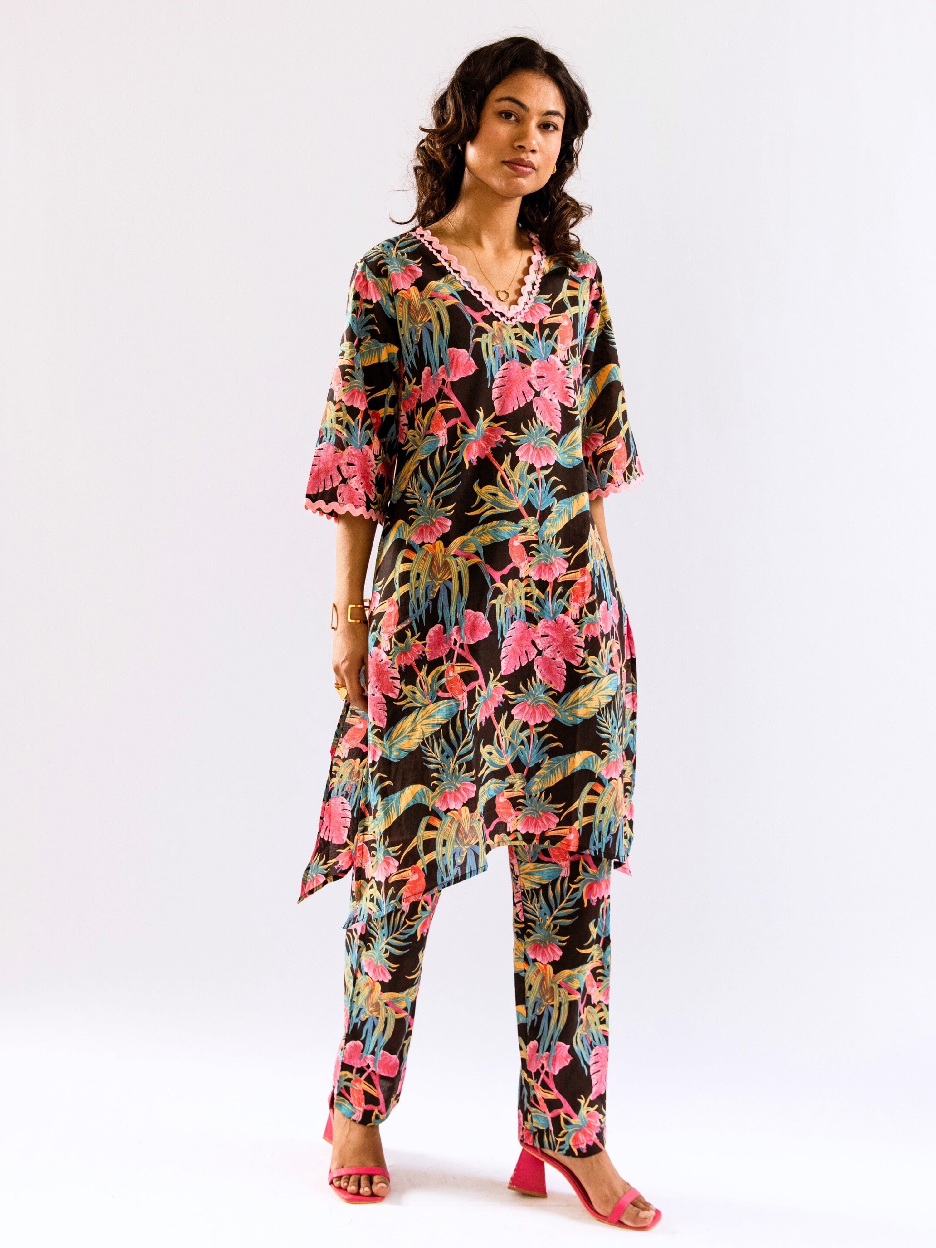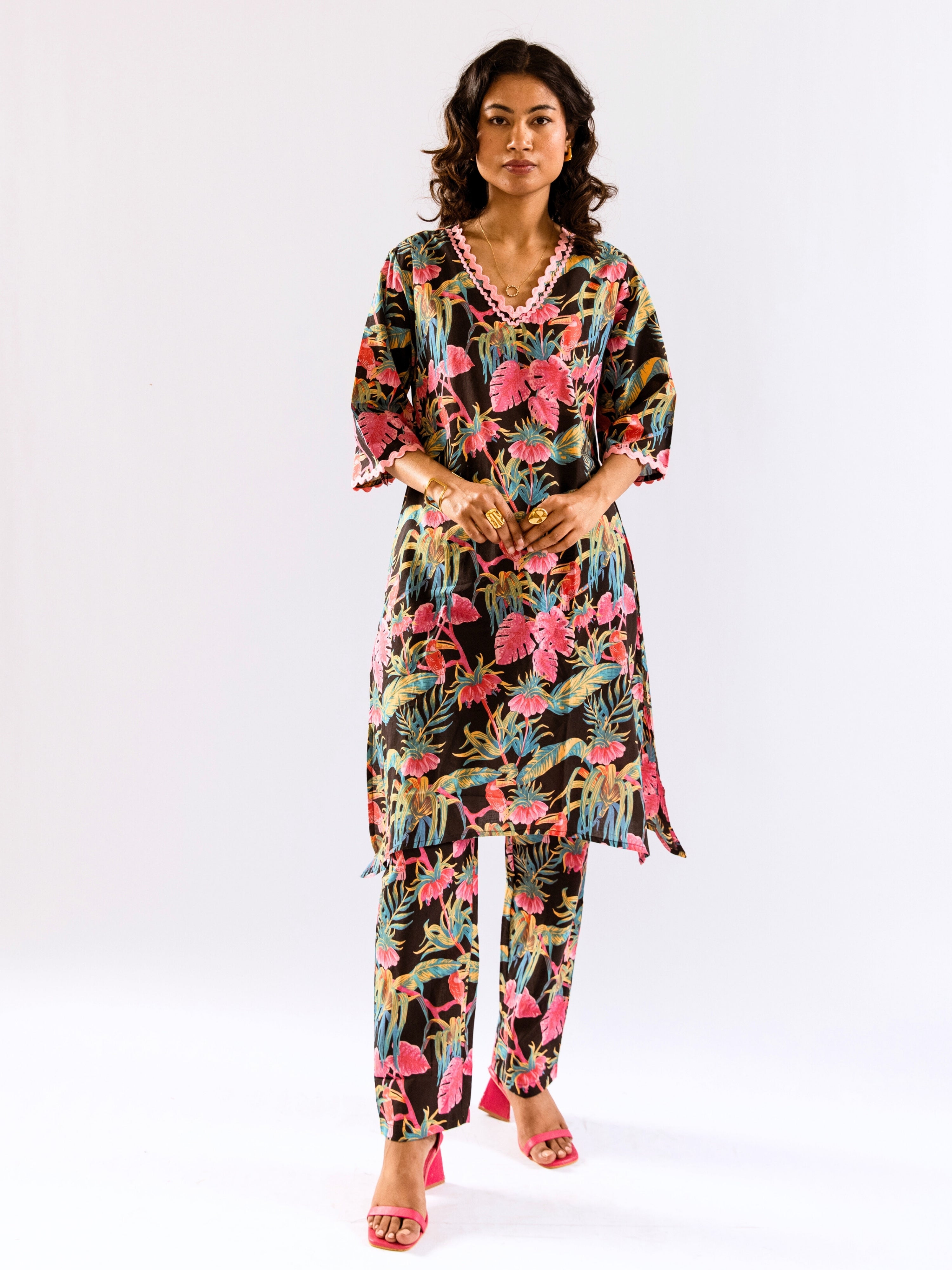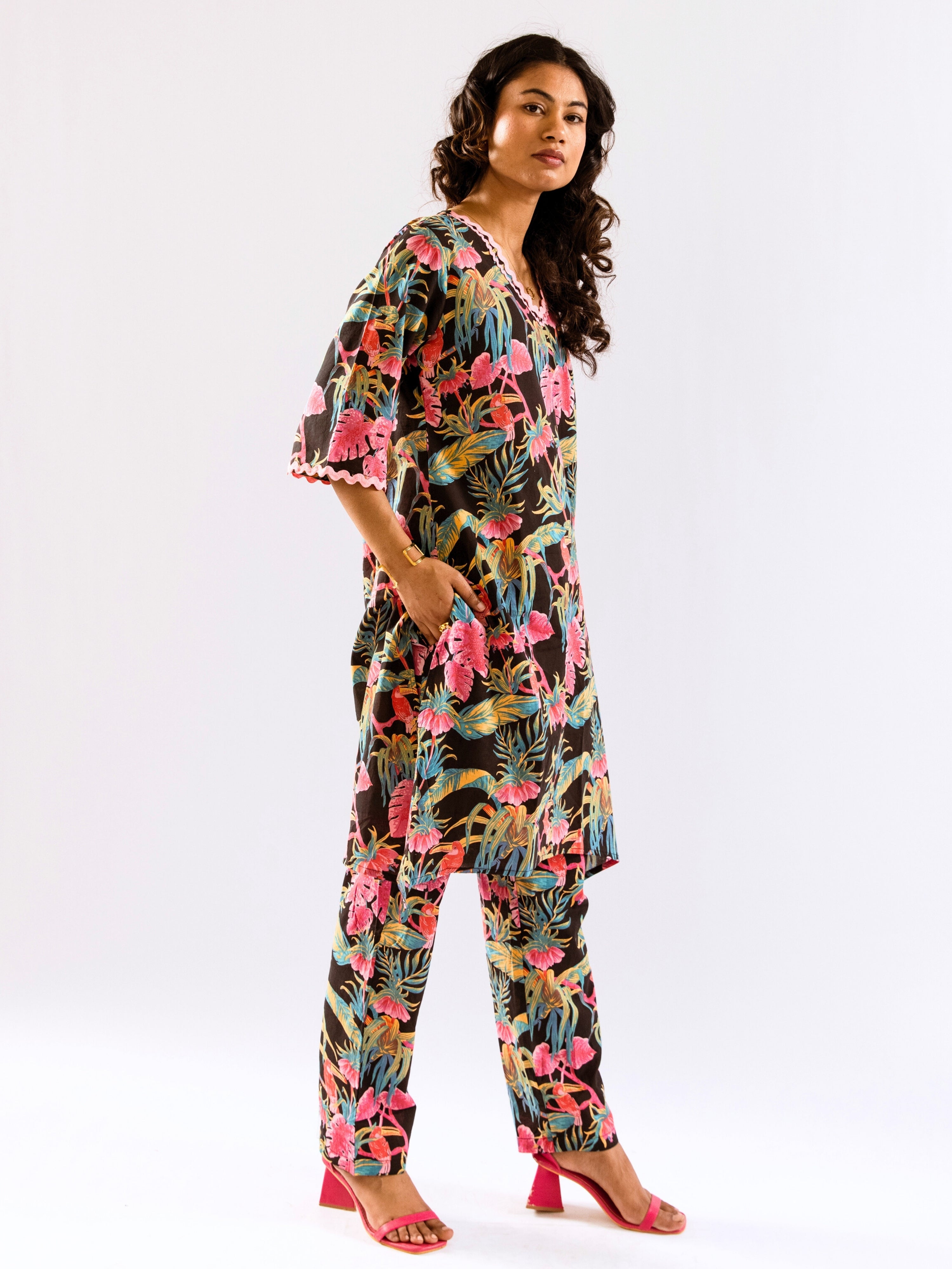 The company has done wonderful work by bringing nicely curated designs for night suits. The cost is also reasonable - but the quality of cotton can be increased.The cloth becomes somewhat transparent in sunlight/bright lights. The OVERALL DESIGNS and COMBINATION OF UPPER and LOWER PART OF DRESS is also great, therefore I hope, that company will take this feedback positively.
