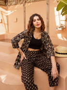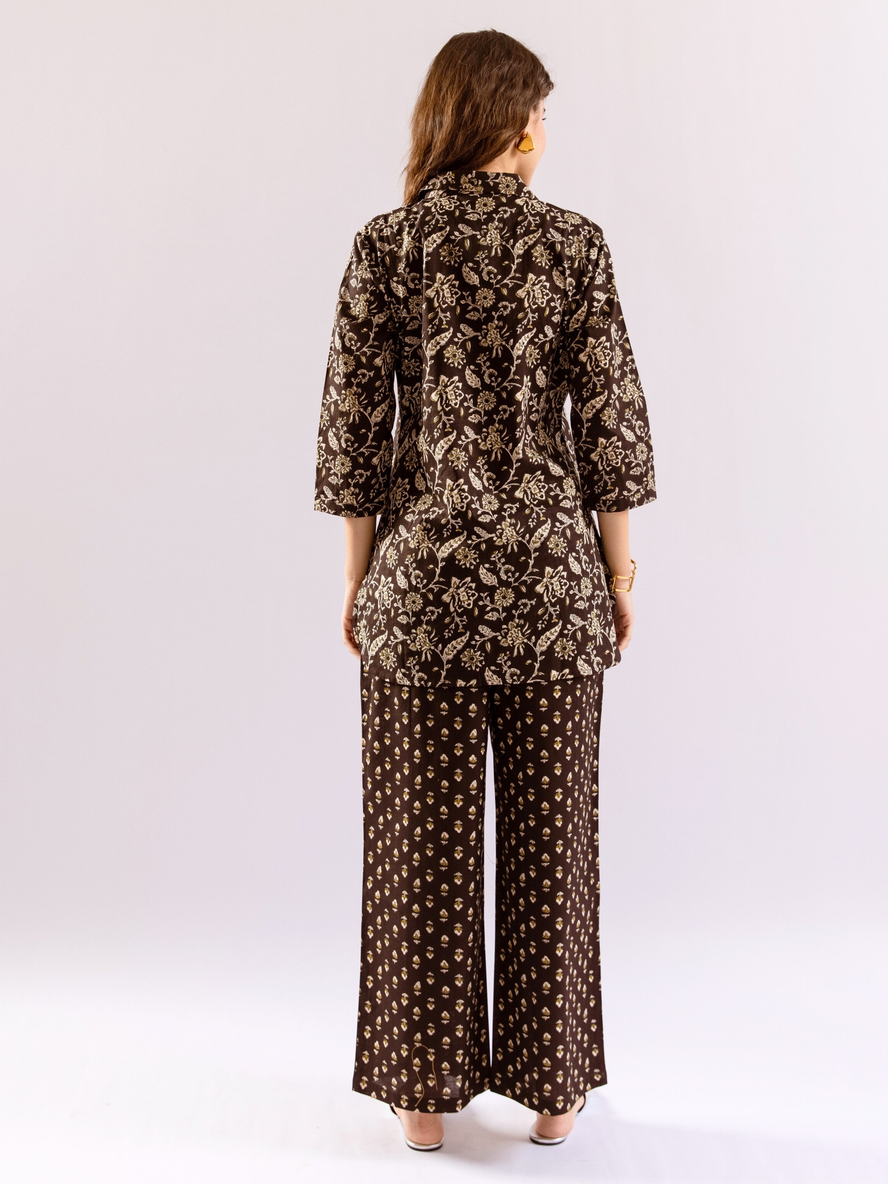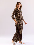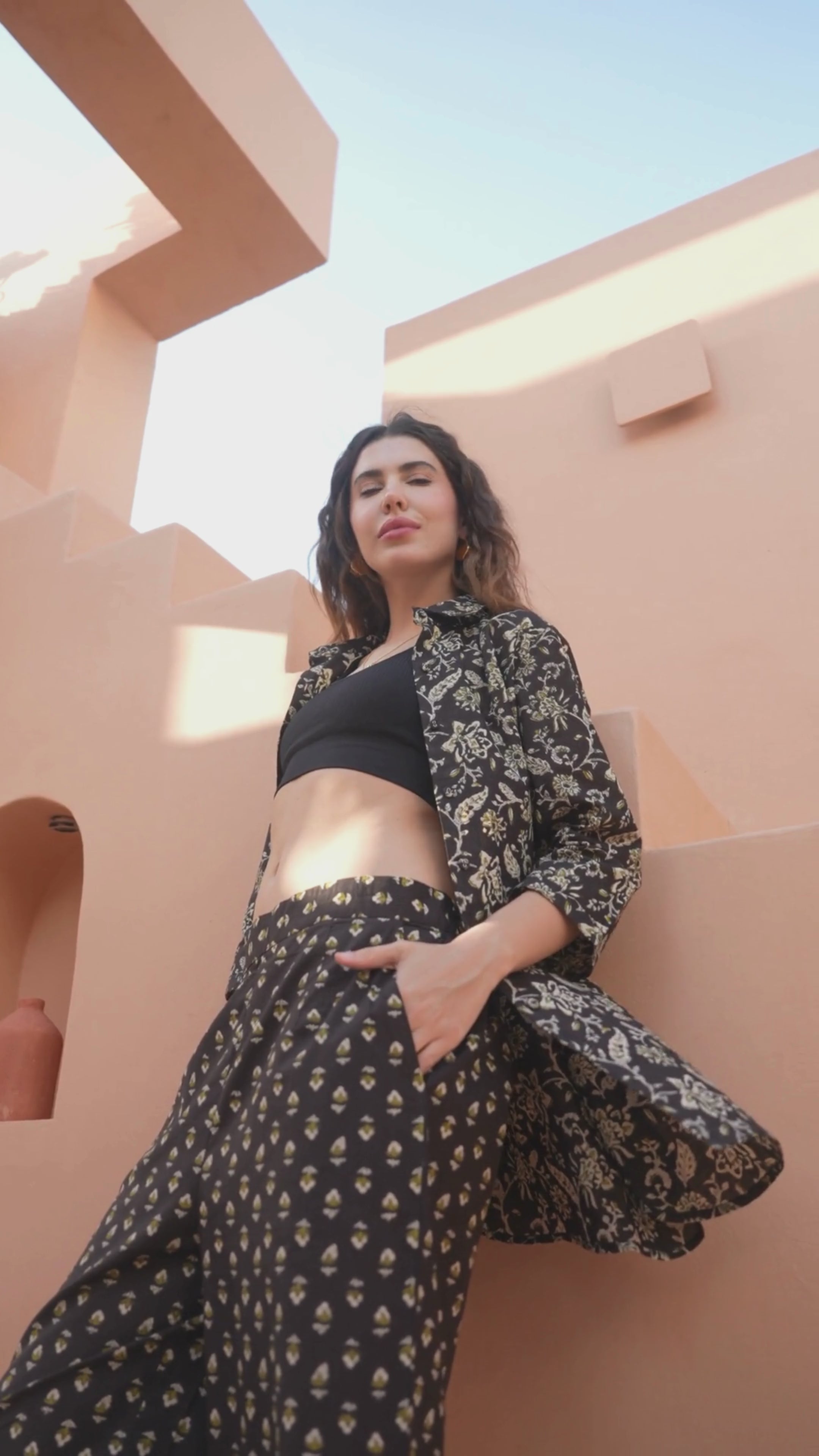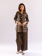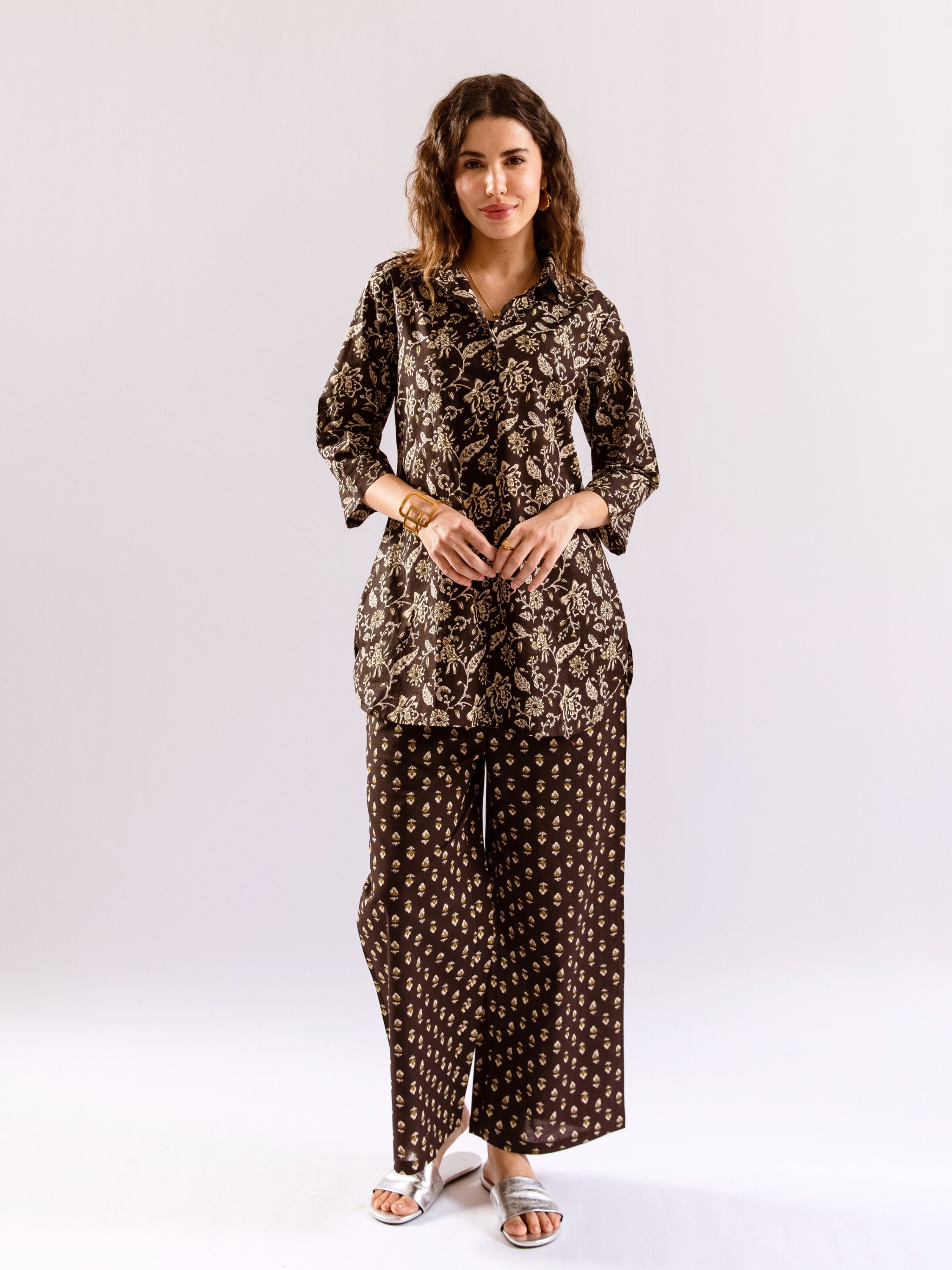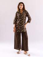 Black Flora Fiesta Pure Cotton Collar Shirt Co-ord set