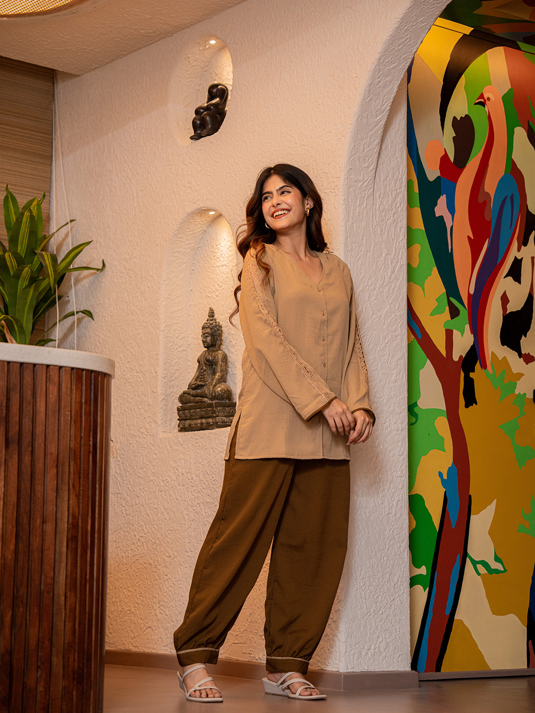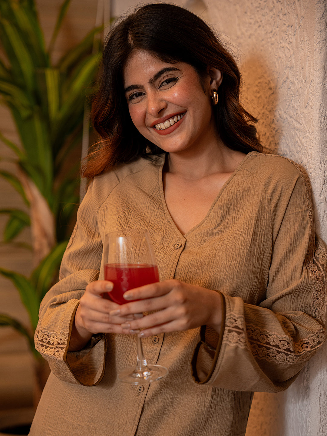 The company has done wonderful work by bringing nicely curated designs for night suits. The cost is also reasonable - but the quality of cotton can be increased.The cloth becomes somewhat transparent in sunlight/bright lights. The OVERALL DESIGNS and COMBINATION OF UPPER and LOWER PART OF DRESS is also great, therefore I hope, that company will take this feedback positively.
