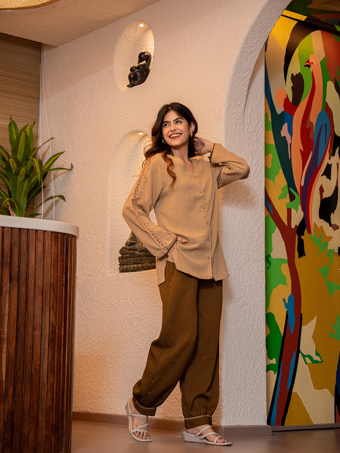 Light Blue Soft Crepe Sleeveless Top and Ruffle Shorts Co-Ord Set