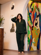 Midnight Blue Soft Crepe Shirt and Shorts Night Dress