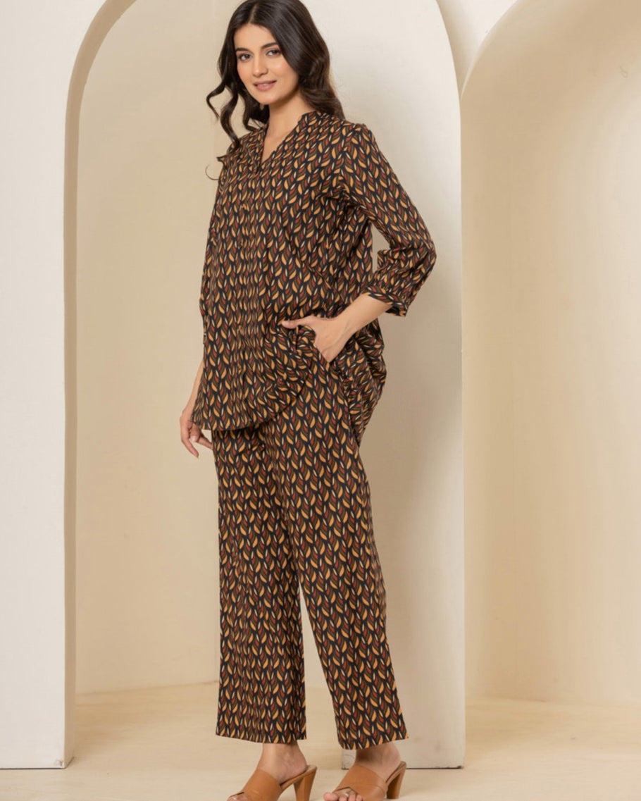 Navy Blue Petal Hush Print Pure Cotton Round neck Co-ord set