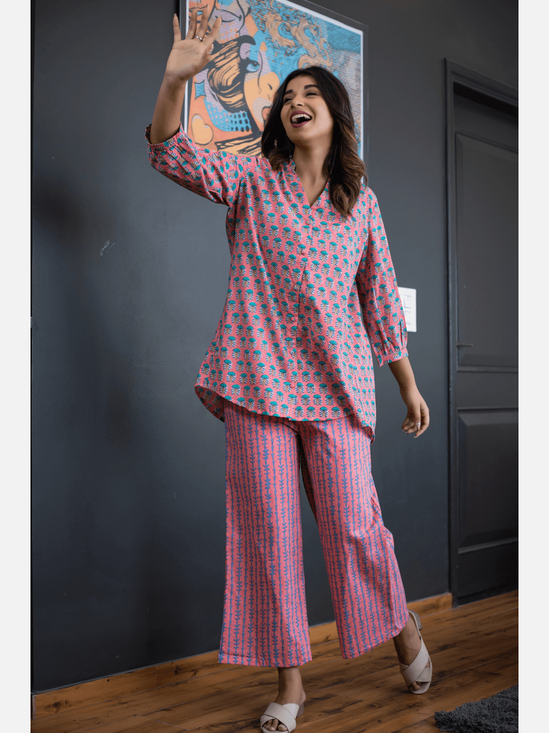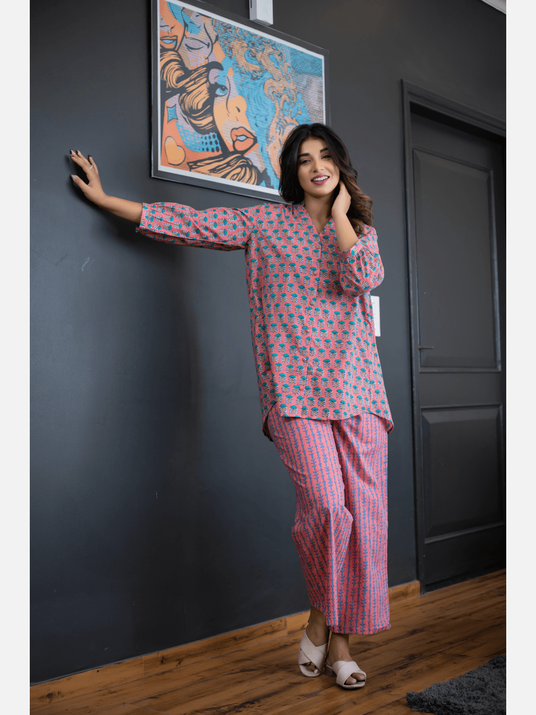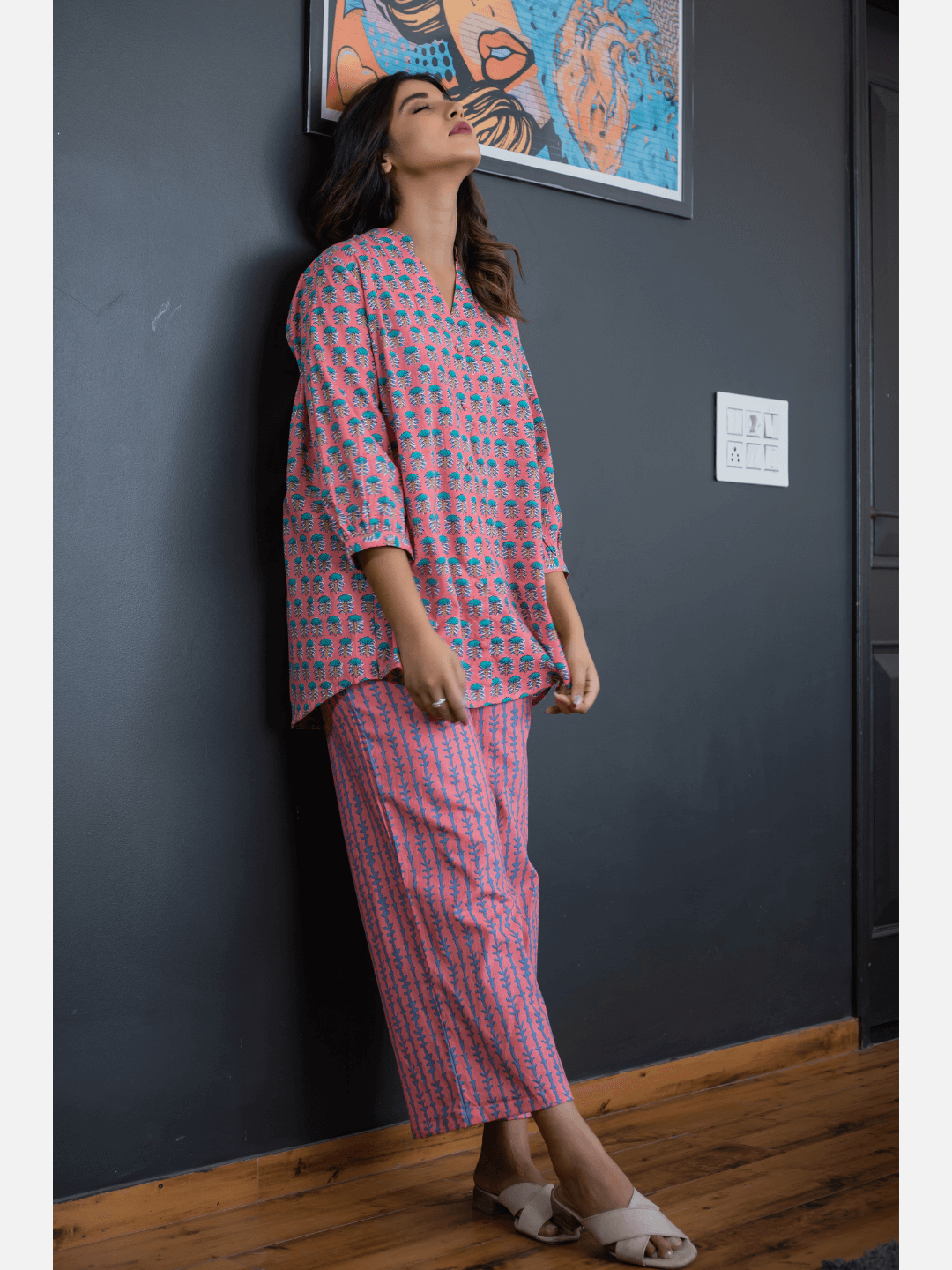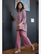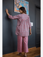 An ideal choice for your loungewear wardrobe, the Cotton Set comes in a soothing color palette. The hand block-printed pattern of the breezy Cotton top complements the matching Pants perfectly.