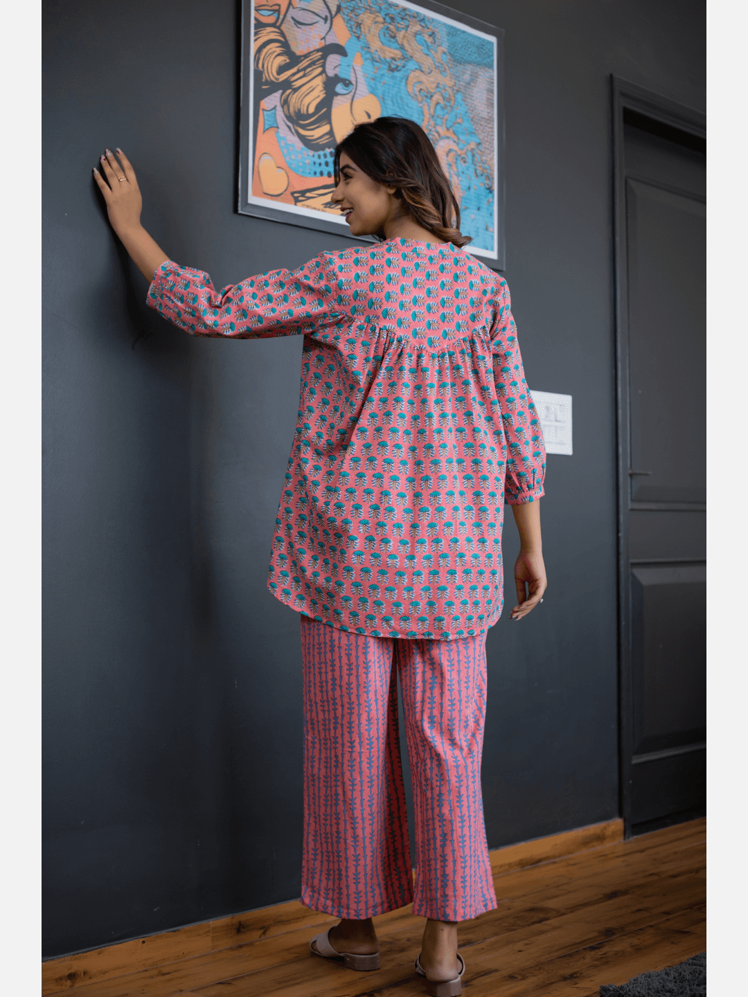 Smooth Pink back pleated Cotton Loungewear
